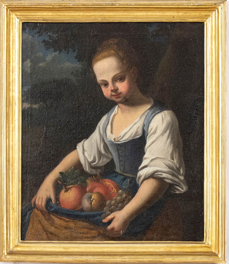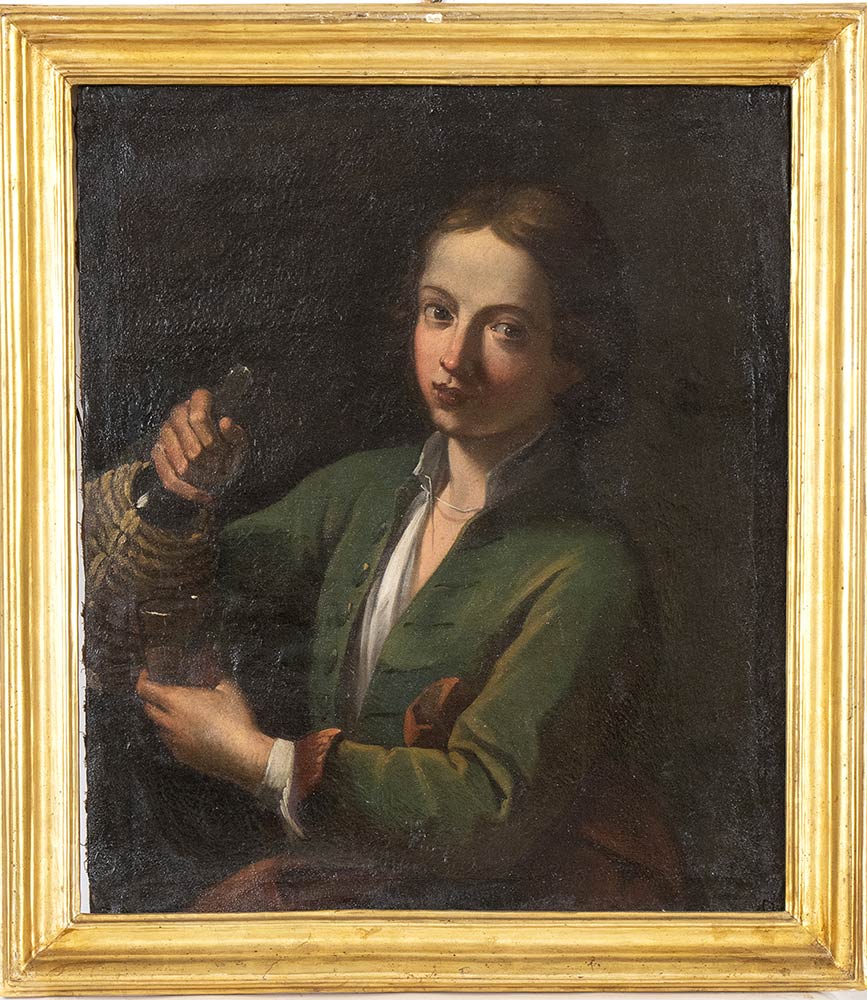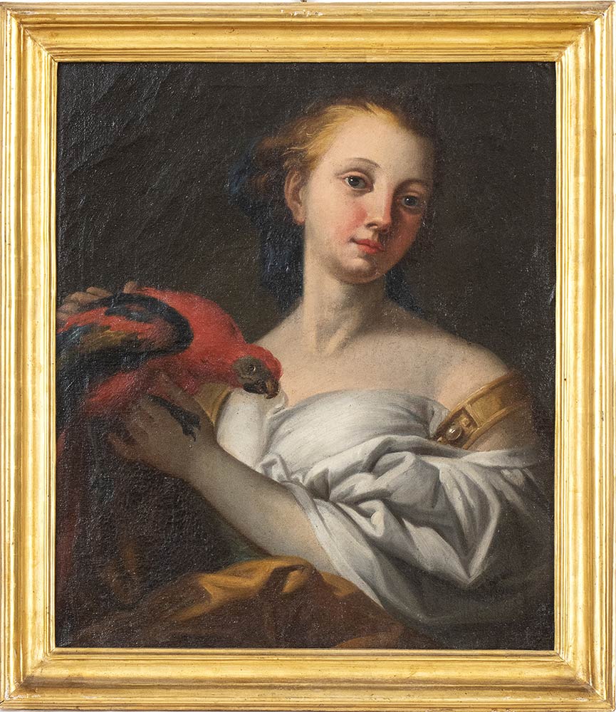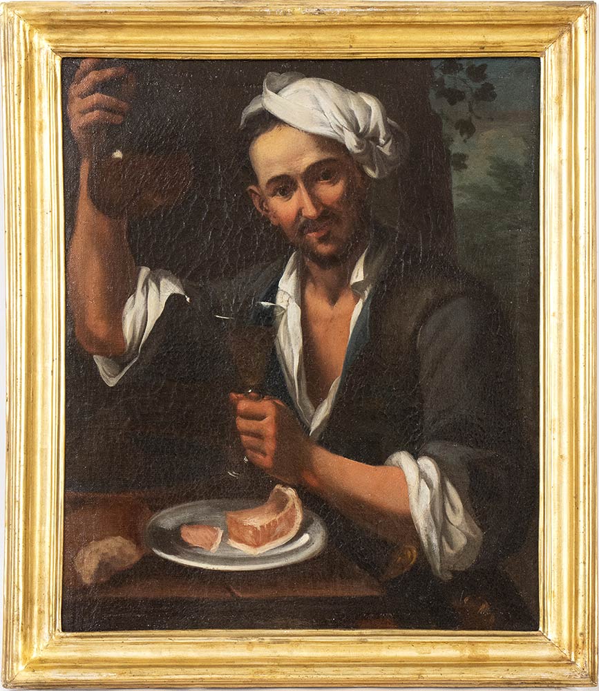 Lotto 193 | A) Giovinetta con pappagallo; B) Oste con caraffa e bicchiere di vino bianco; C) Giovane con fiasco e bicchiere di vino; D) Fanciulla con frutta. Serie di quattro dipinti