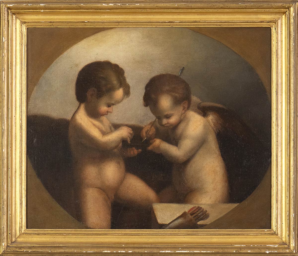 Coppia di putti, copia parziale dalla Danae di Antonio Allegri, detto il Correggio, oggi presso la Galleria Borghese in Roma.