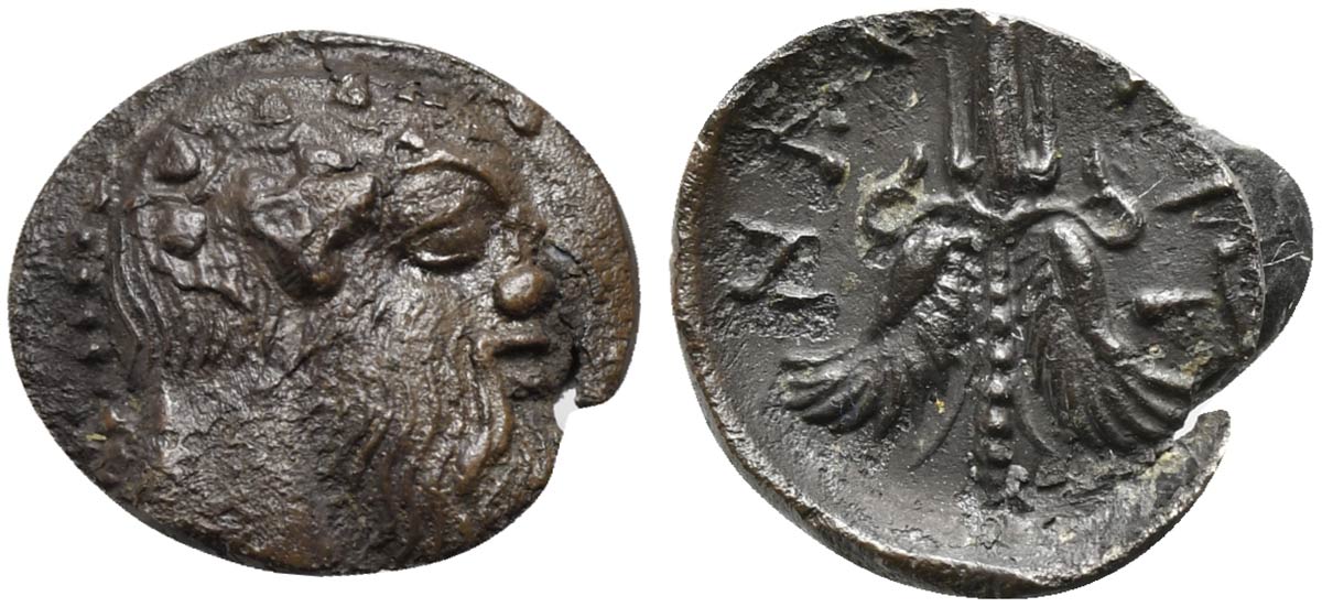 Lotto 26 | Sicily, Aitna, Litra, ca. 476-461 BC; AR (g 0,42; mm 9; h 11); Ivy-wreathed...