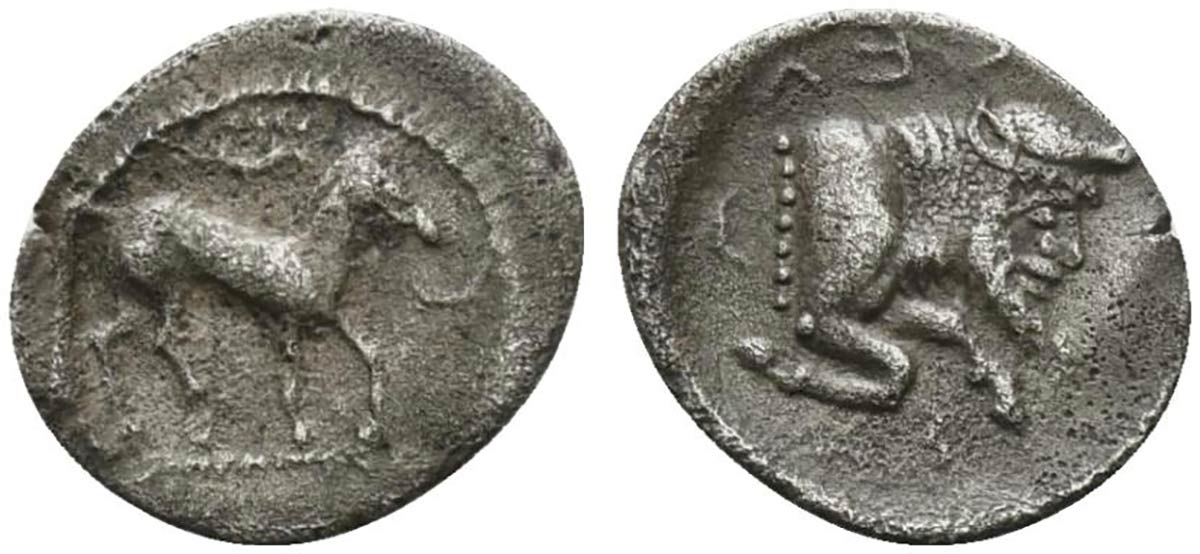 Lotto 38 | Sicily, Gela, Litra, ca. 465-450 BC; AR (g 0,71; mm 12; h 12); Bridled horse...