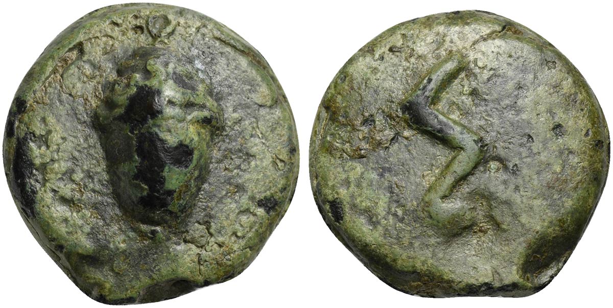 Roman Republic, Dioscuri/Mercury series, Cast Semuncia, Rome, ca. 280 BC; AE (g 17; mm 23; h 12); Acorn, Rv. Σ. Crawford 14/7; ICC 32.