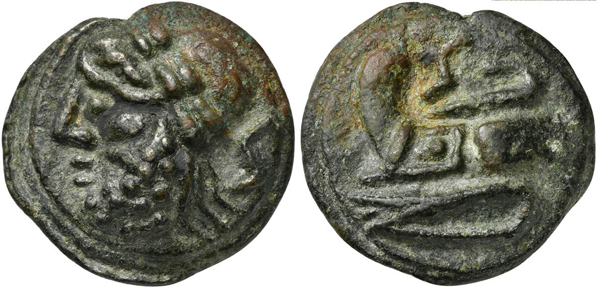Roman Republic, Post-semilibral series, Cast Semis, Rome, ca. 215-212 BC; AE (g 38; mm 33; h 12); Laureate head of Saturn l.; behind, S, Rv. Prow l.; above, S. Crawford 41/6a; ICC 107.