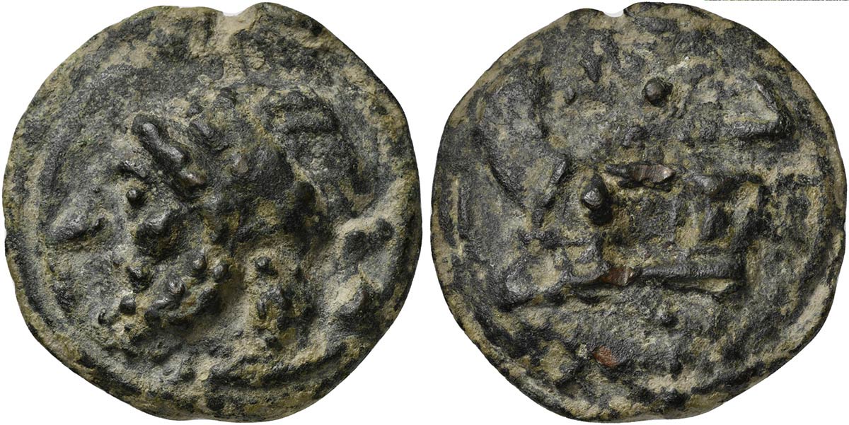 Roman Republic, Post-semilibral series, Cast Semis, Rome, ca. 215-212 BC; AE (g 47; mm 38; h 12); Laureate head of Saturn l.; behind, S, Rv. Prow l.; above, S. Crawford 41/6a; ICC 107.