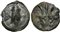 Umbria, Cast Sextans, Tuder, ca. 220-200 BC; AE (g 14; mm 25; h 12); Cicada; in field, °°, Rv. Trident; around, T and °°. HNItaly 49; ICC 226.