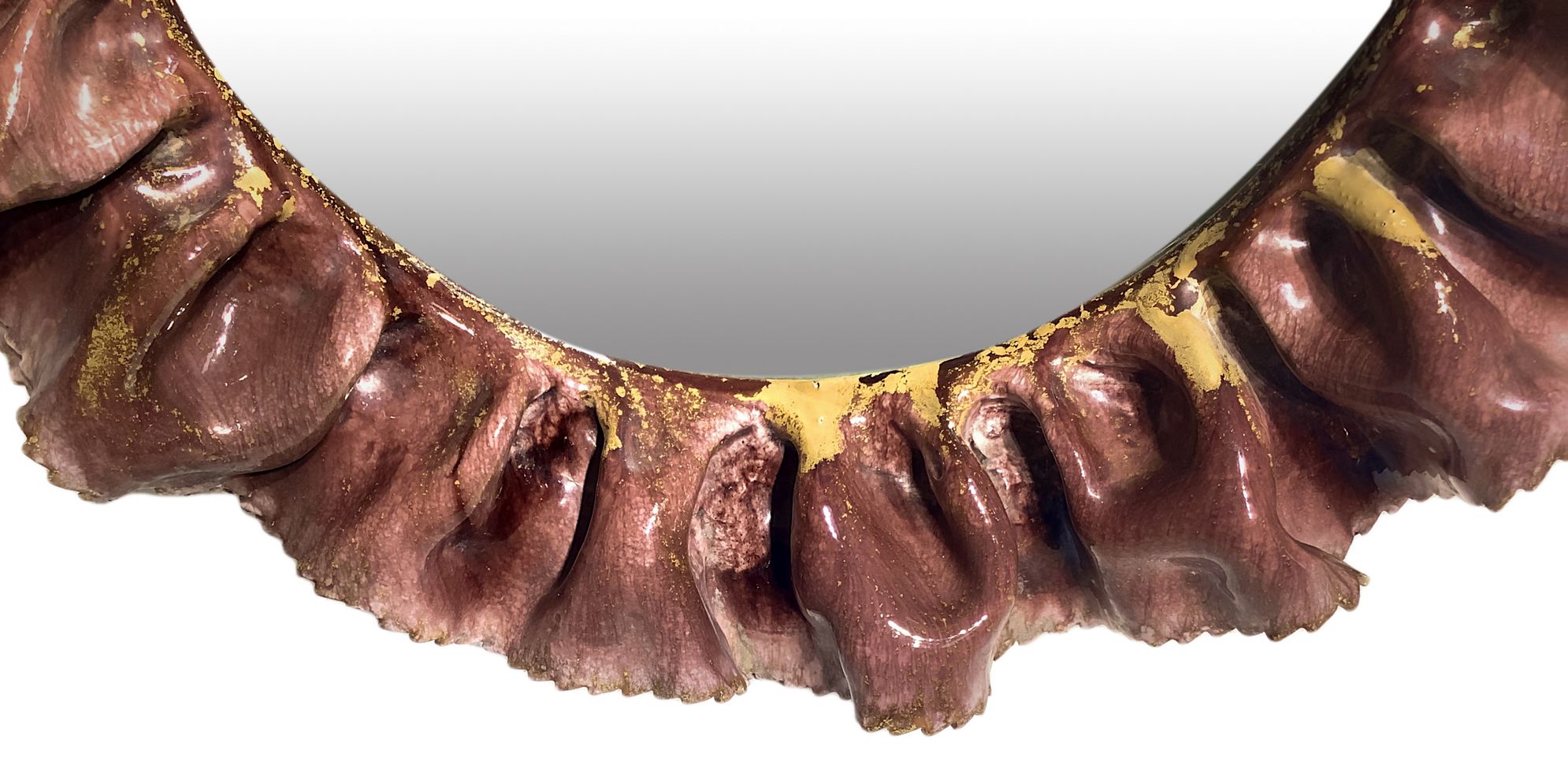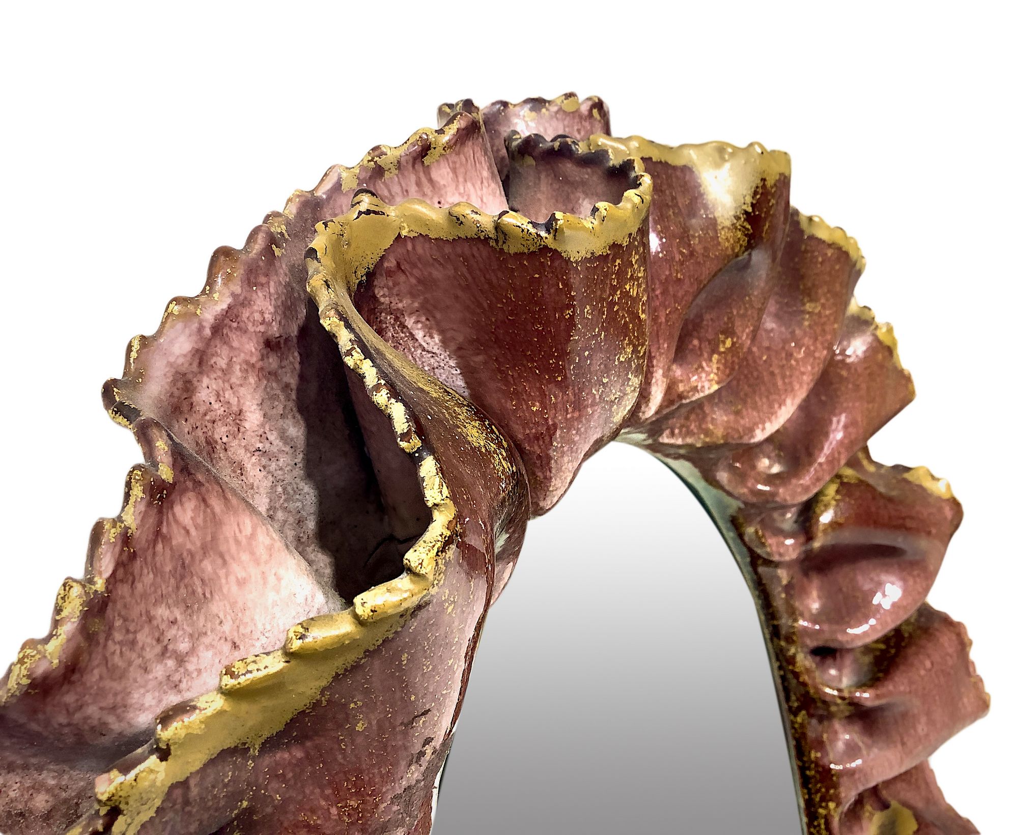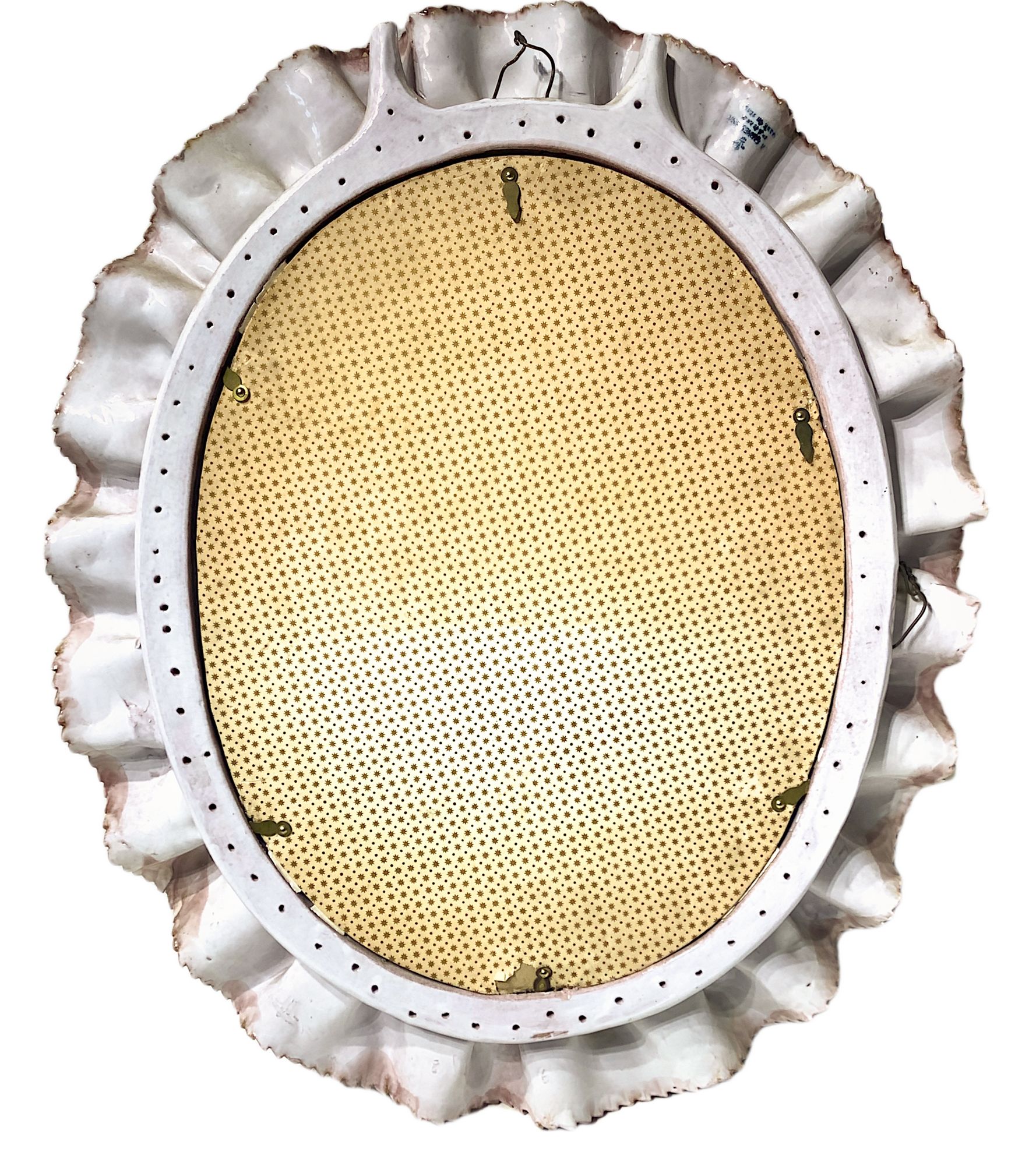 Fausto Melotti. Anni’60. Cornice a guisa di balze sovrapposte in ceramica smaltata nei toni del rosa, marchio della manifattura. 60x45