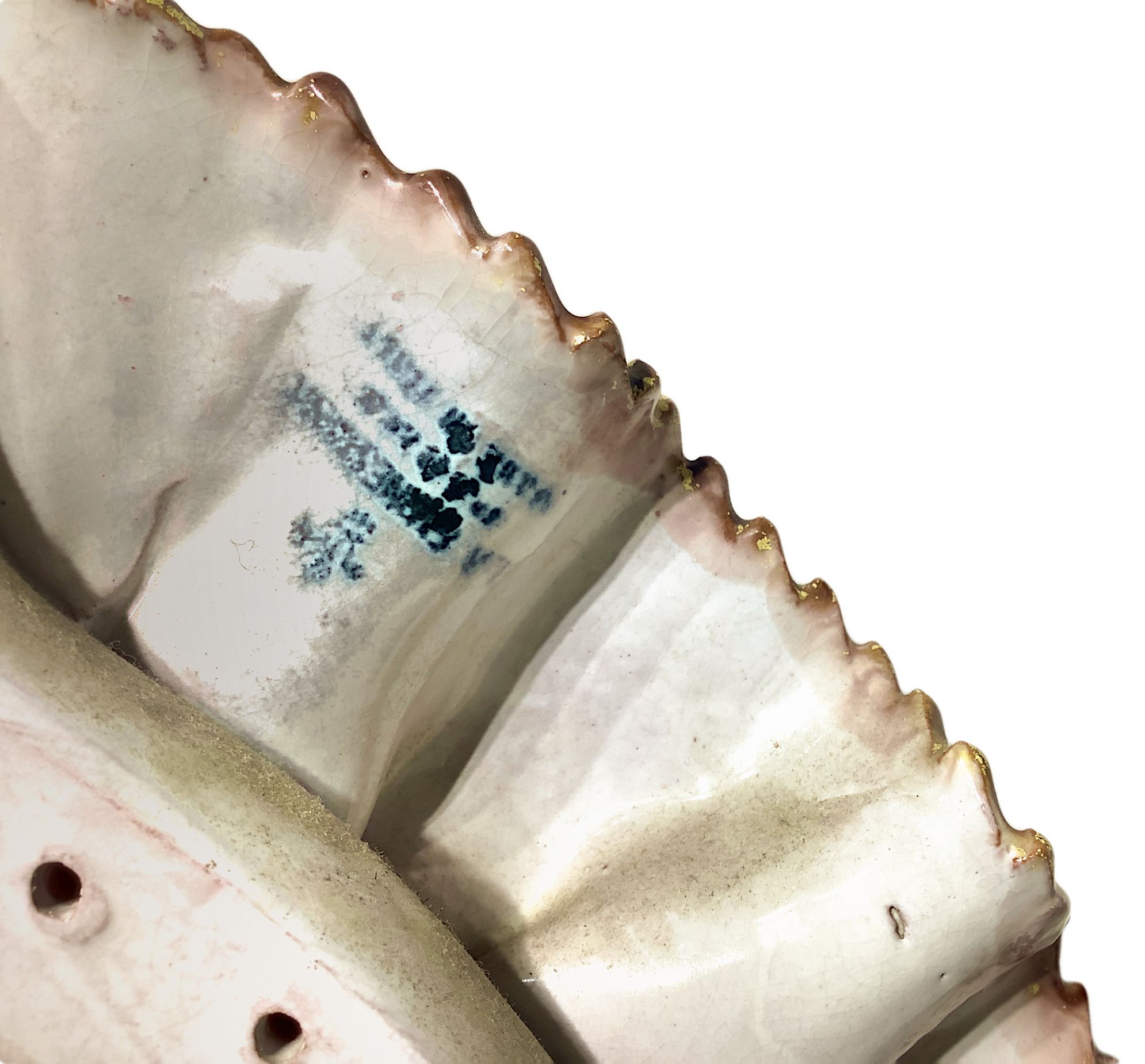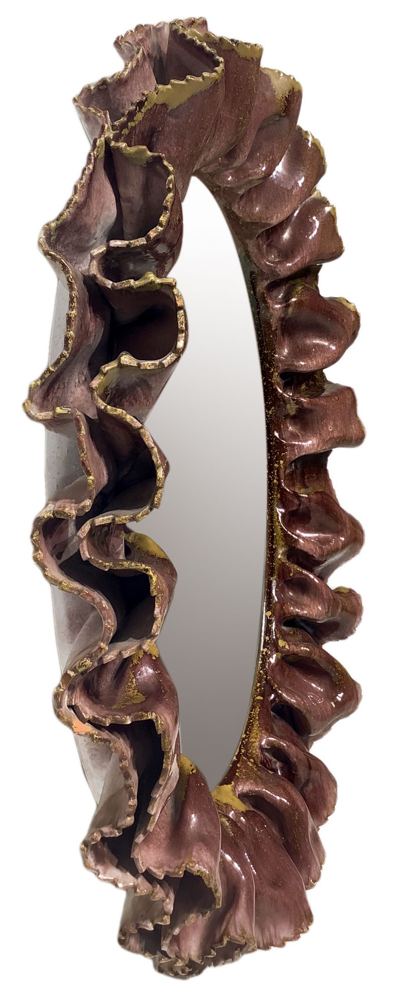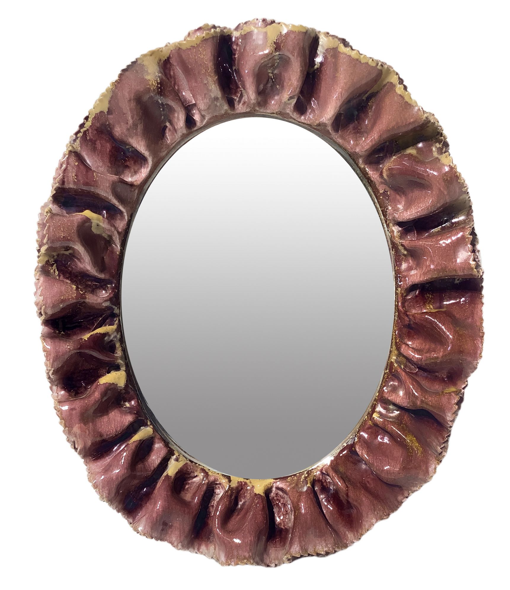 Fausto Melotti. Anni’60. Cornice a guisa di balze sovrapposte in ceramica smaltata nei toni del rosa, marchio della manifattura. 60x45