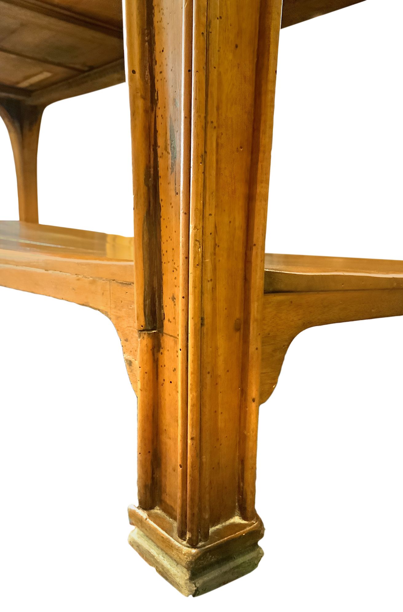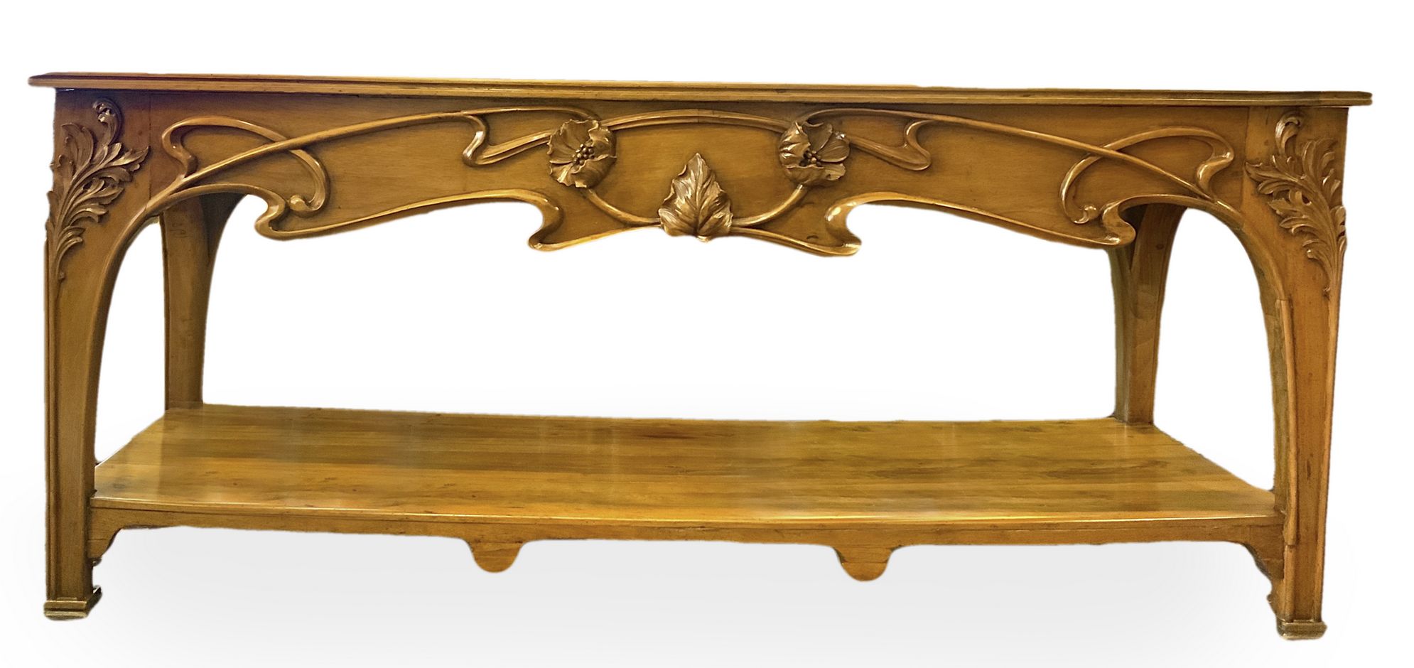 Pregiato tavolo da sartoria Liberty, attrib. Arch. Ernesto Basile. Con intagli floreali a rilievo. Primi ‘900. H cm 216 X 80