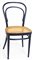 8 sedie Thonet, Mod.214, etichetta della manifattura. In faggio curvato a vapore e seduta in paglia di Vienna, colore blu scuro. H cm 84 X36X41