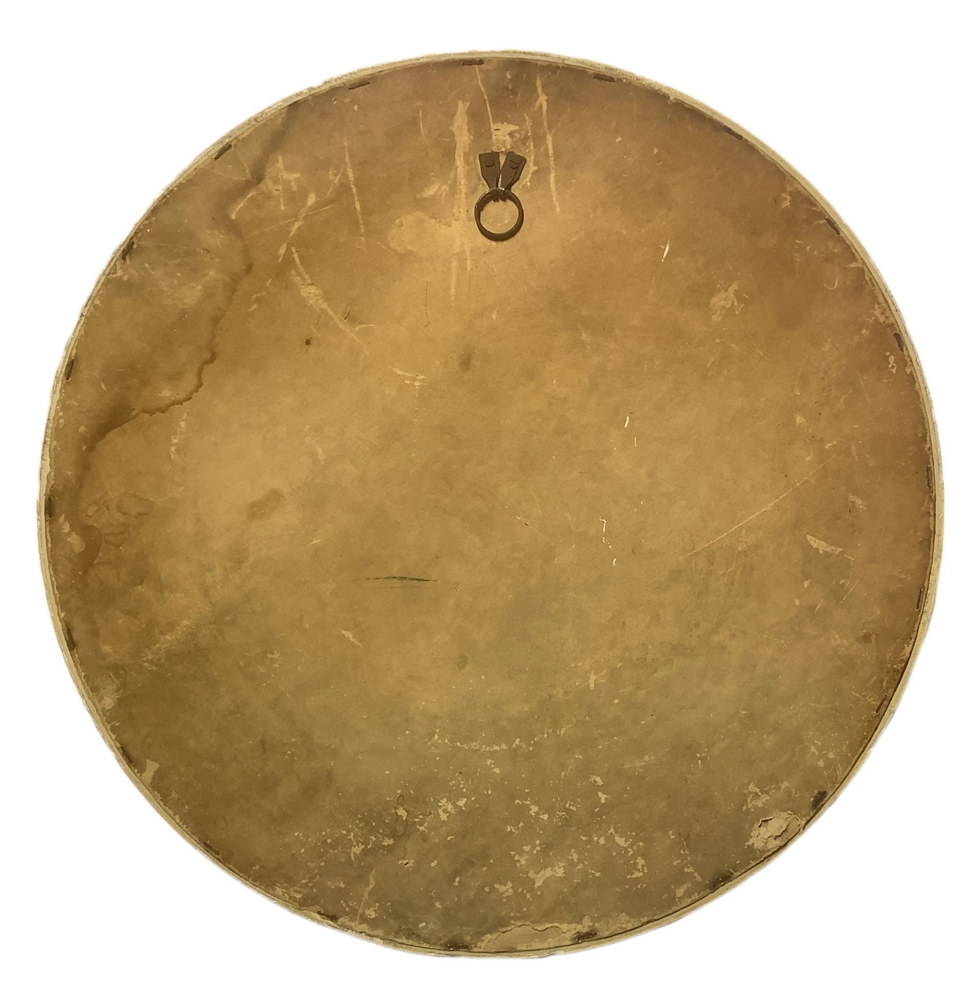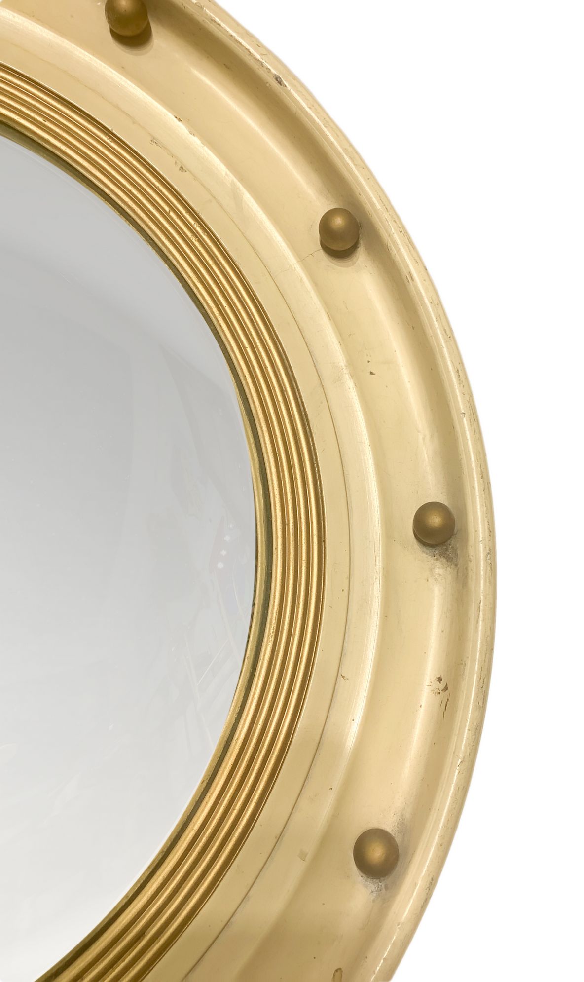 Specchiera in legno di forma circolare laccata nei toni dell'avorio. Dettagli dorati e specchio convesso, nello stile delel'Atelier Borsani (Varedo), anni '40. Diametro cm 50.