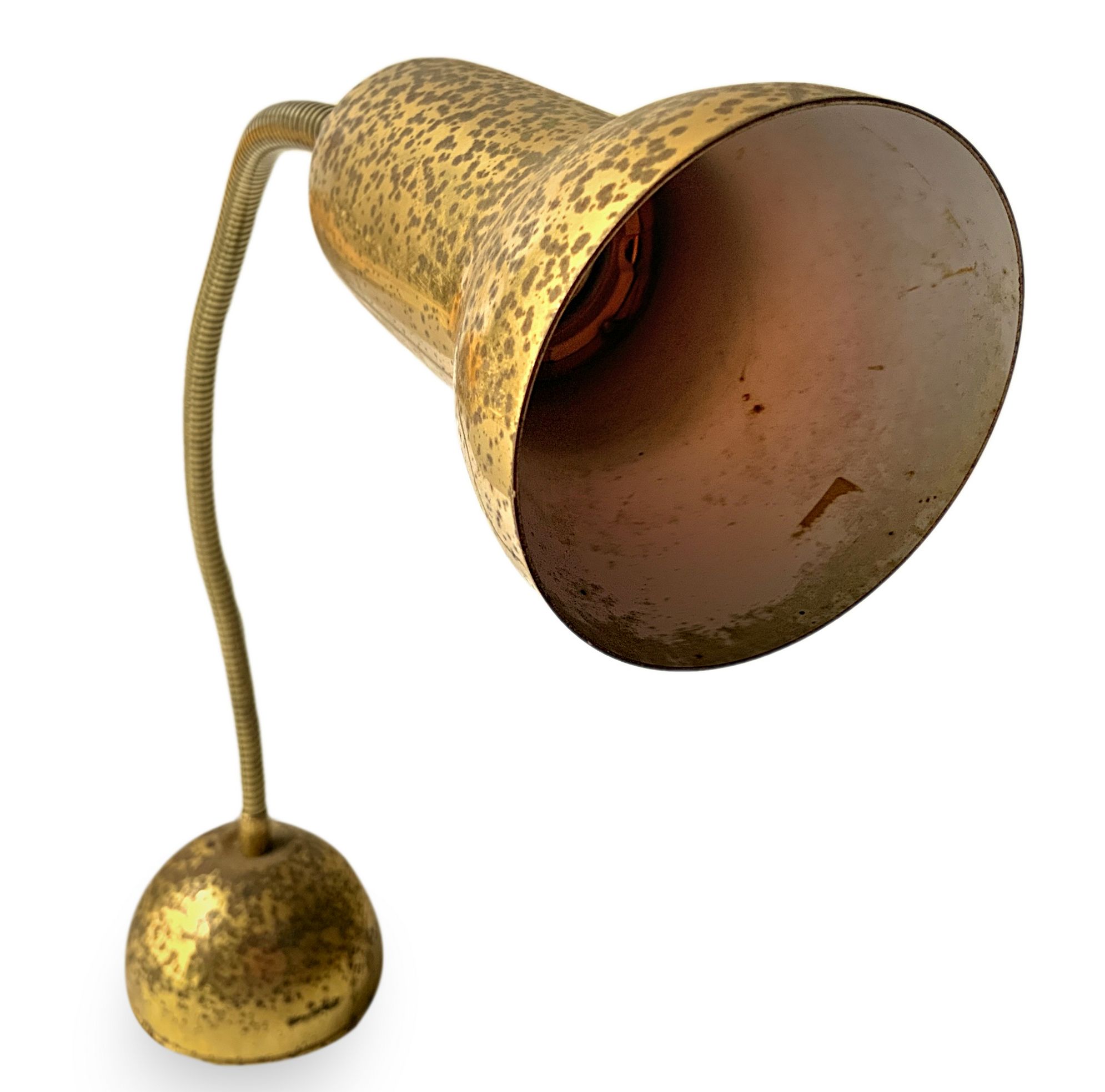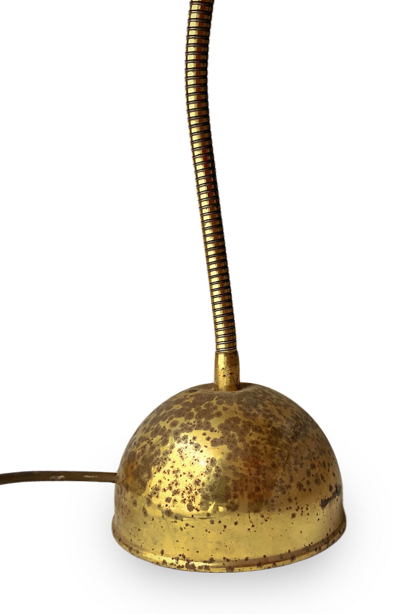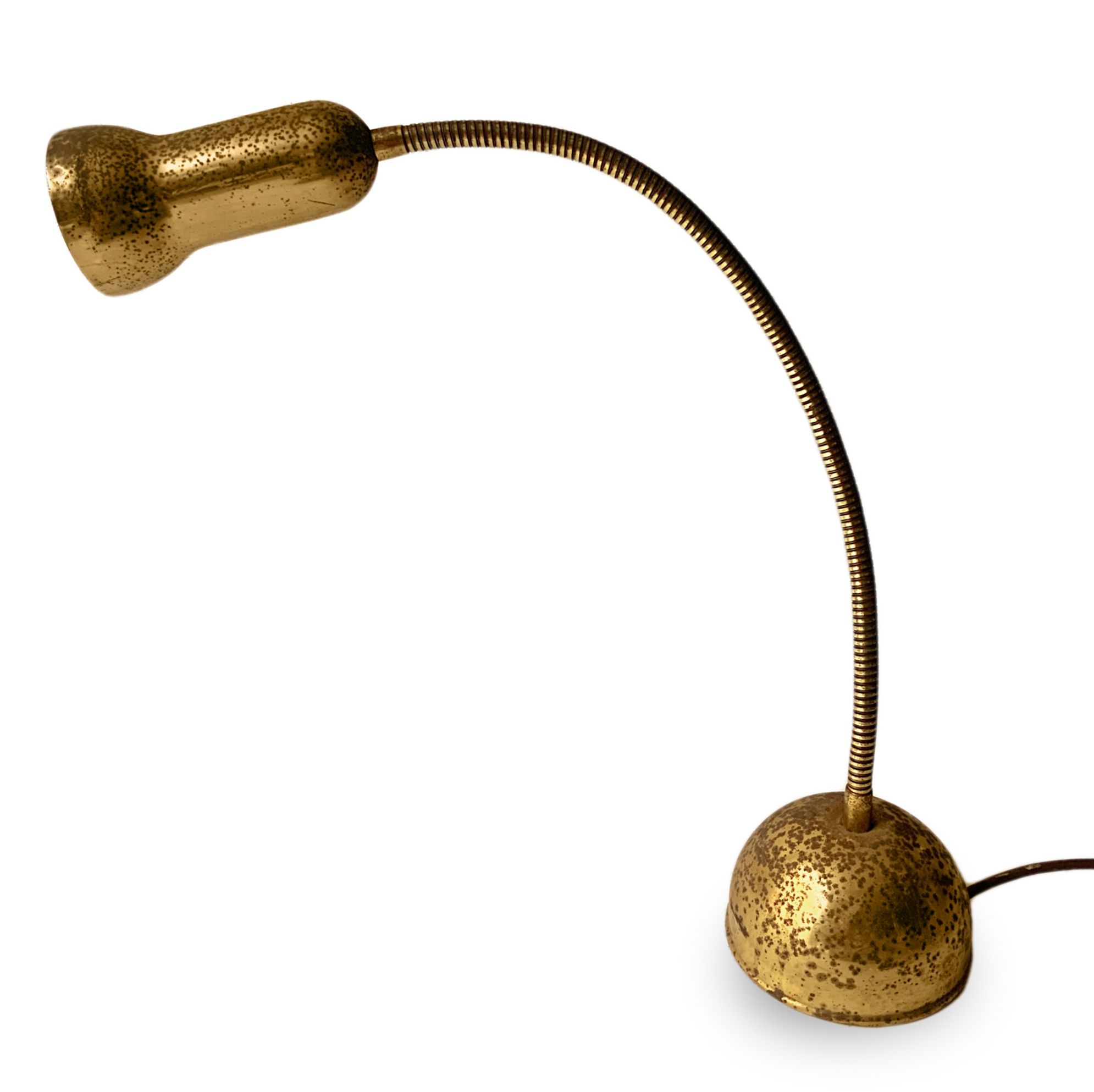 Lampada da tavolo, produzione italiana. Struttura in ottone. Base e diffusore presentano segni di ossidazione. Anni 60. Cm 68x9d