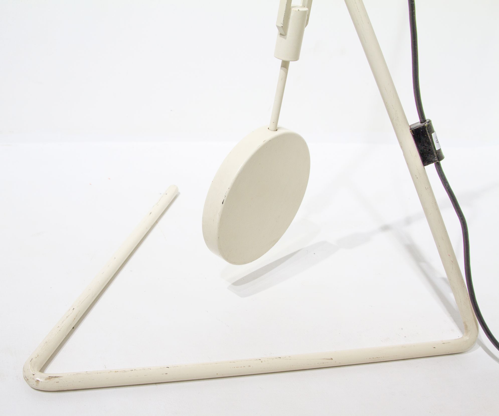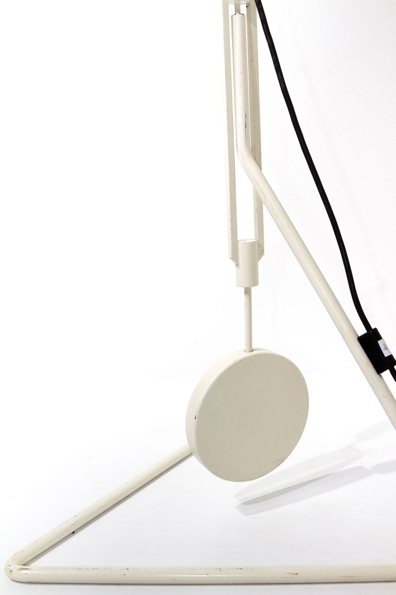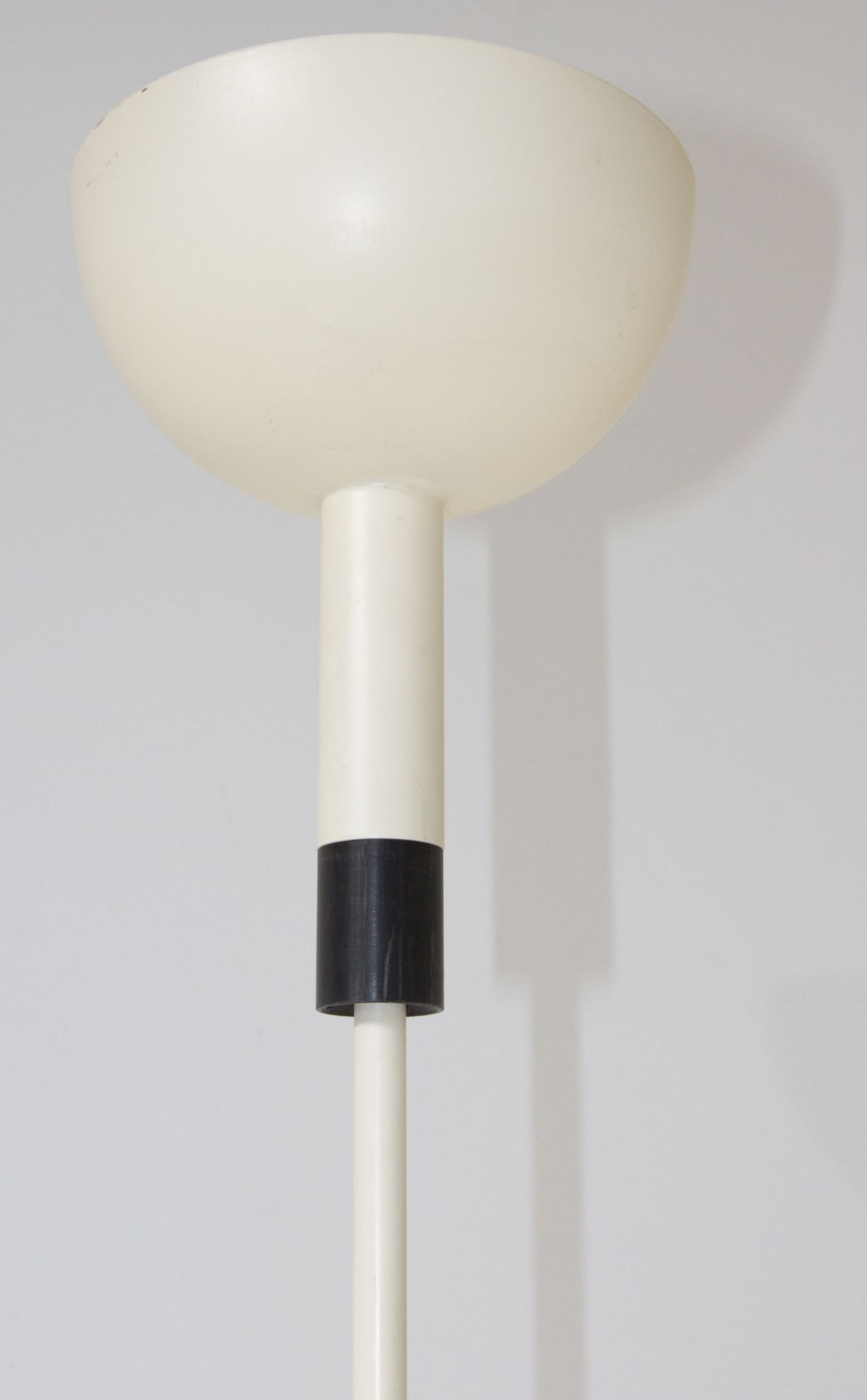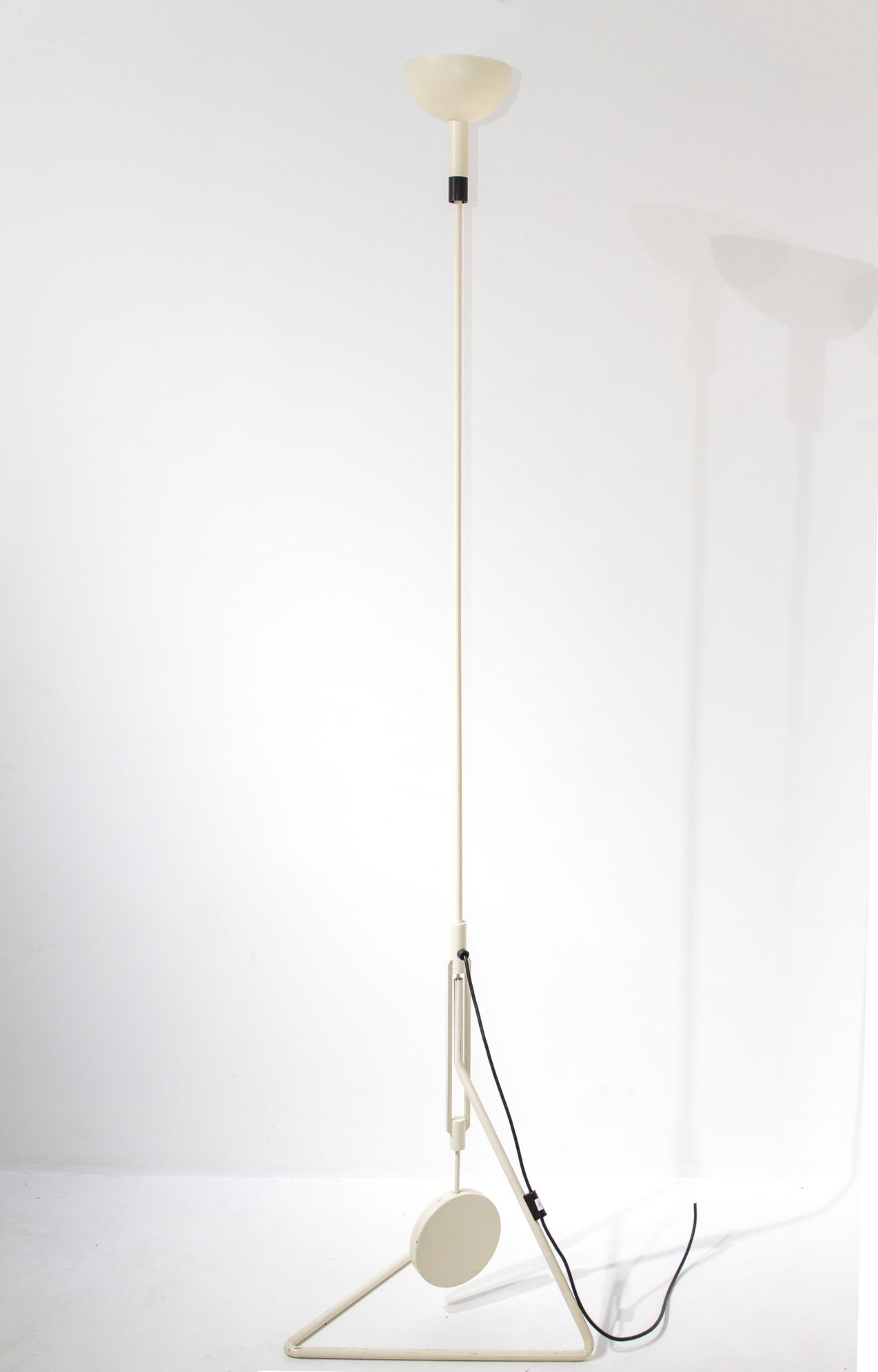 Martinelli, su disegno di E.Martinelli, mod. pendolo piantana in metallo laccato bianco. Anni '80. H cm 197x43