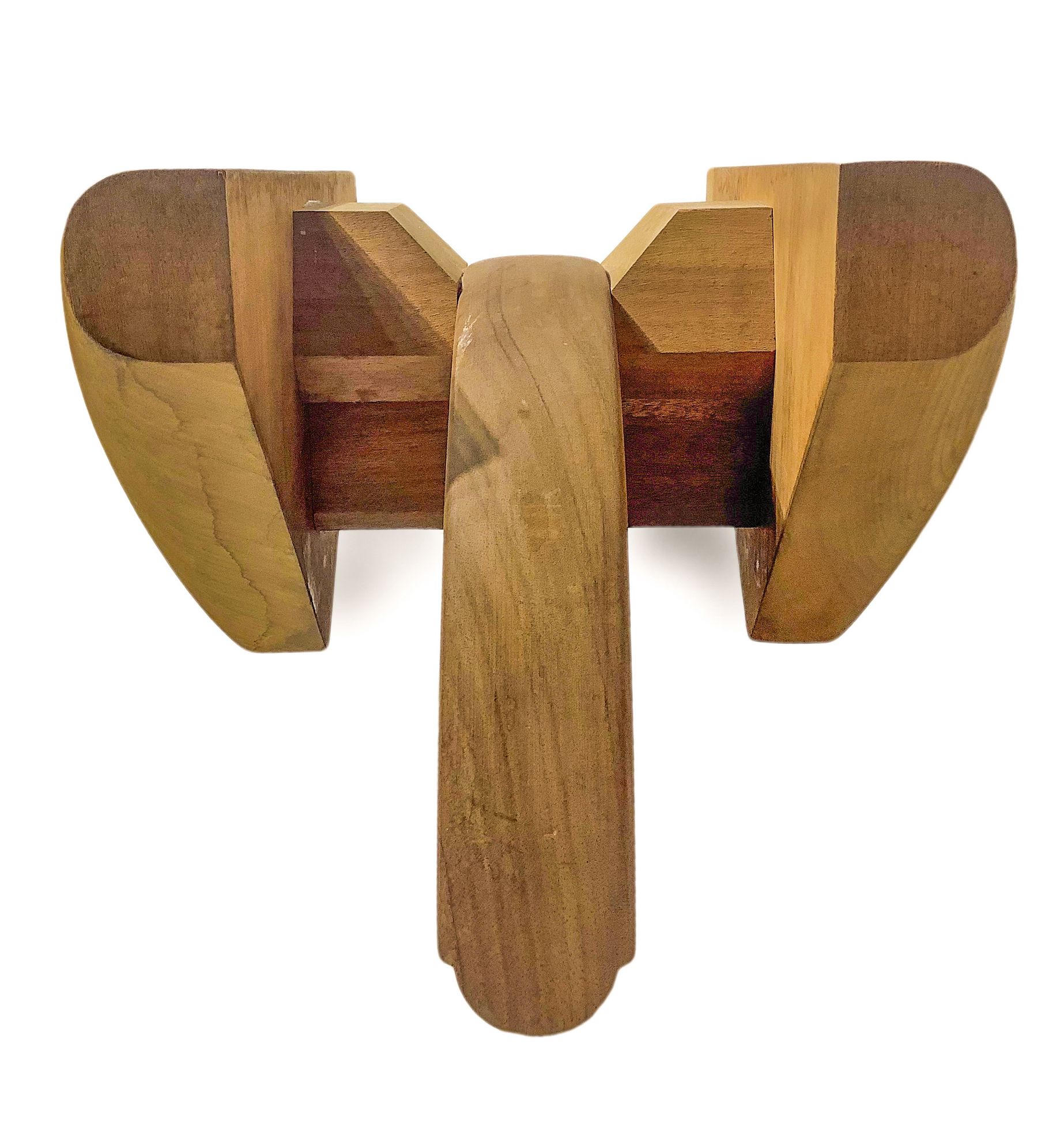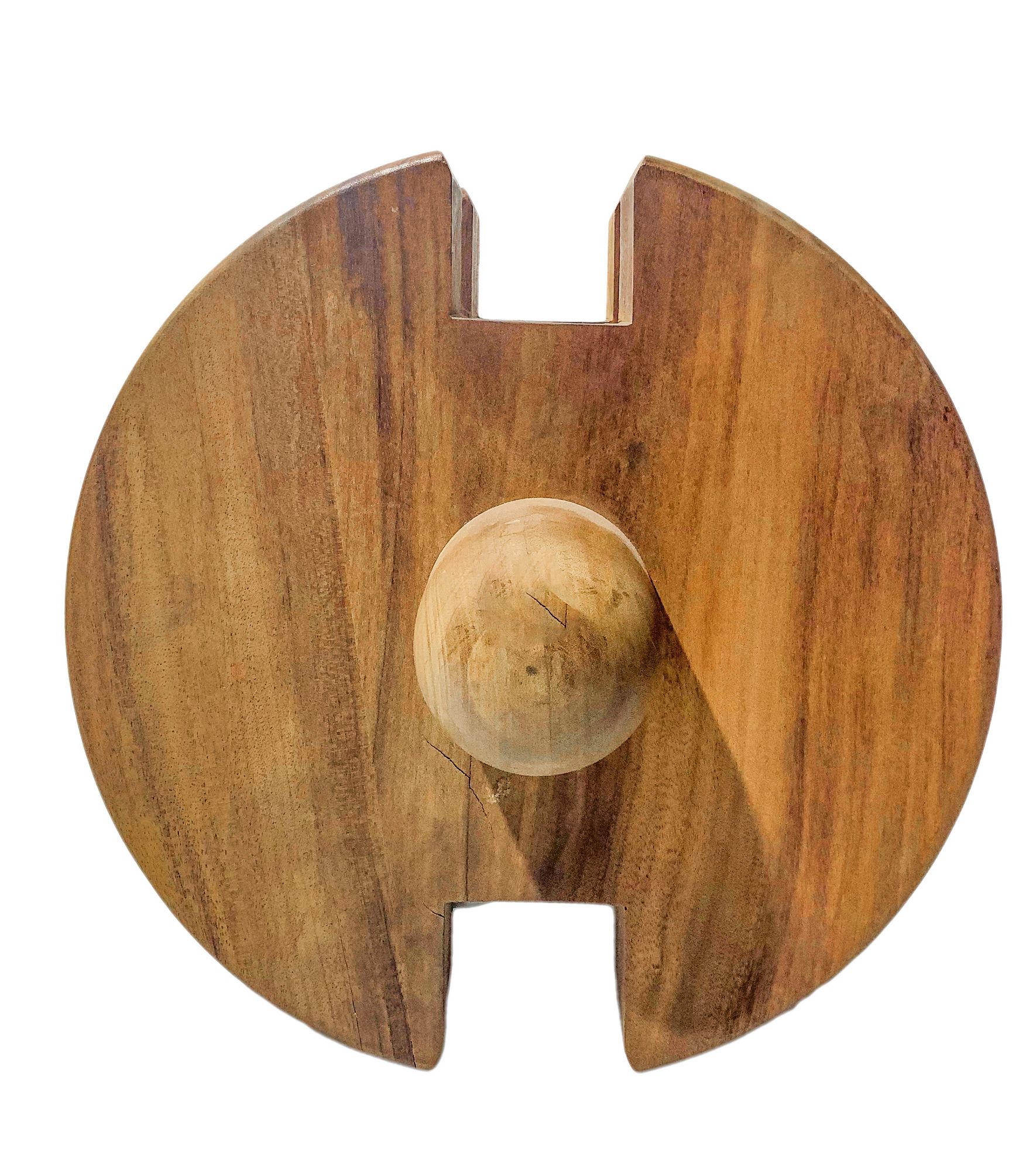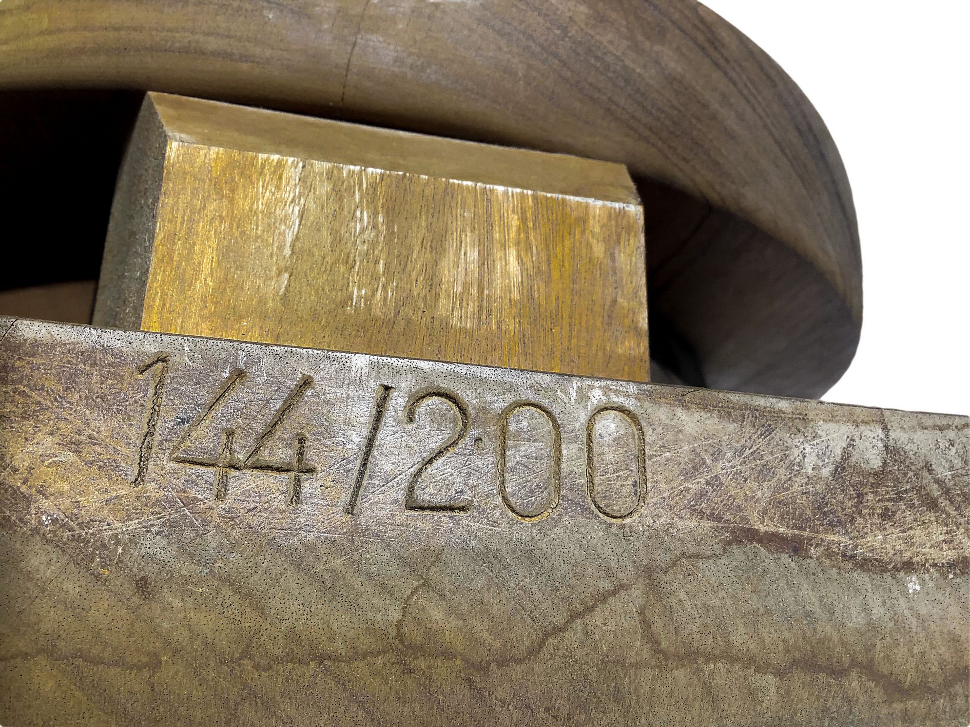Andrea Cascella, tavolino scultura mod.Legame come metamorfosi. Legno, vetro. 1984 ca. Numero di serie impresso 144/200 cm 48x50x50.