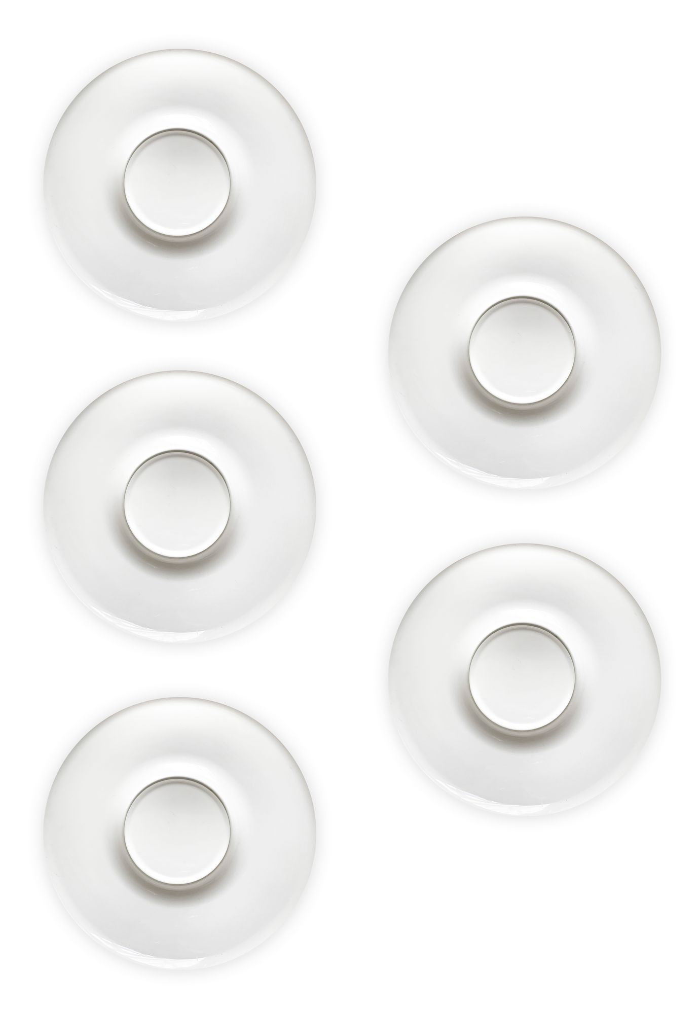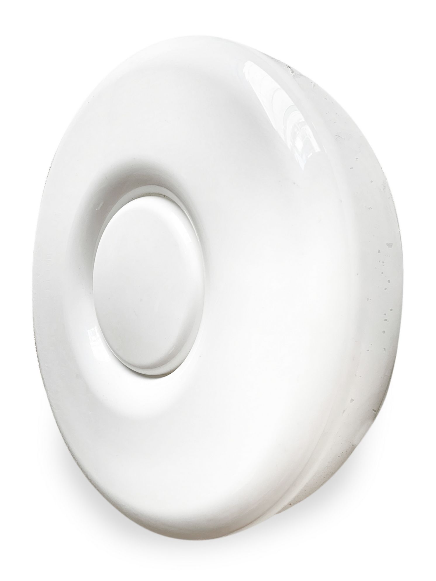 Gruppo di n.5 plafoni in perspex colore bianco, produzione italiana, nello stile di Poltronova. Struttura in metallo laccato, da to be re-electrified. Anni 60. Cm 6x50 diametro.
