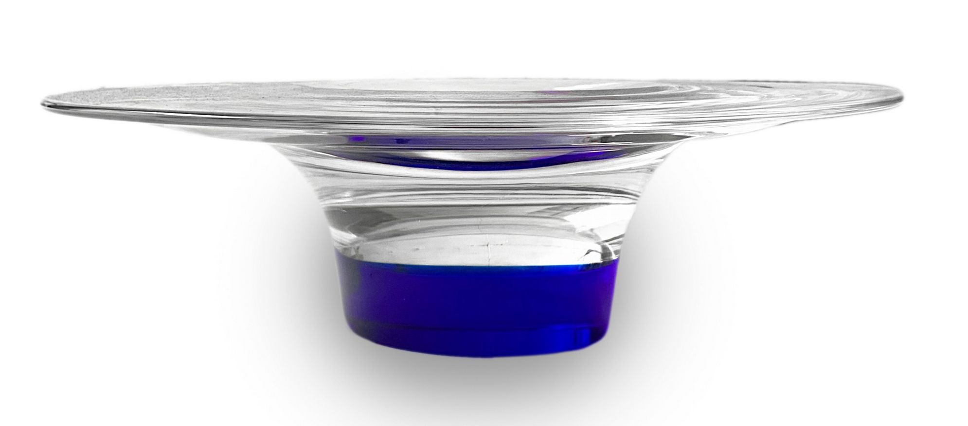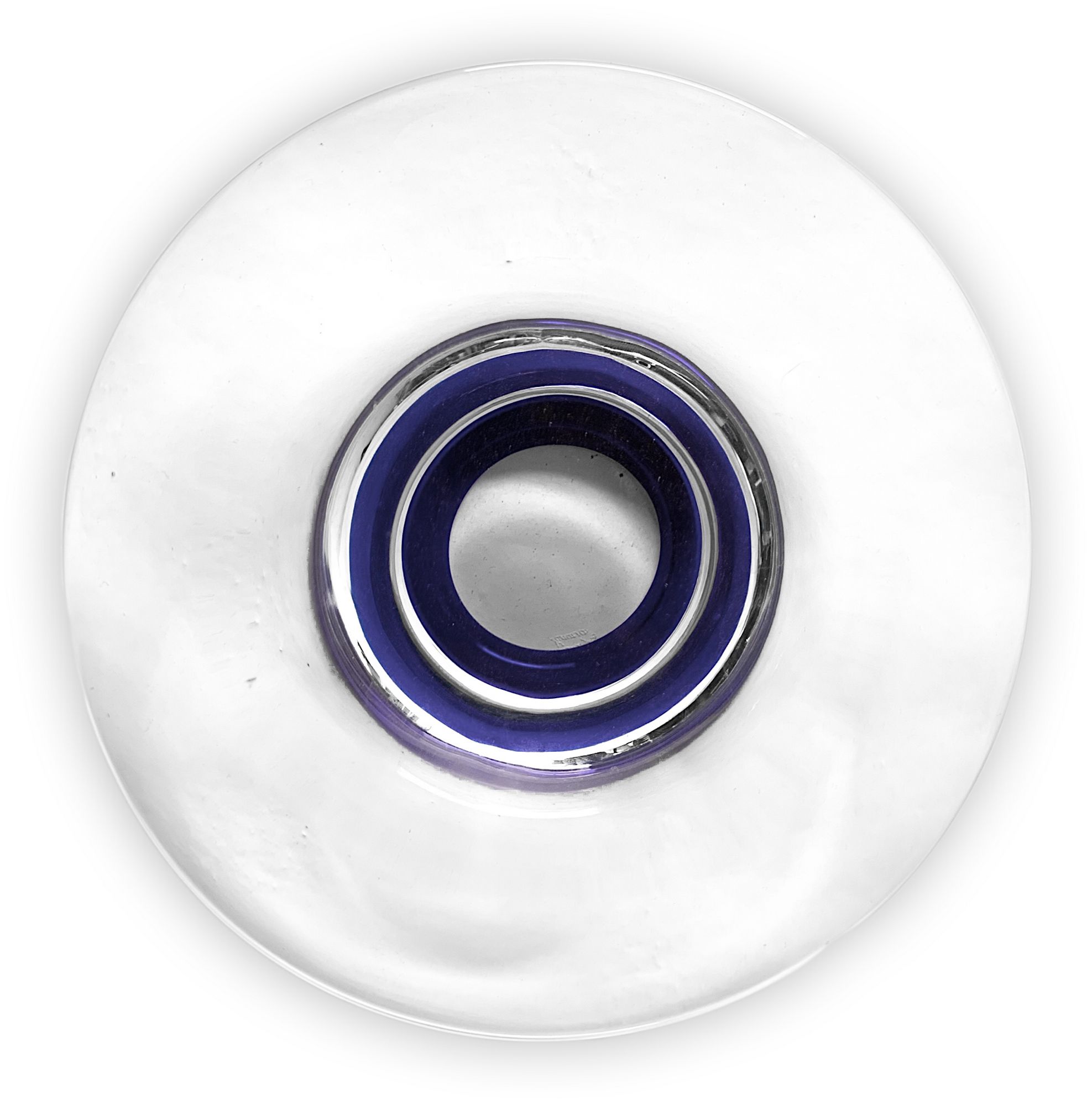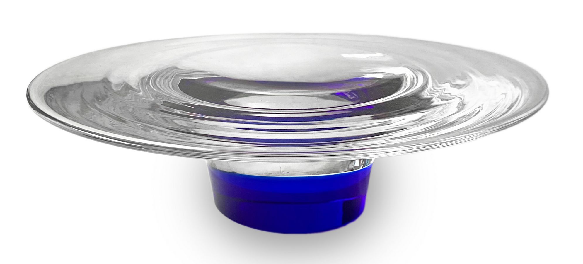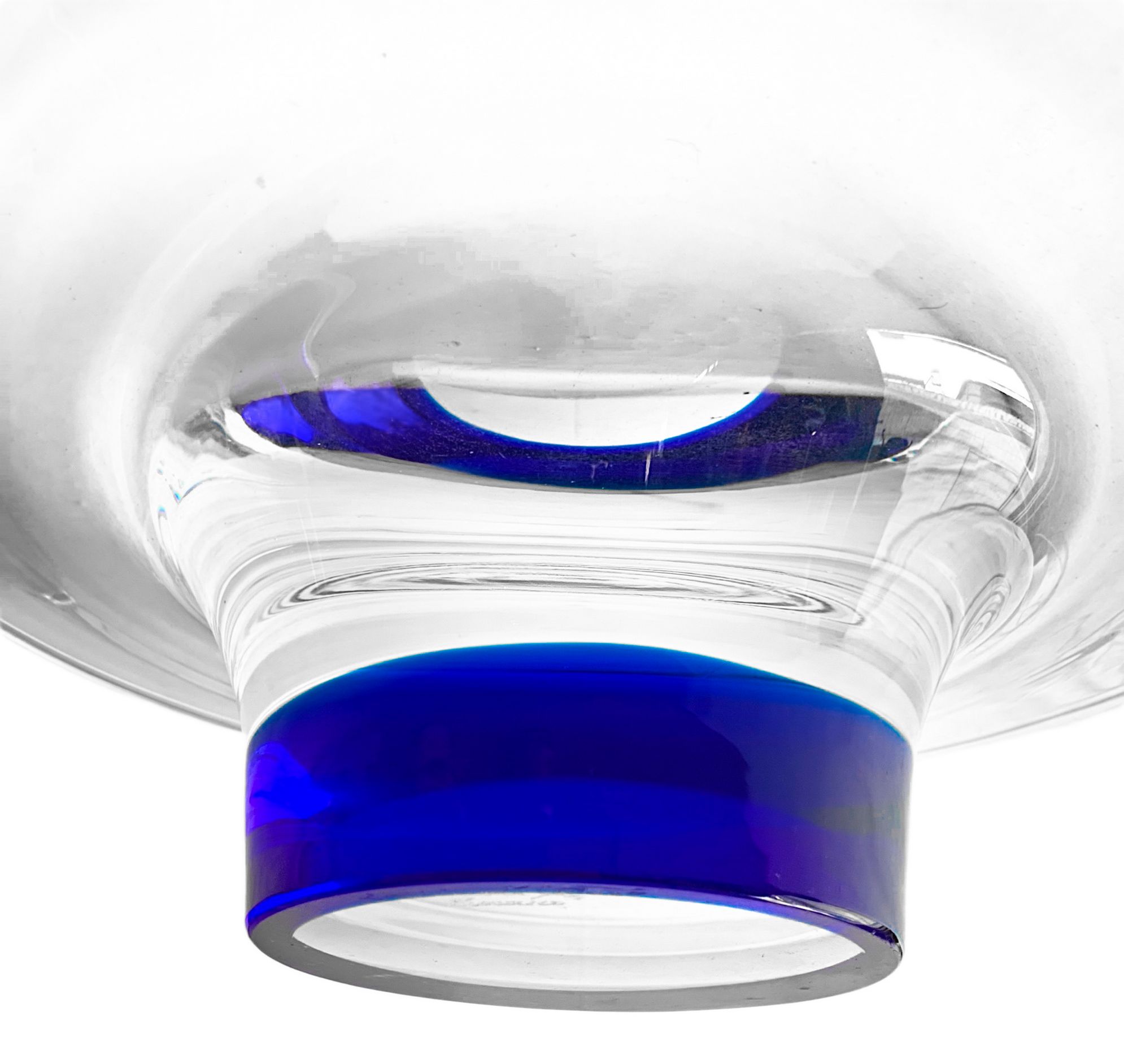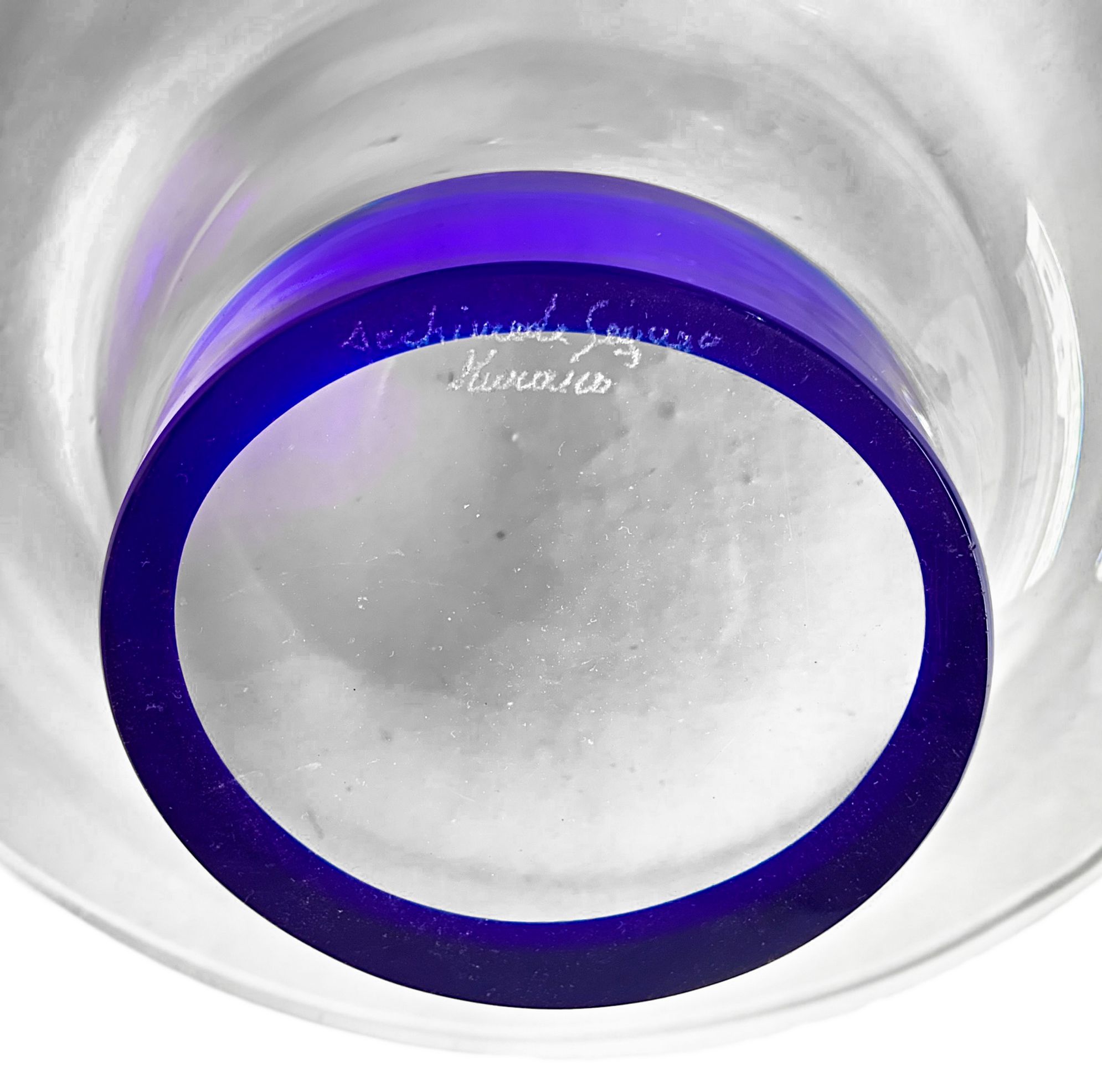 Archimede Seguso Murano, centro tavola in vetro pesante con inclusioni alla base nei toni del blu. Firma a punta di diamante. Anni 70