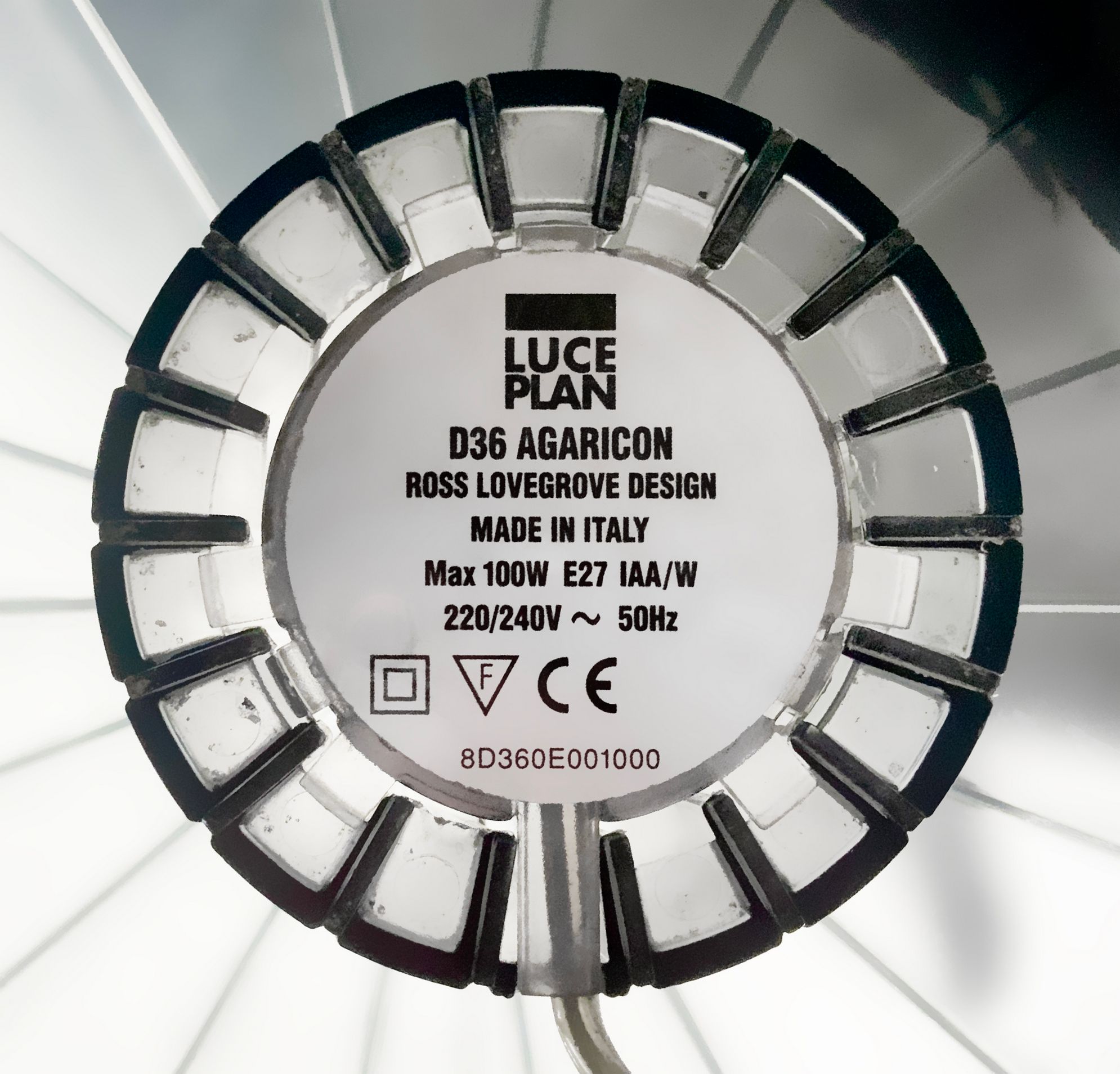 Luceplan. lampada da tavolo in plastica, sistema di accensione a sfregamento....
