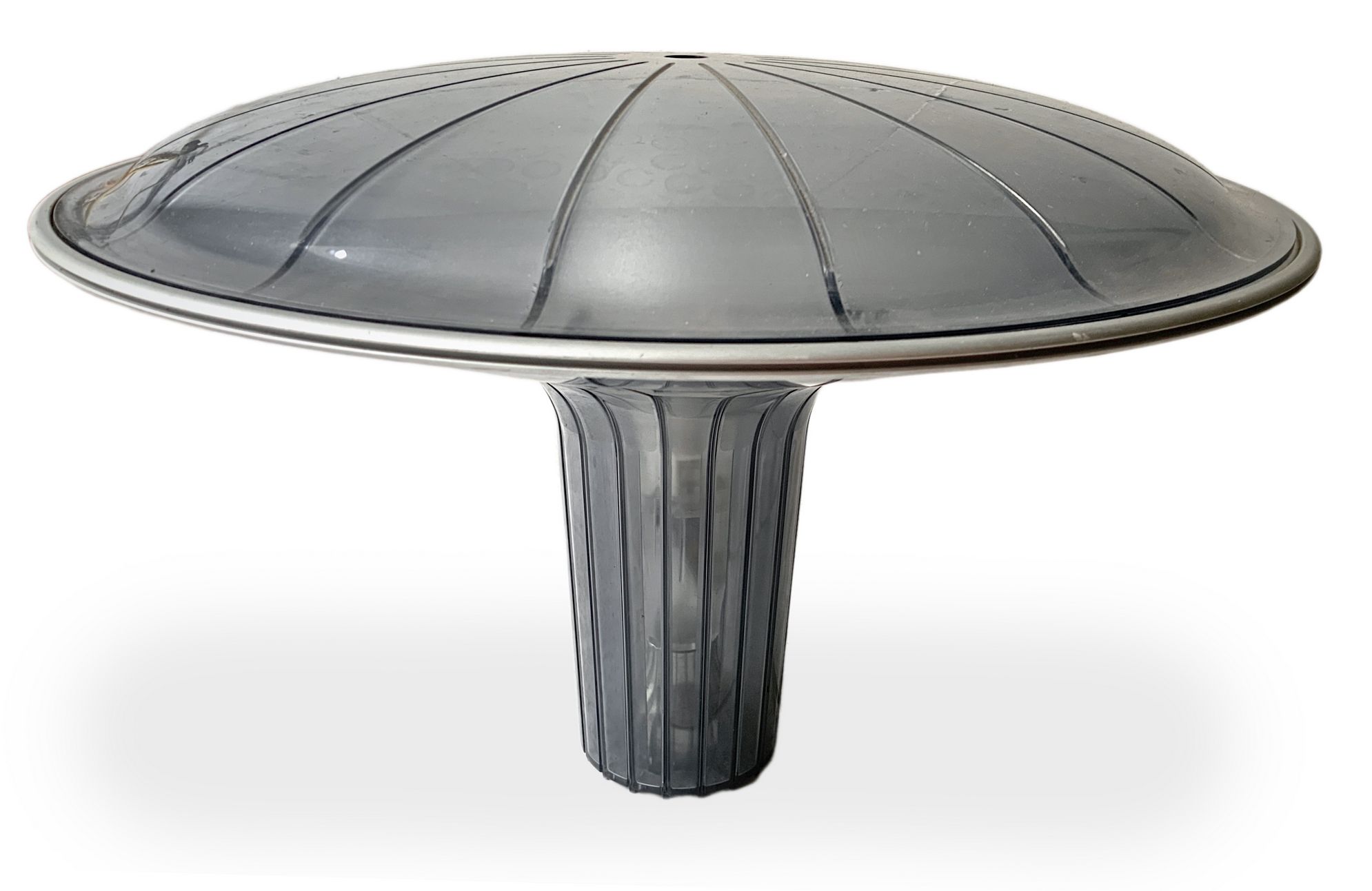 Luceplan. lampada da tavolo in plastica, sistema di accensione a sfregamento. Anni 80. Cm 28x41 diametro