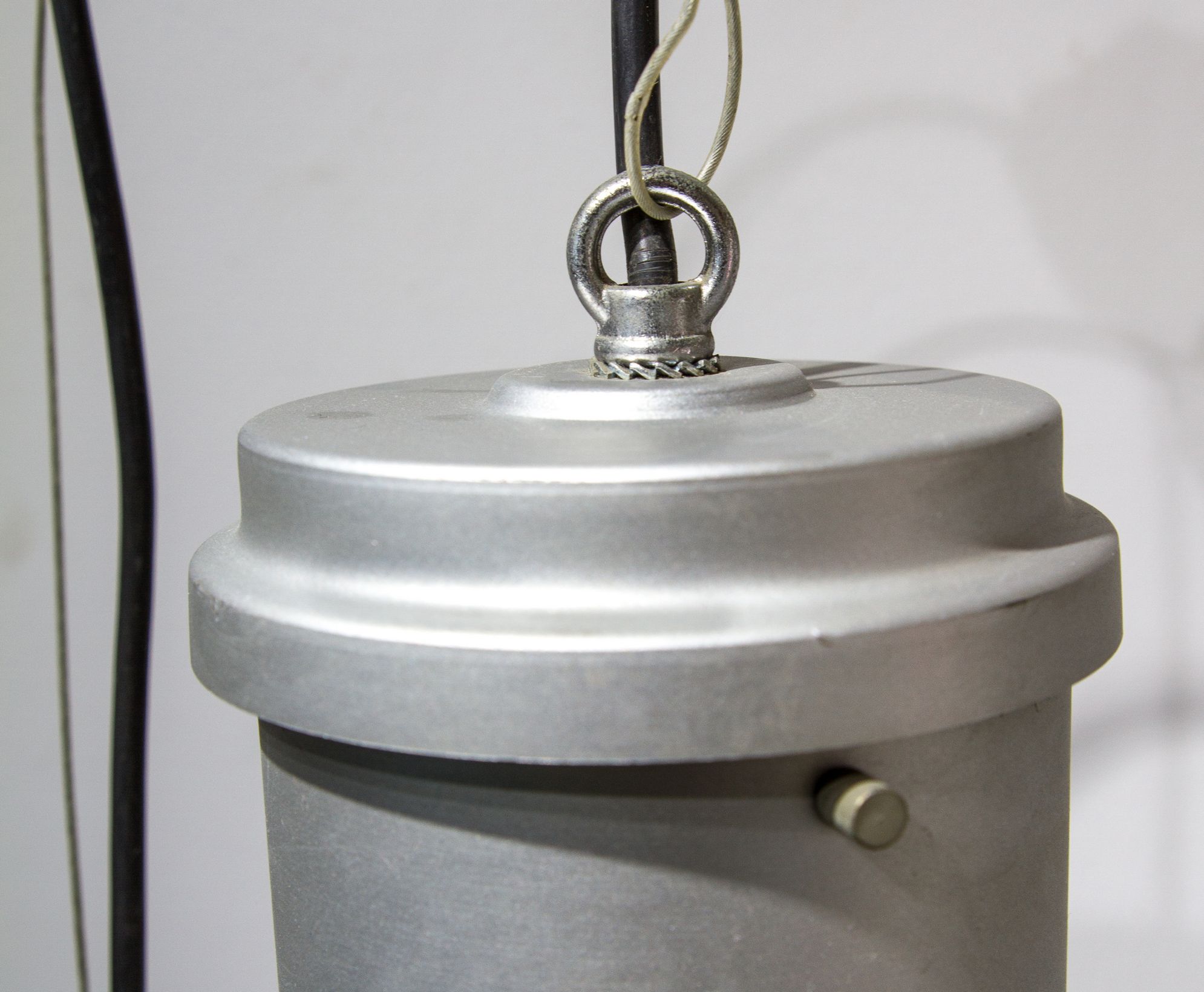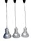 FontanaArte, gruppo di n.3 lampade a sospensione, struttura in alluminio anodizzato. Anni '90. H cm 33, diametro 27
