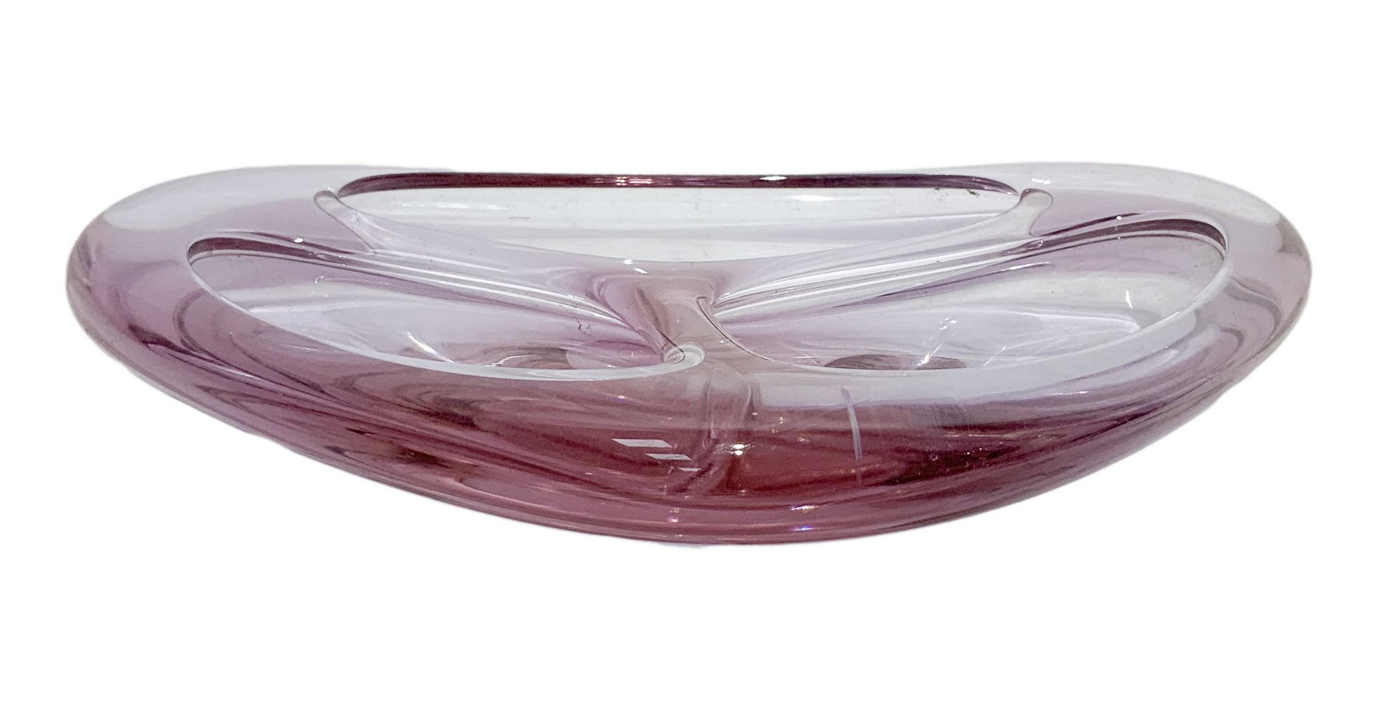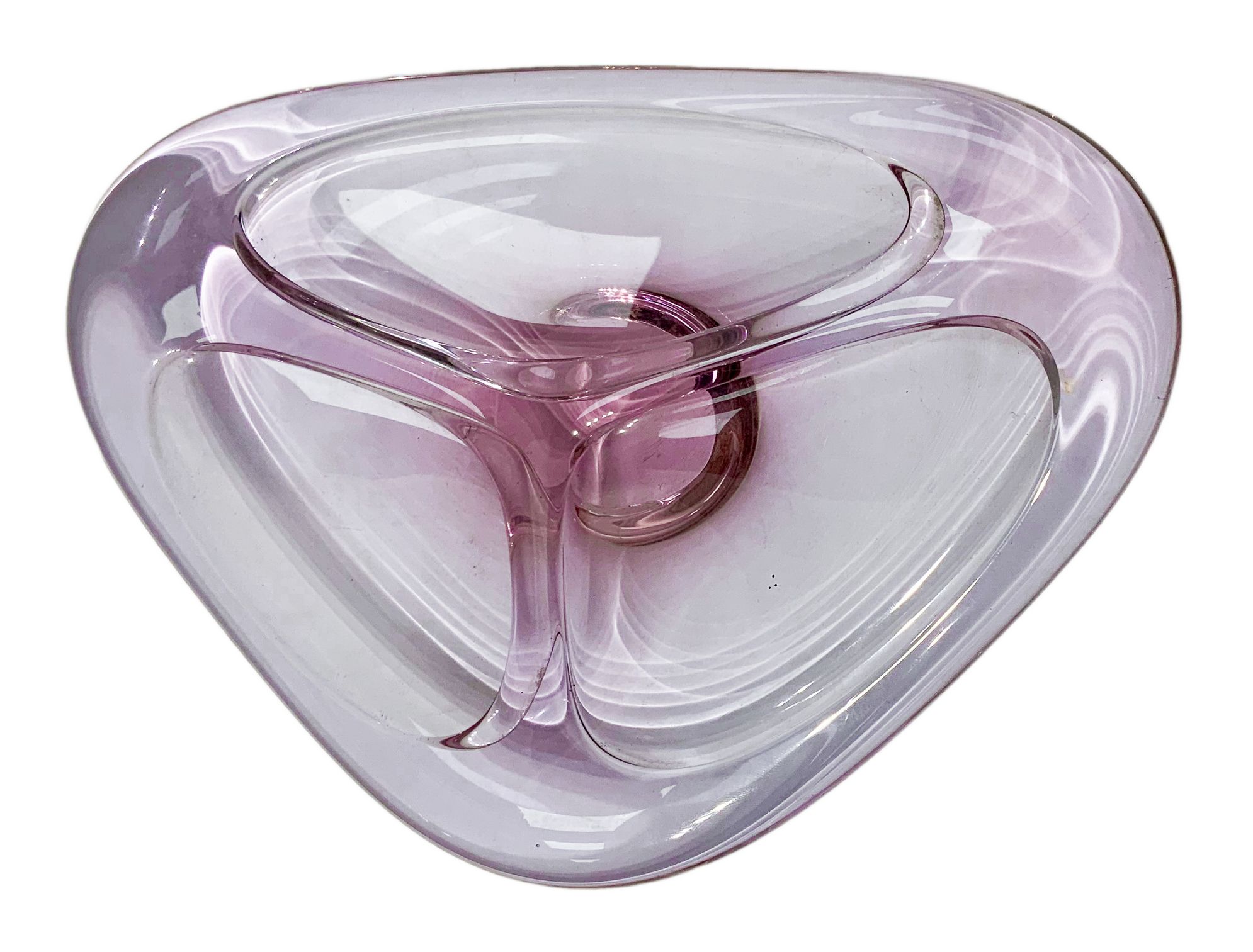 Mazzega Murano, centro tavola in vetro nei toni del glicine trasparente. Perfette condizioni. Anni 60. Cm20 x26