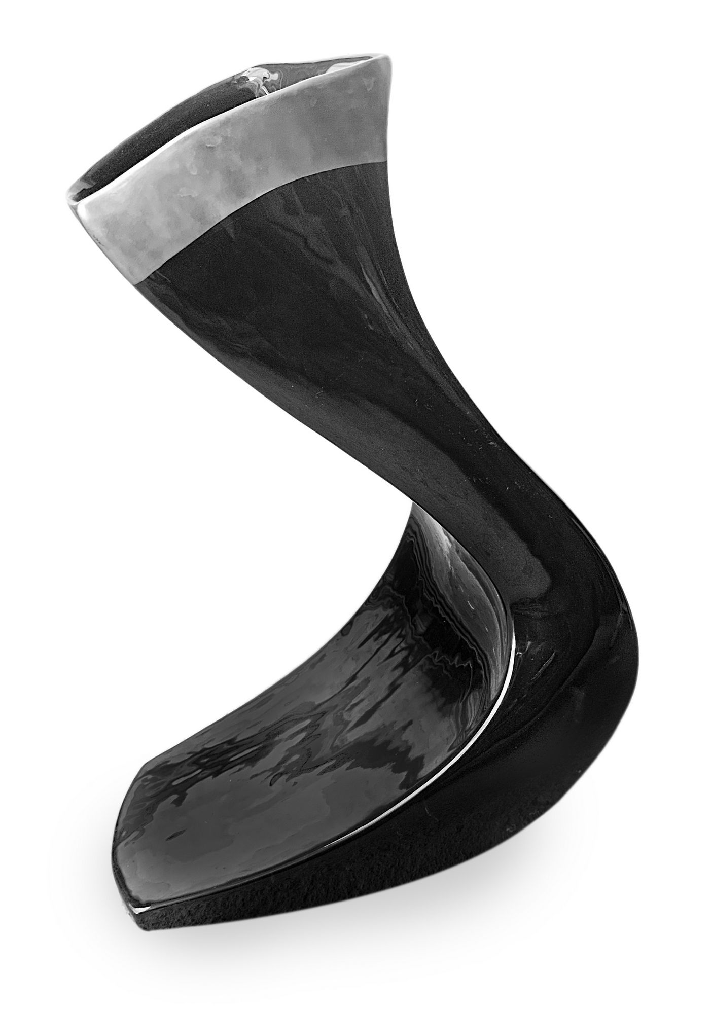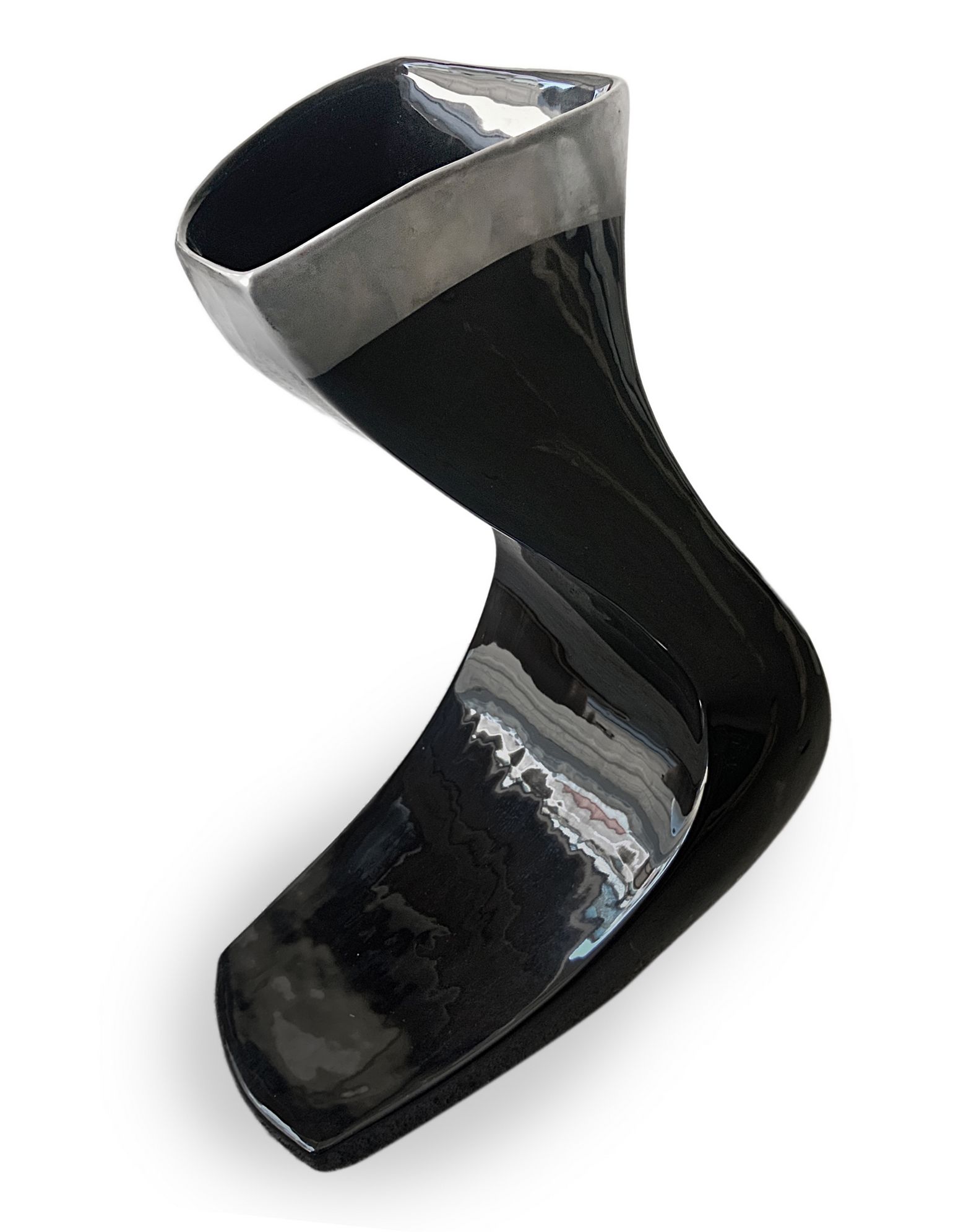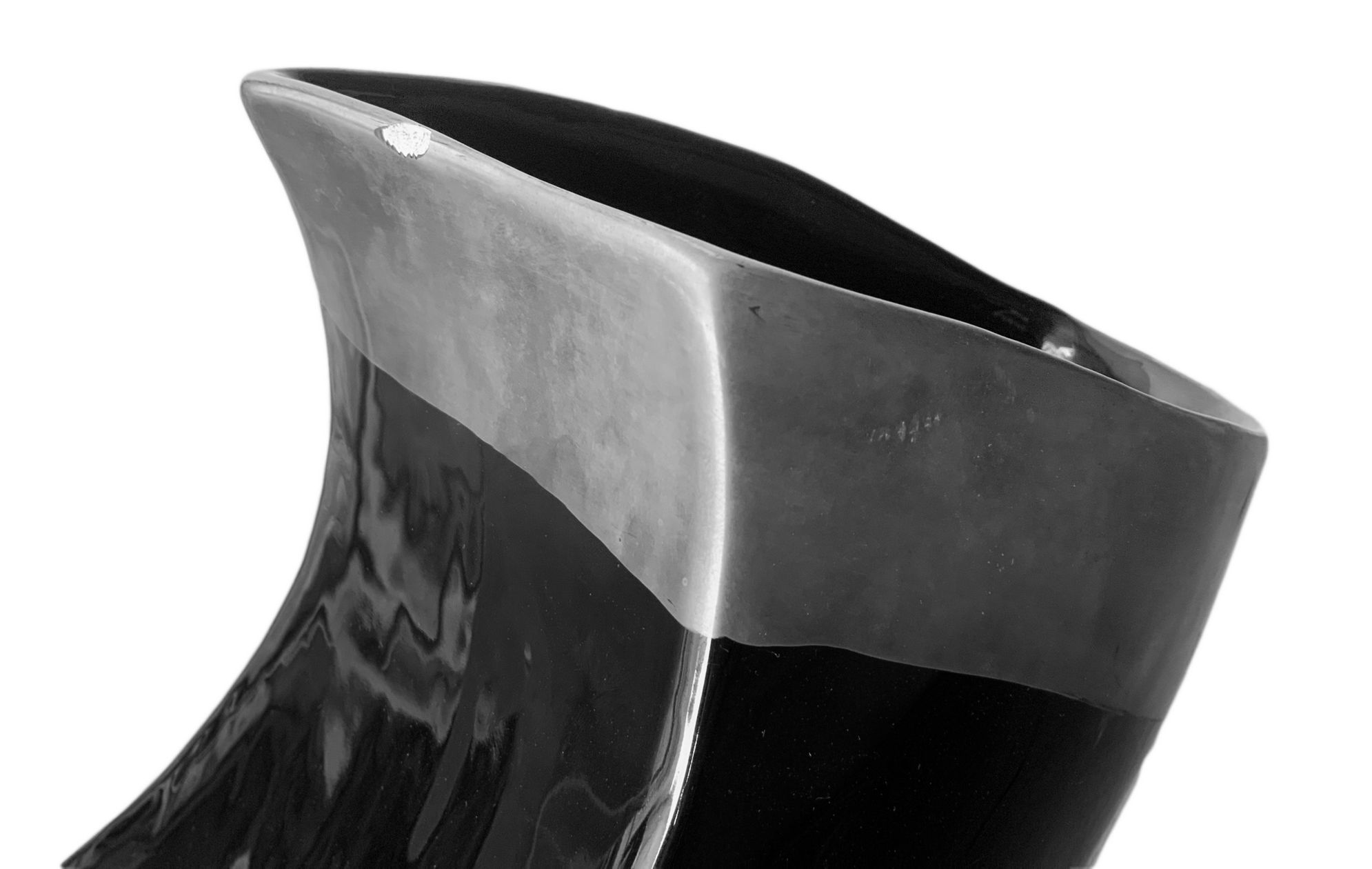 Vaso in ceramica, produzione italiana. Di gusto informale nei toni del nero, dettagli in grigio. Anni 70. Cm 44x30x20