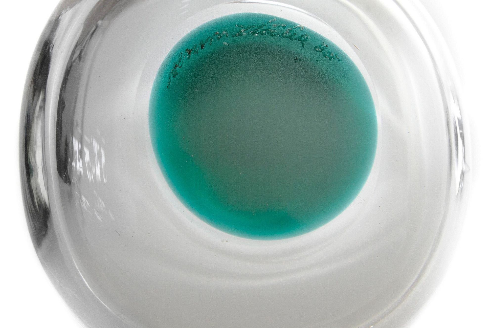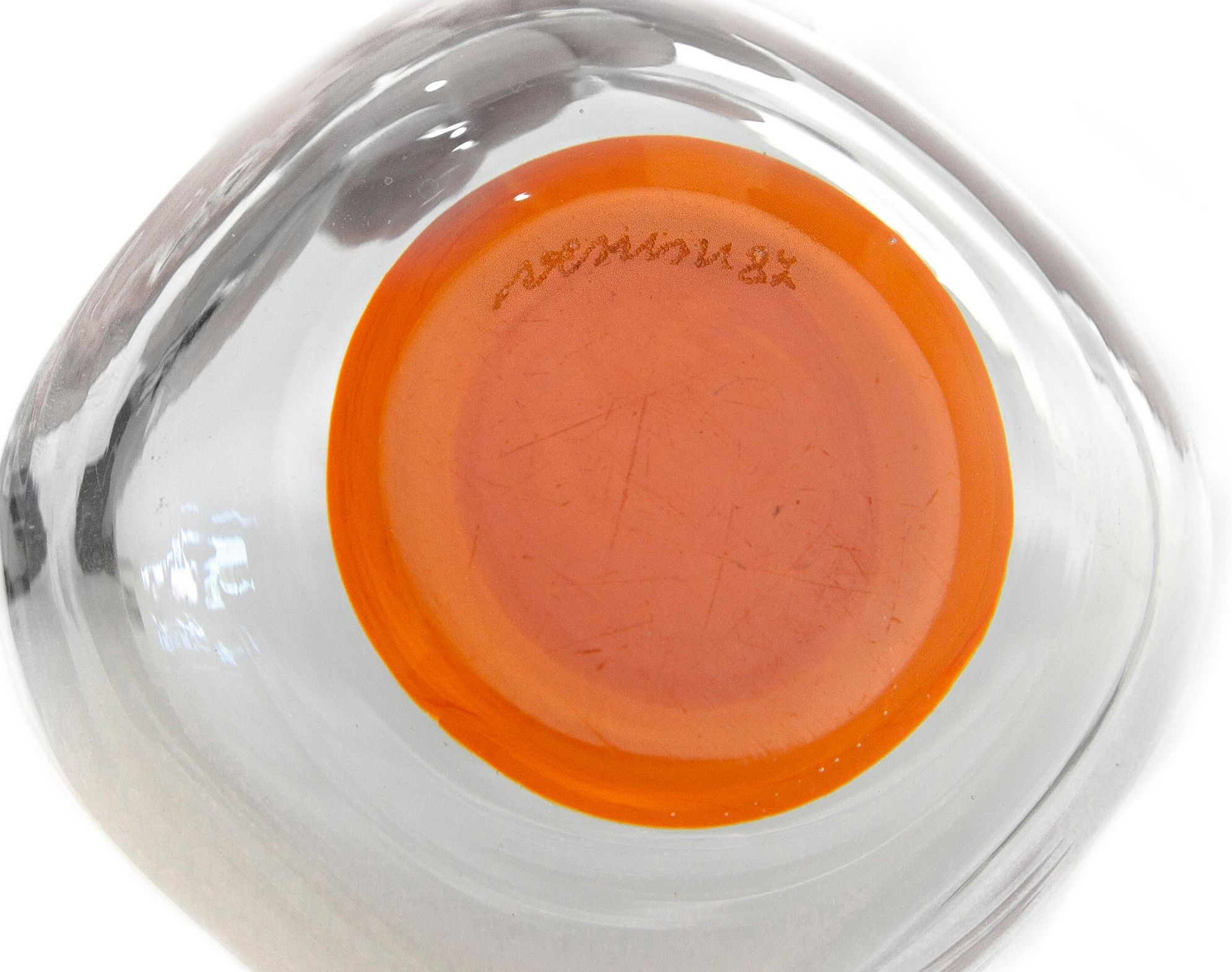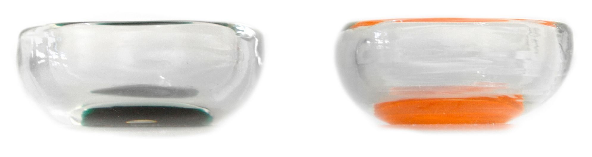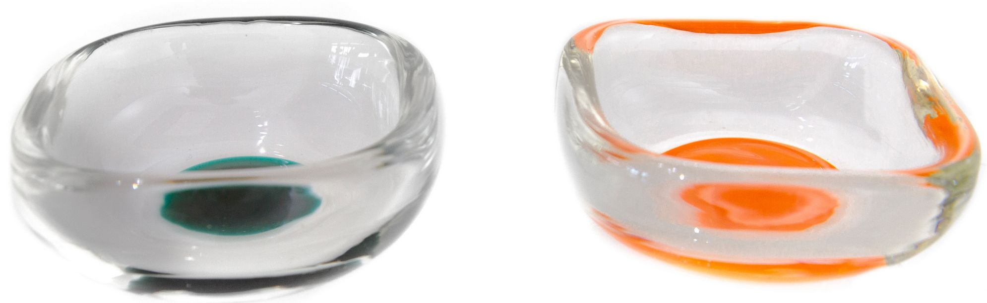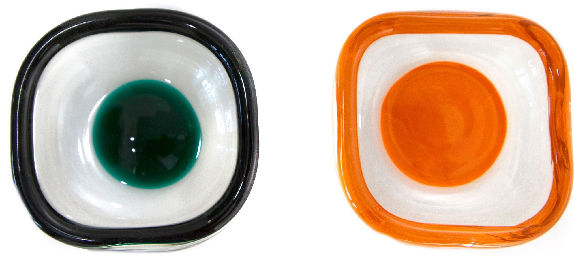 Lotto 164 | Venini. Coppia contenitori,1987. Colore arancio/ verde. H Cm 4, Cm 8x8. Firmato