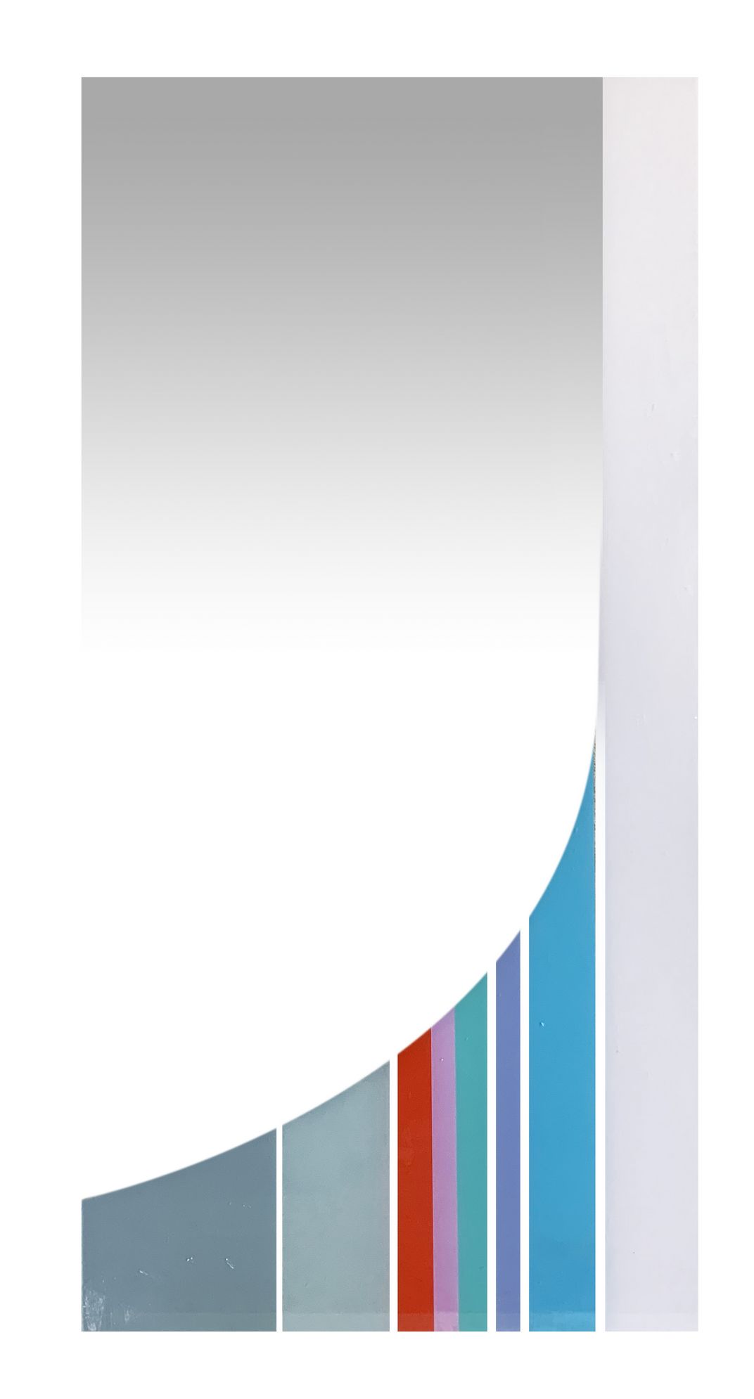 Acerbis International, linea Morphos, disegno di Lio Carminati specchio di forma rettangolare con decorazione in policromia. Anni 80. Cm 65x130.