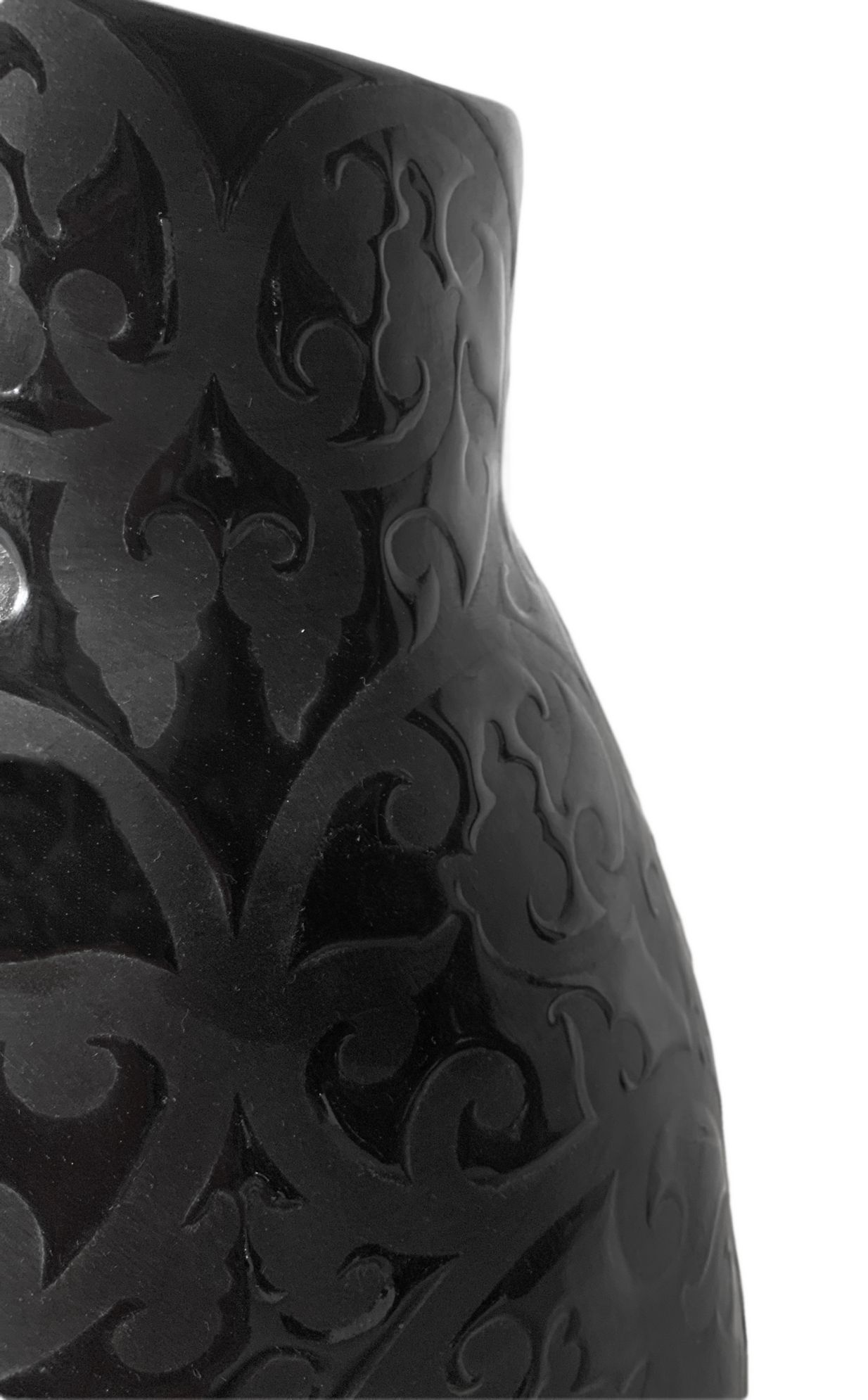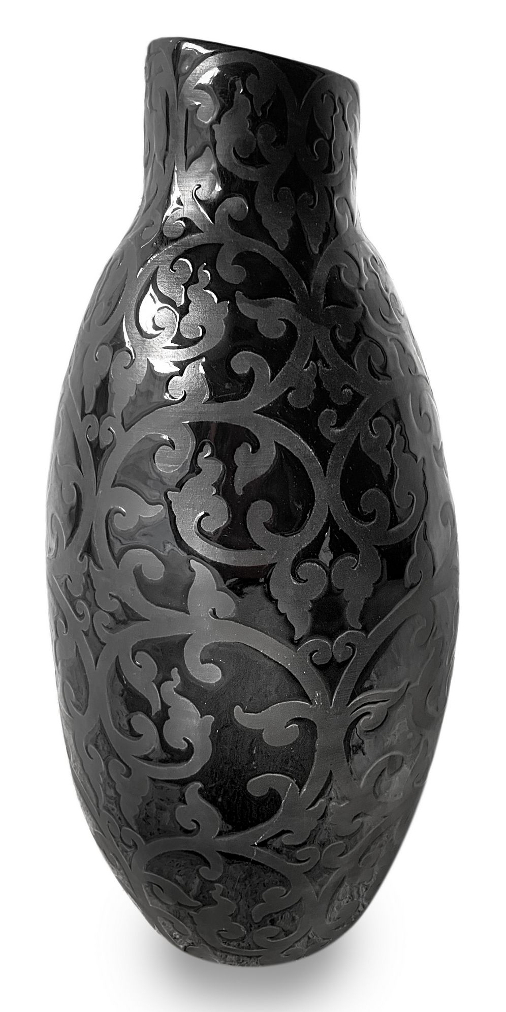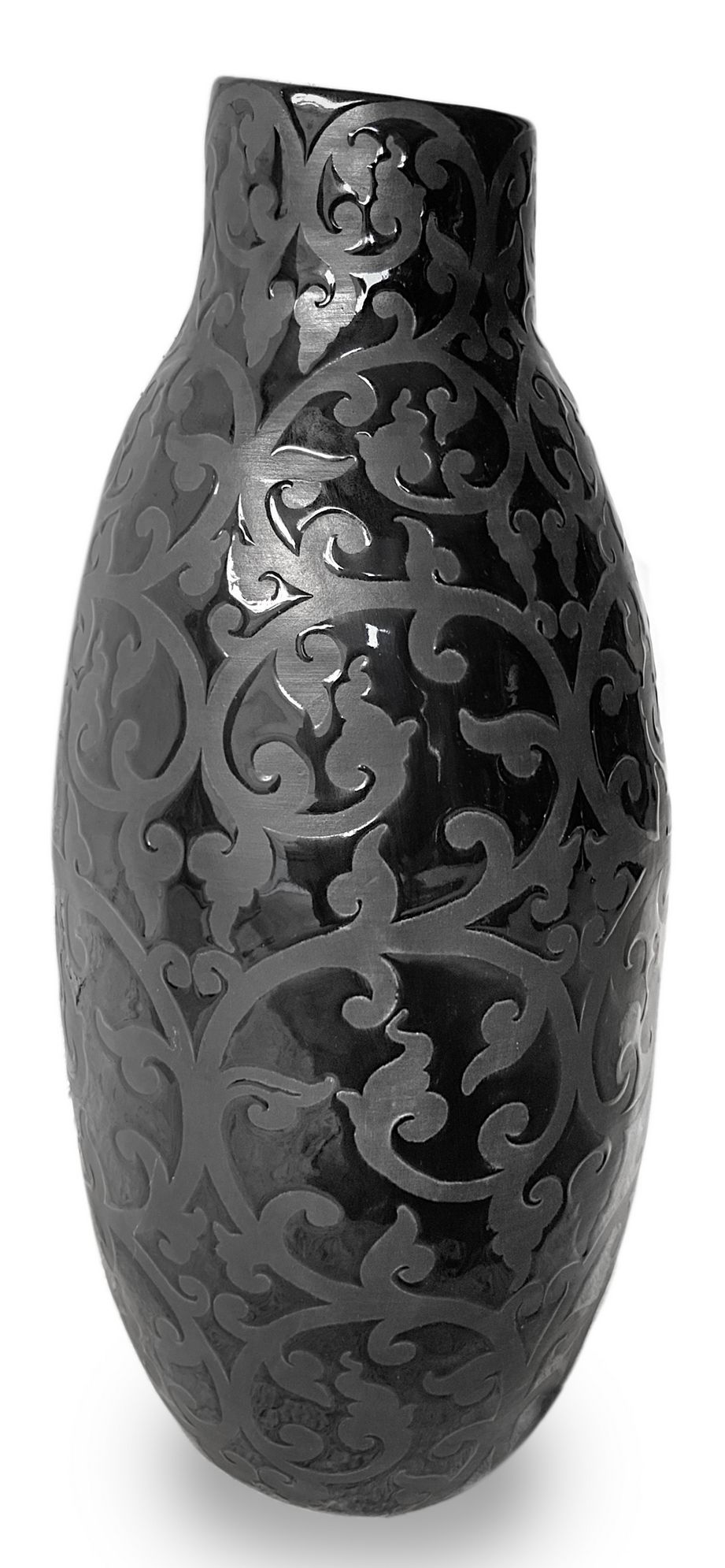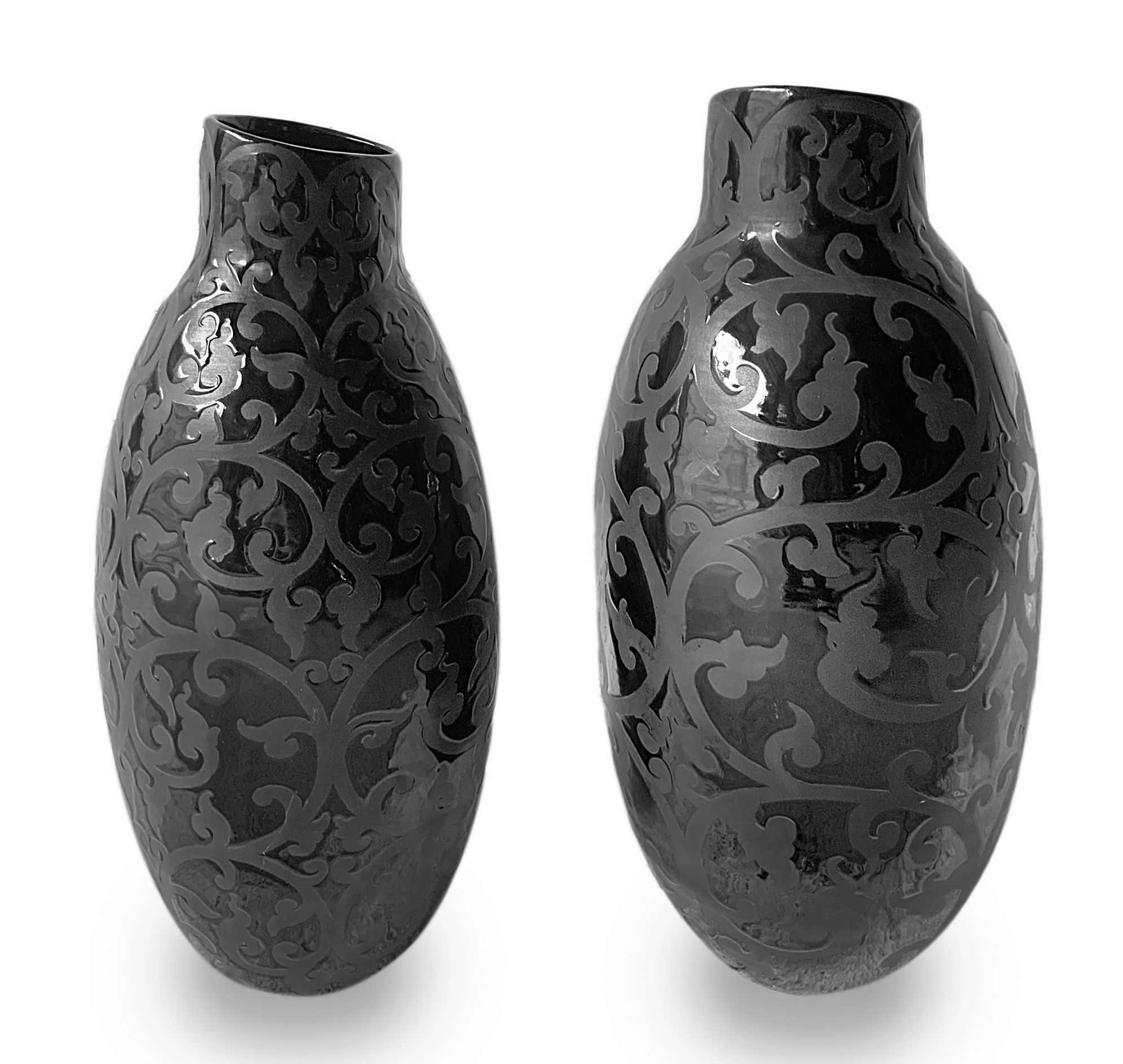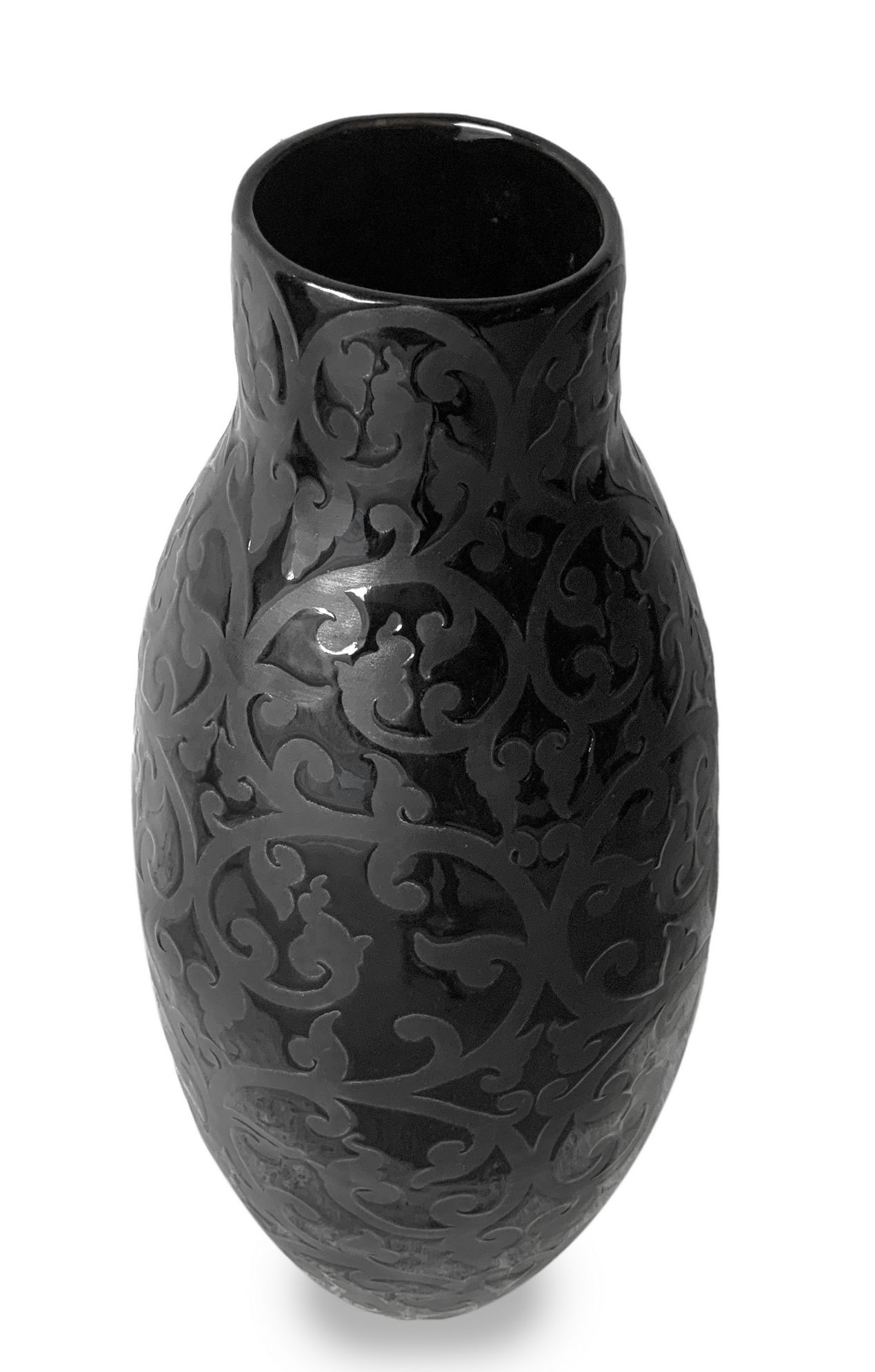 Coppie di vasi, produzione italiana. Forma ovoidale decoro a ingobbio di gusto floreale. Anni 60. Cm 53x24