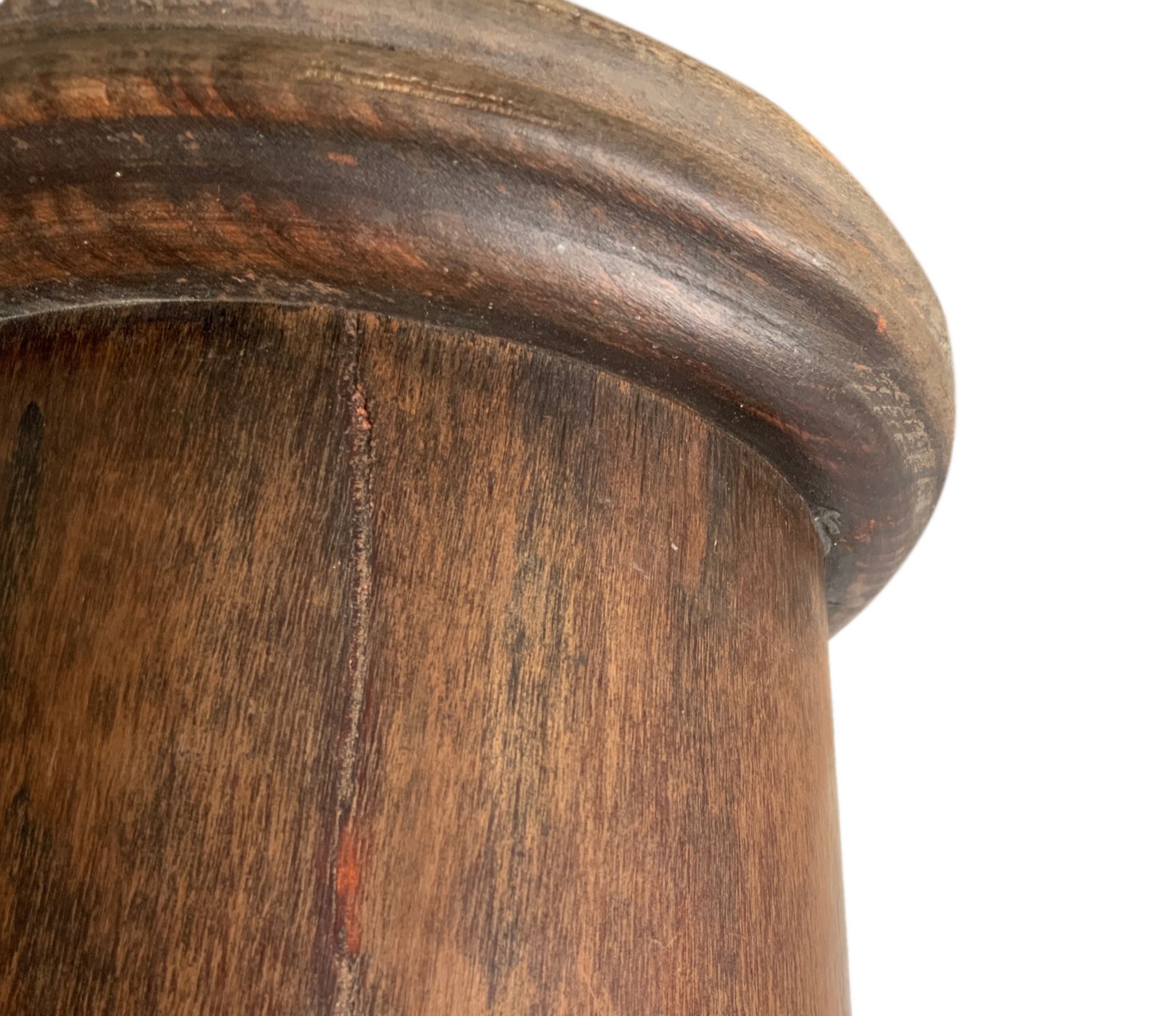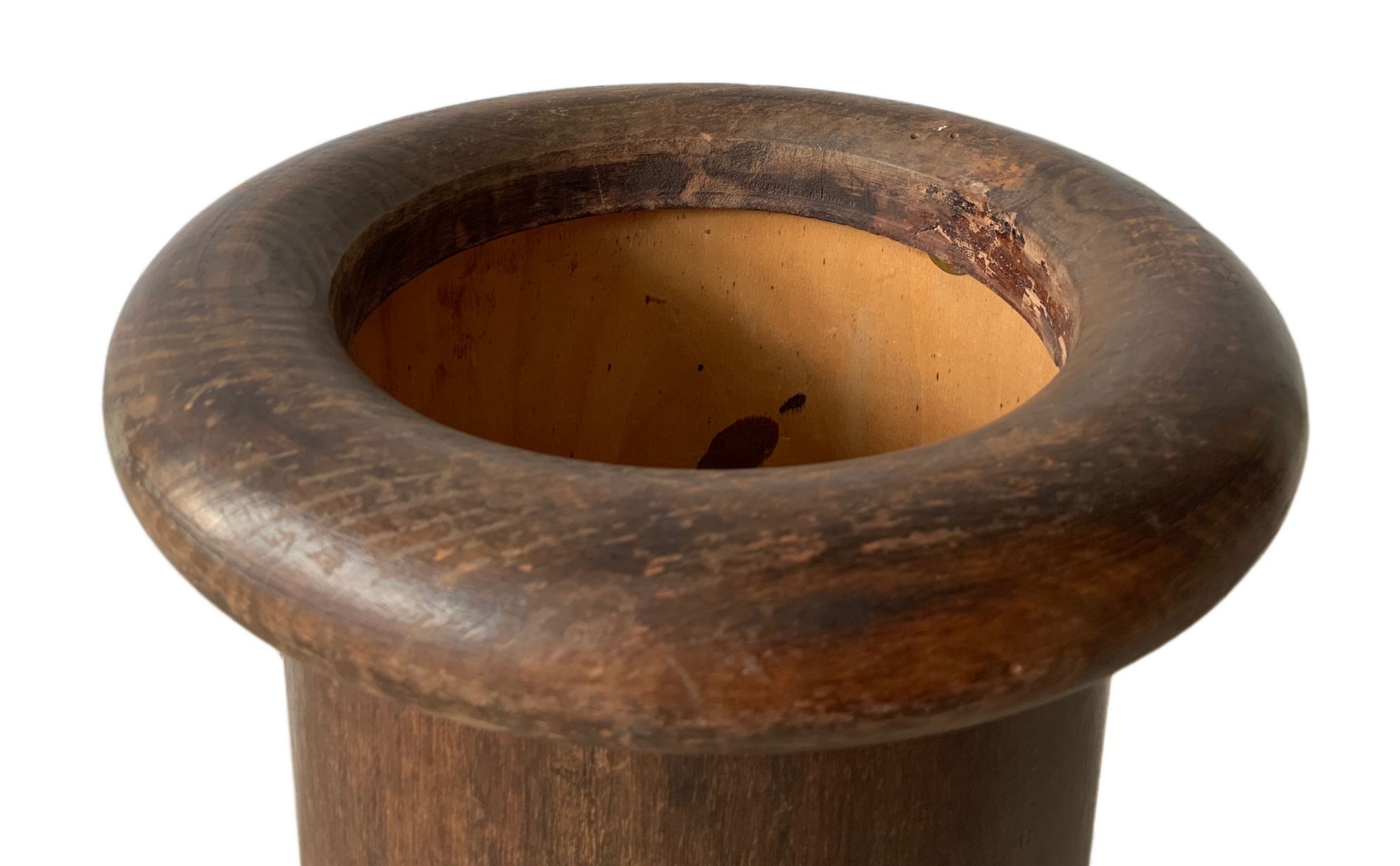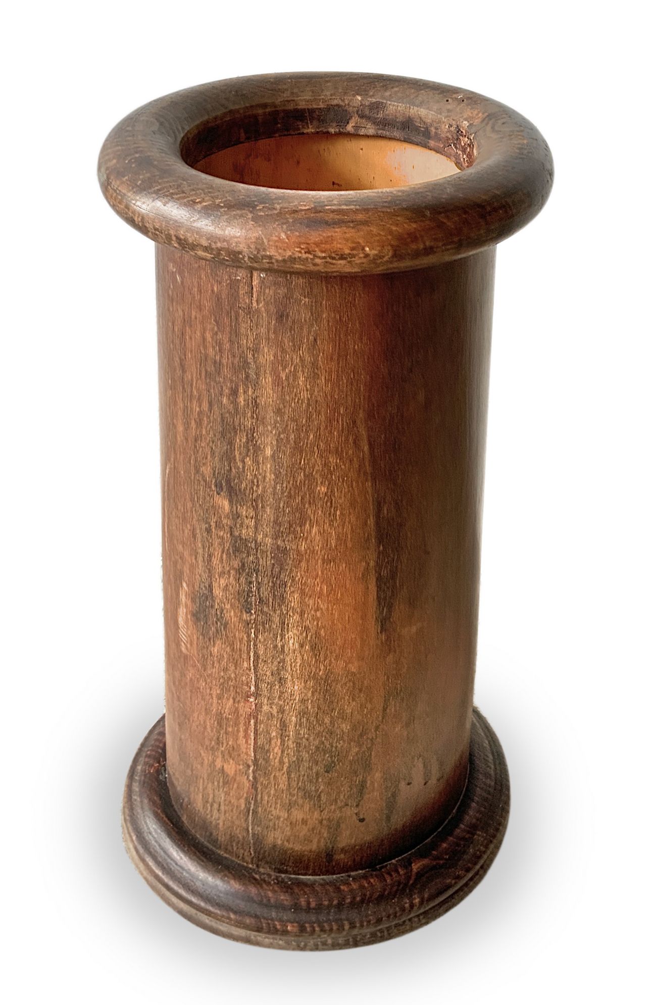 Portaombrelli, produzione italiana in legno di forma cilindrica. Anni 40. 44 × 24 cm. Segni di uso.