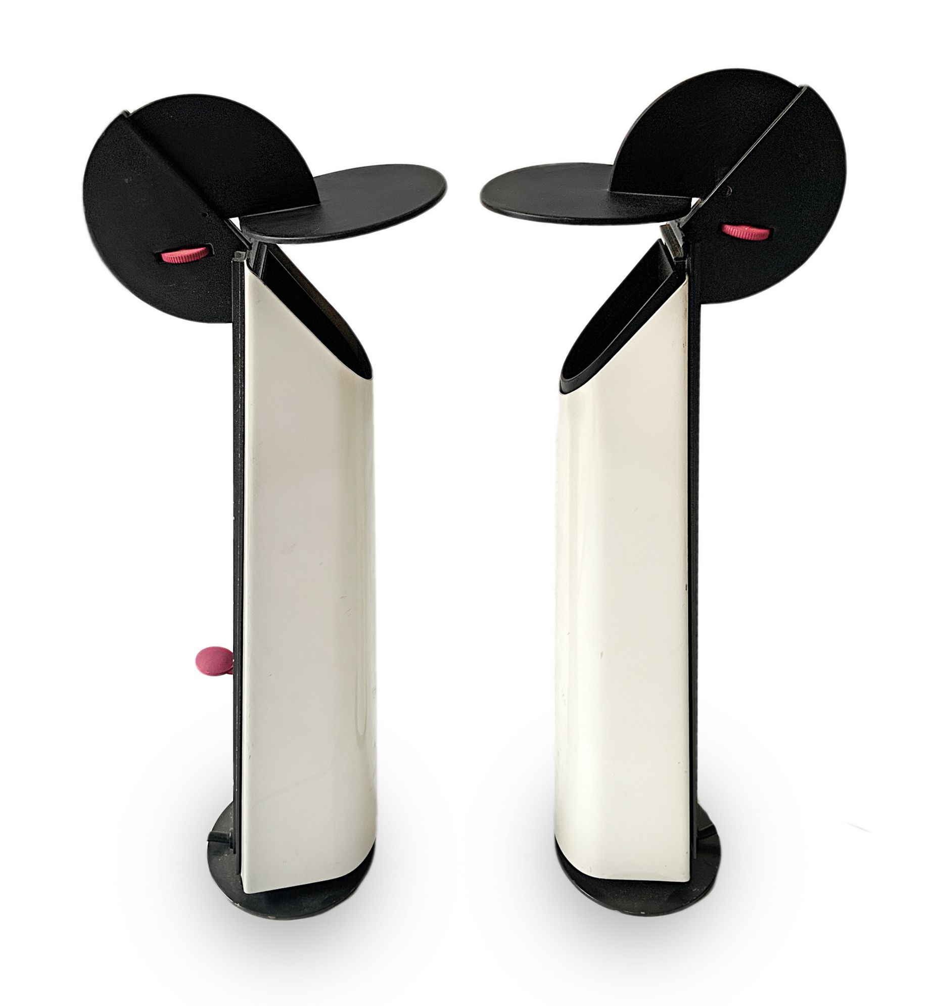Flos, disegno Achille e Pier Giacomo Castiglioni, modello Gibigiana. Coppie di lampade in metallo laccato bianco. Segni di uso, anni 70. cm 43 × cm 9