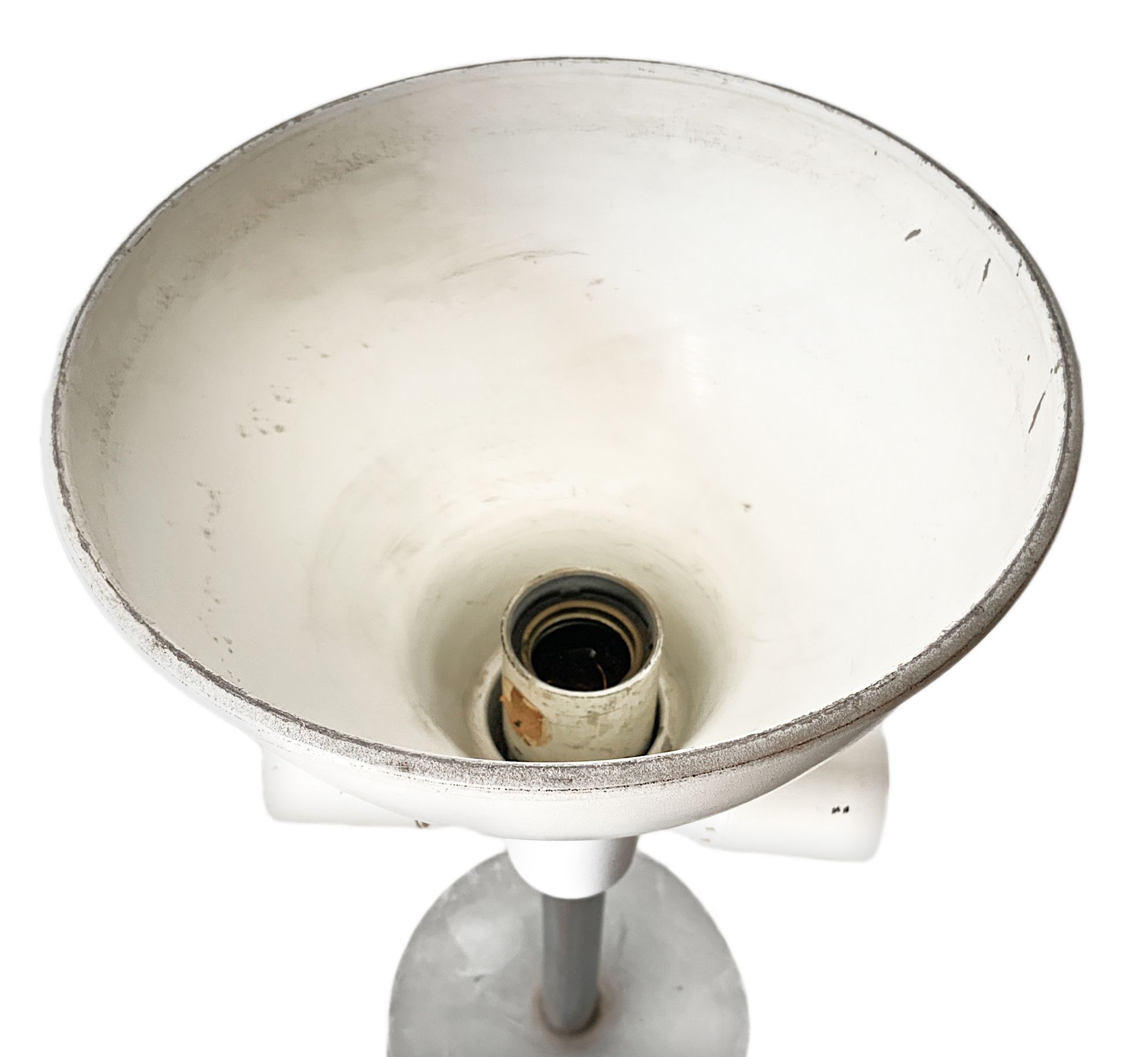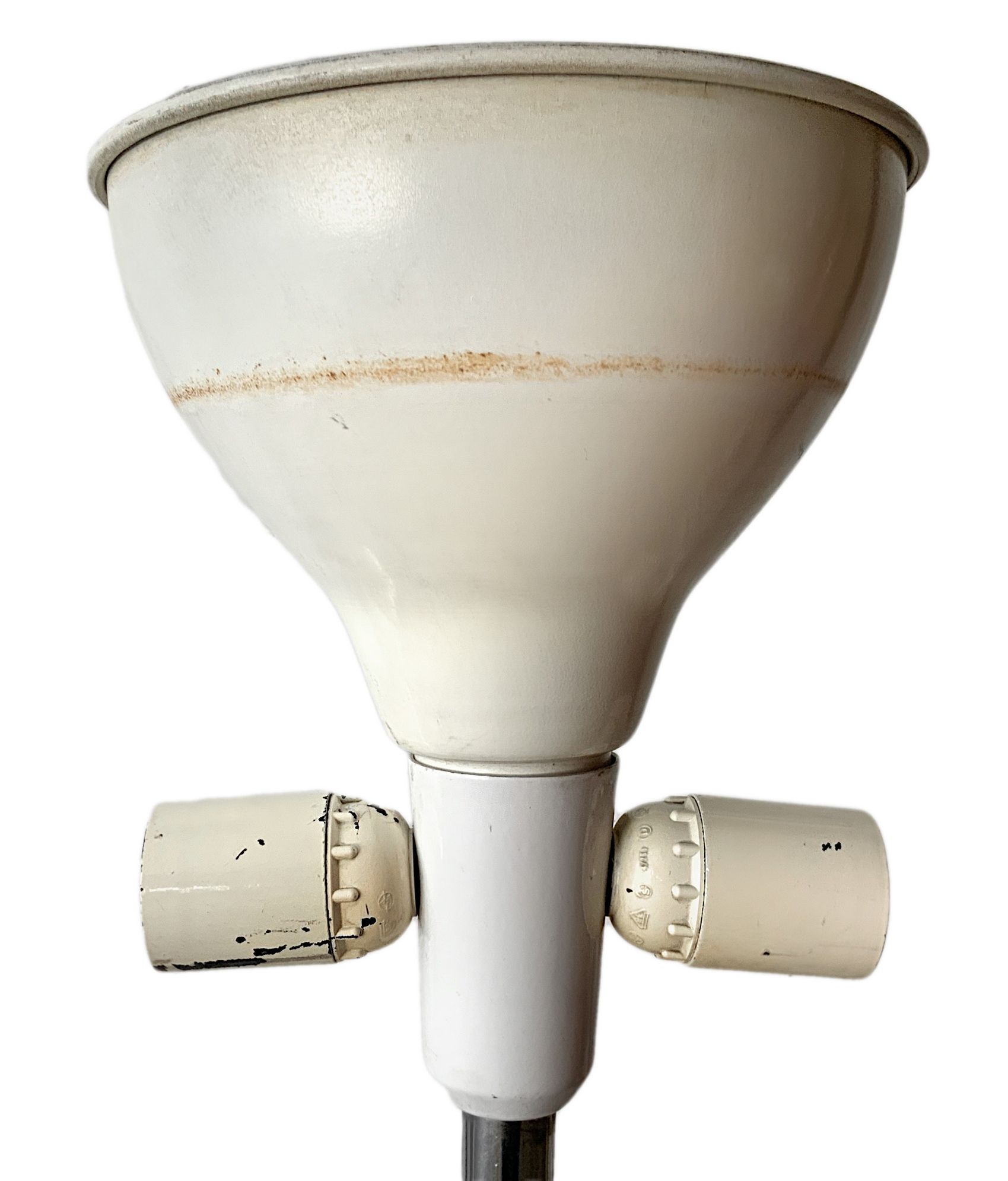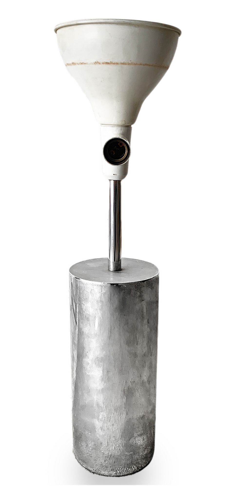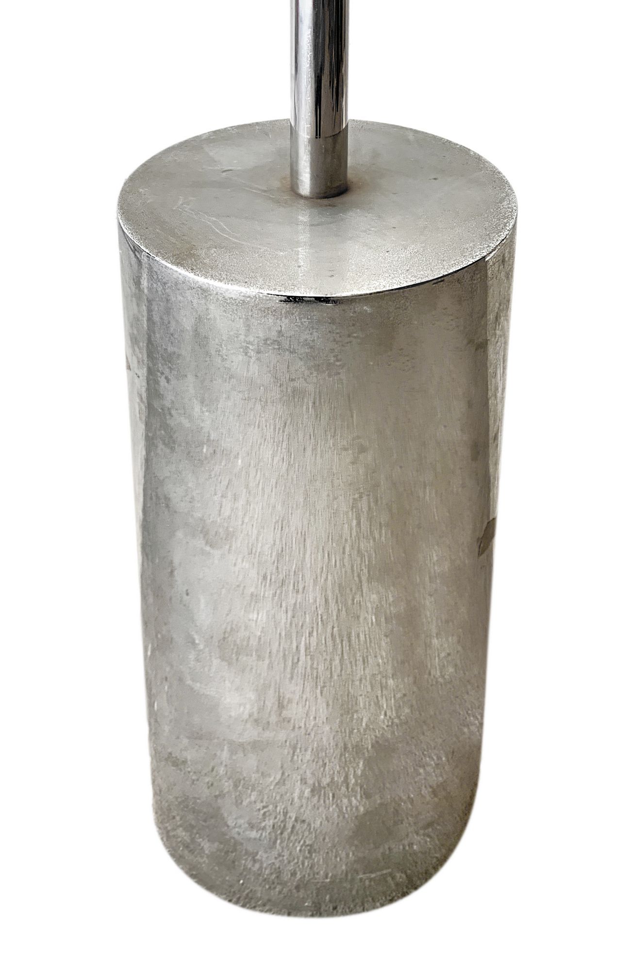 Reggiani, lampada da tavolo in metallo cromato di forma cilindrica. Da rielettrificare, presenza di ossidazioni. Anni 60. Segni di uso, Cm 72x15