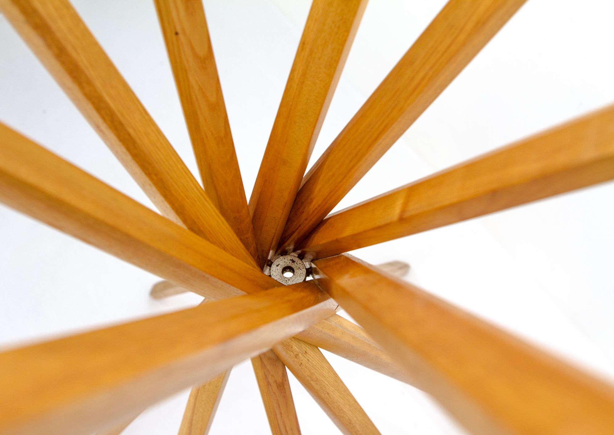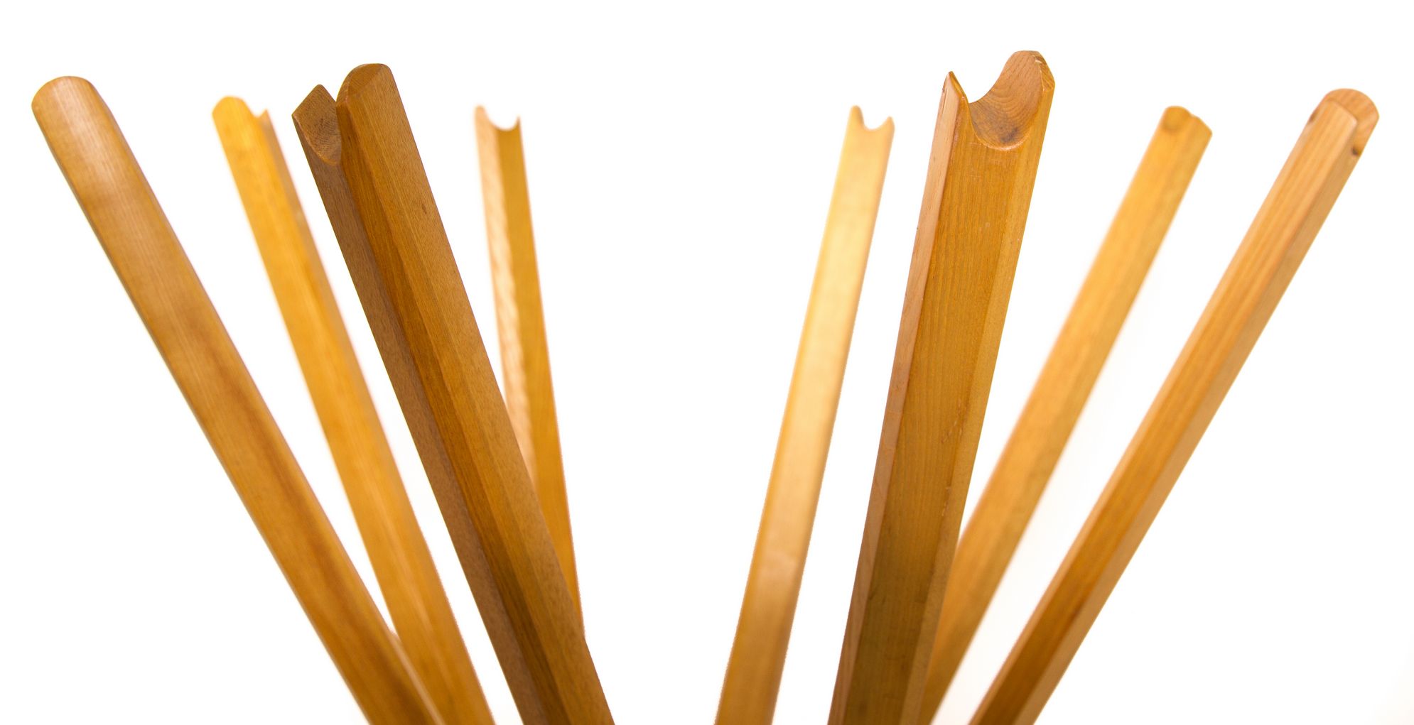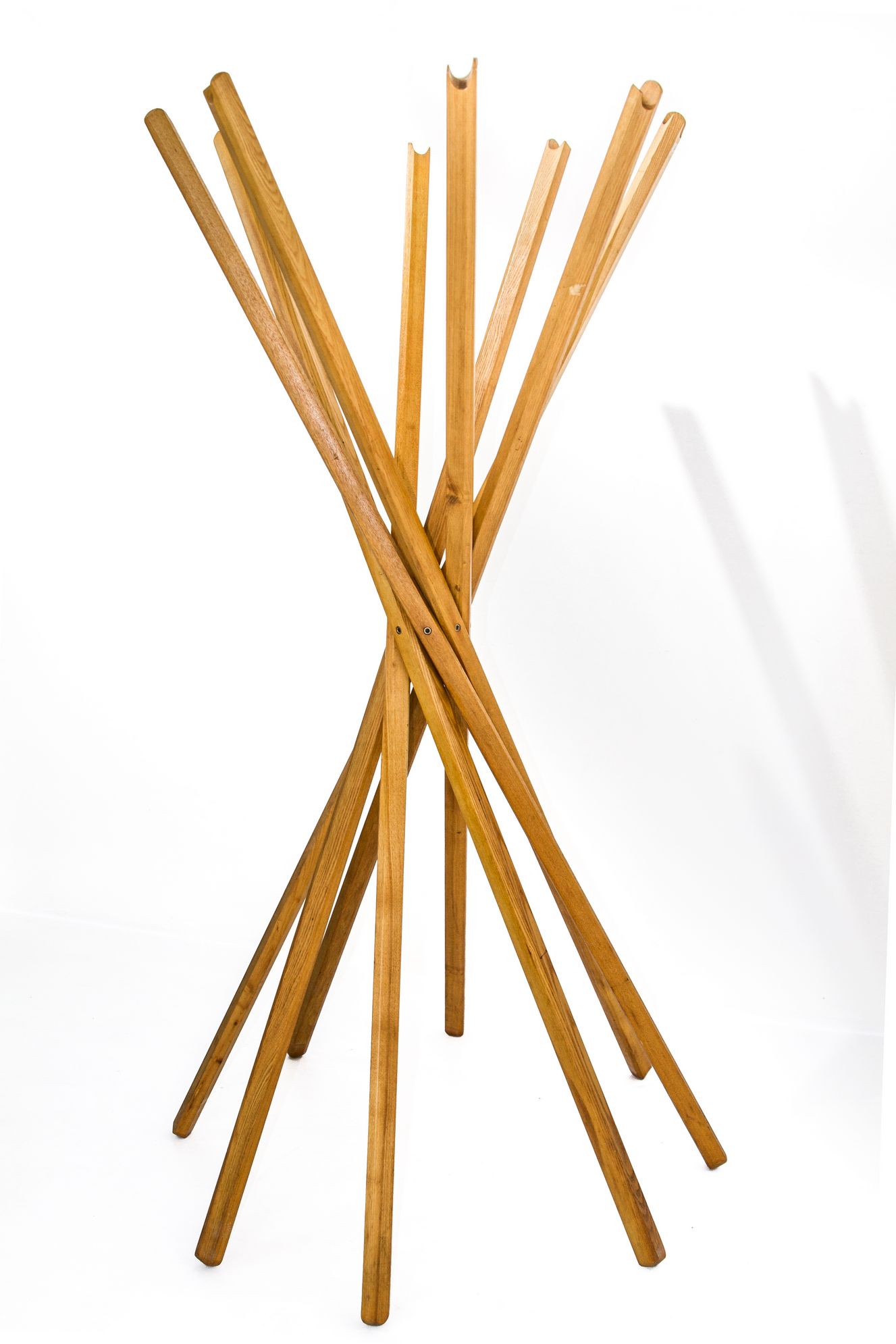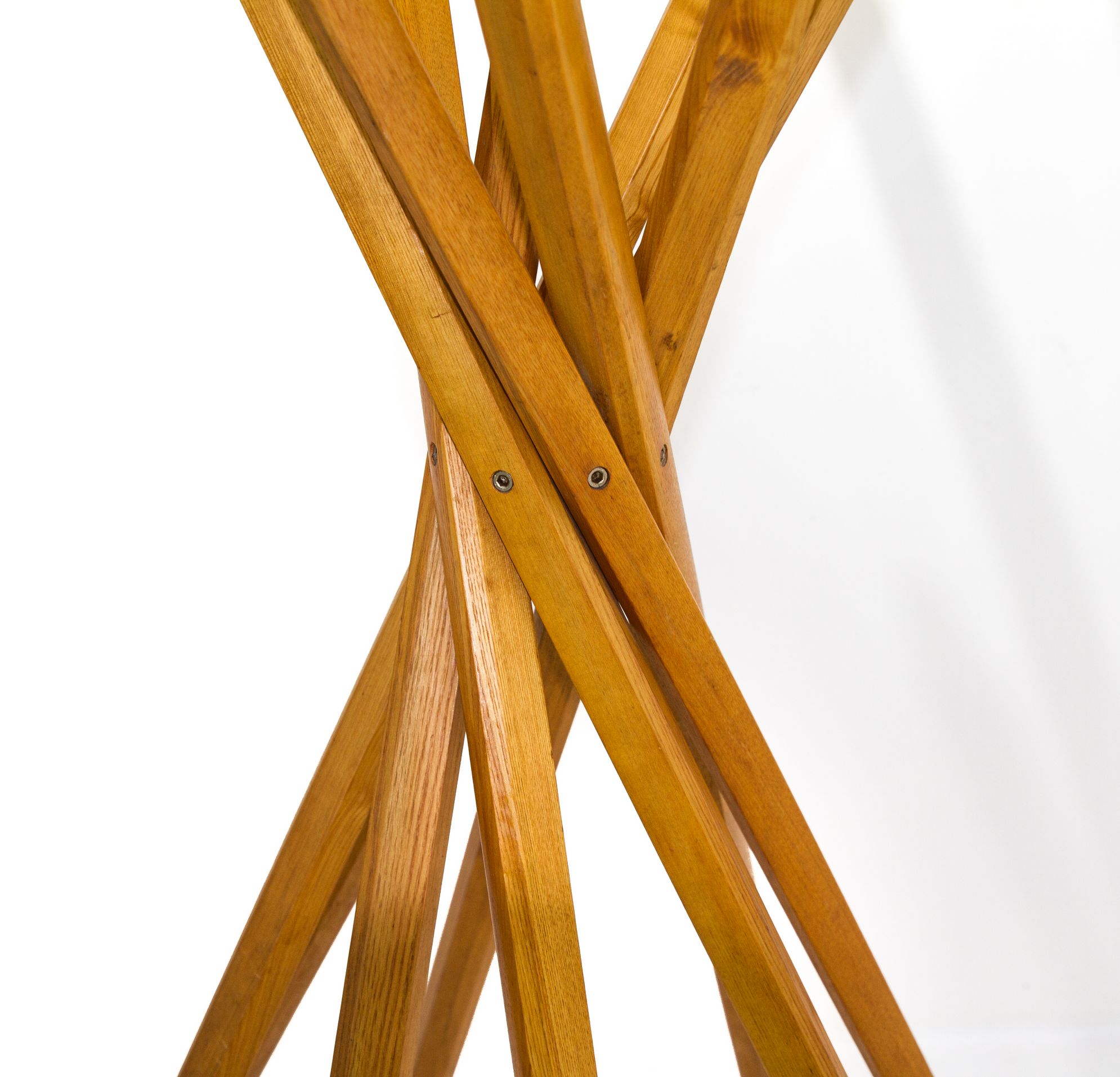 Zanotta, disegno De pas, D'urbino lomazzi, mod. Shanghai, appendiabiti in legno chiaro composto da elementi listellari. Anni 80. H cm 145X65