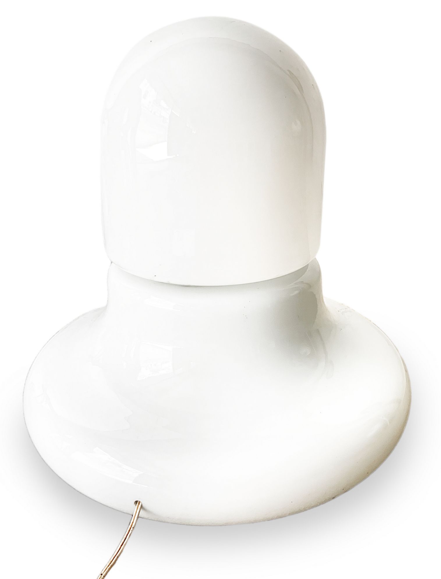 Lumenform, disegno Claudio Salocchi modello Zea. Lampada da terra in vetro bianco incamiciato composta da due elementi da to be re-electrified. Anni 60. Cm 51x53