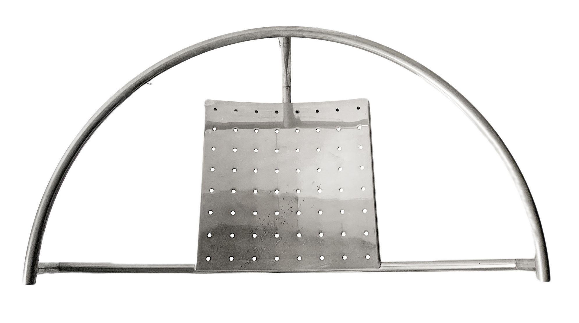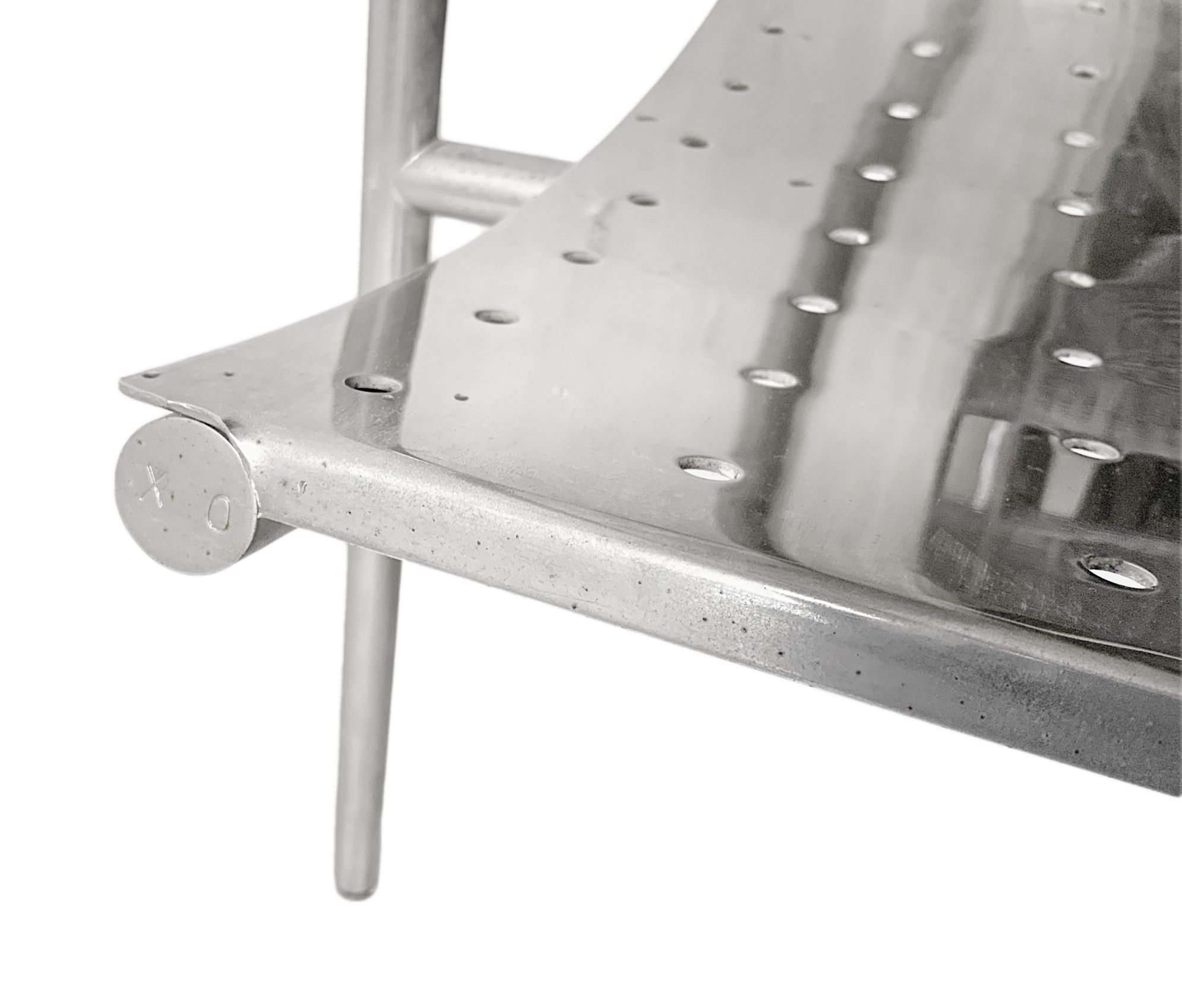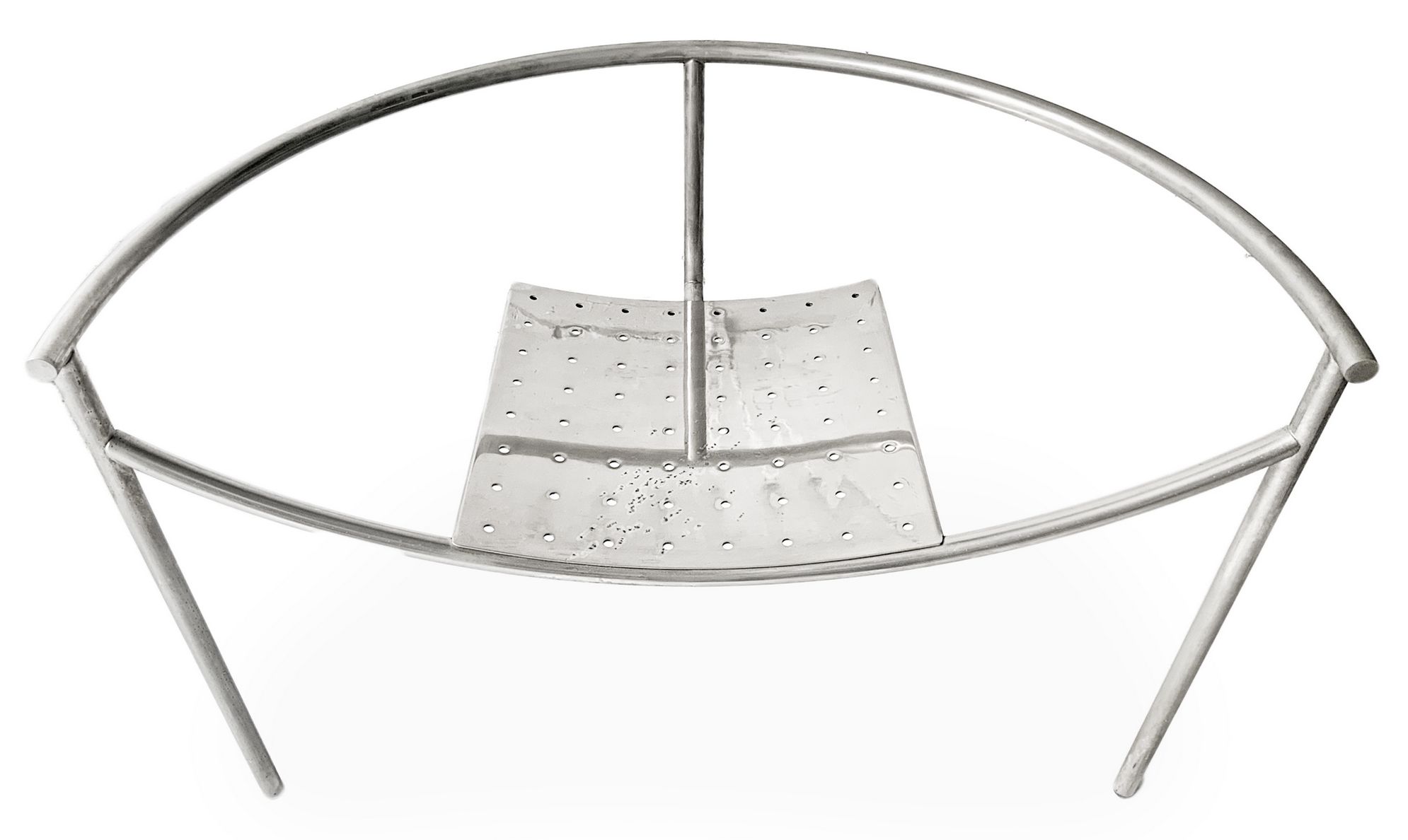 Atelier XO, disegno Philip Stark, modello Dottor Sondenbar, sedia con struttura in tubo metallico cromato seduta in metallo forato. Anni 80. Segni di ossidazione. Cm 64x91x43