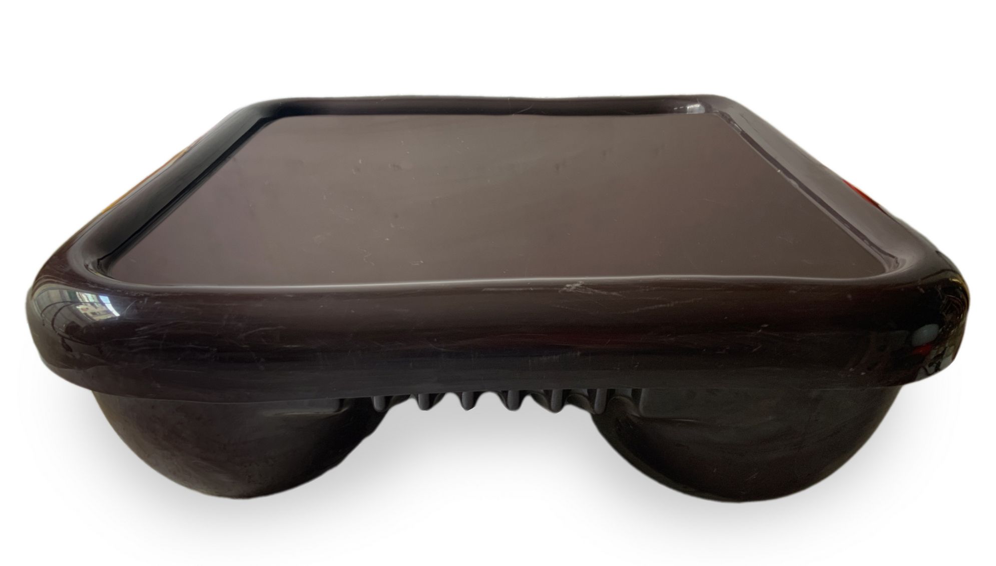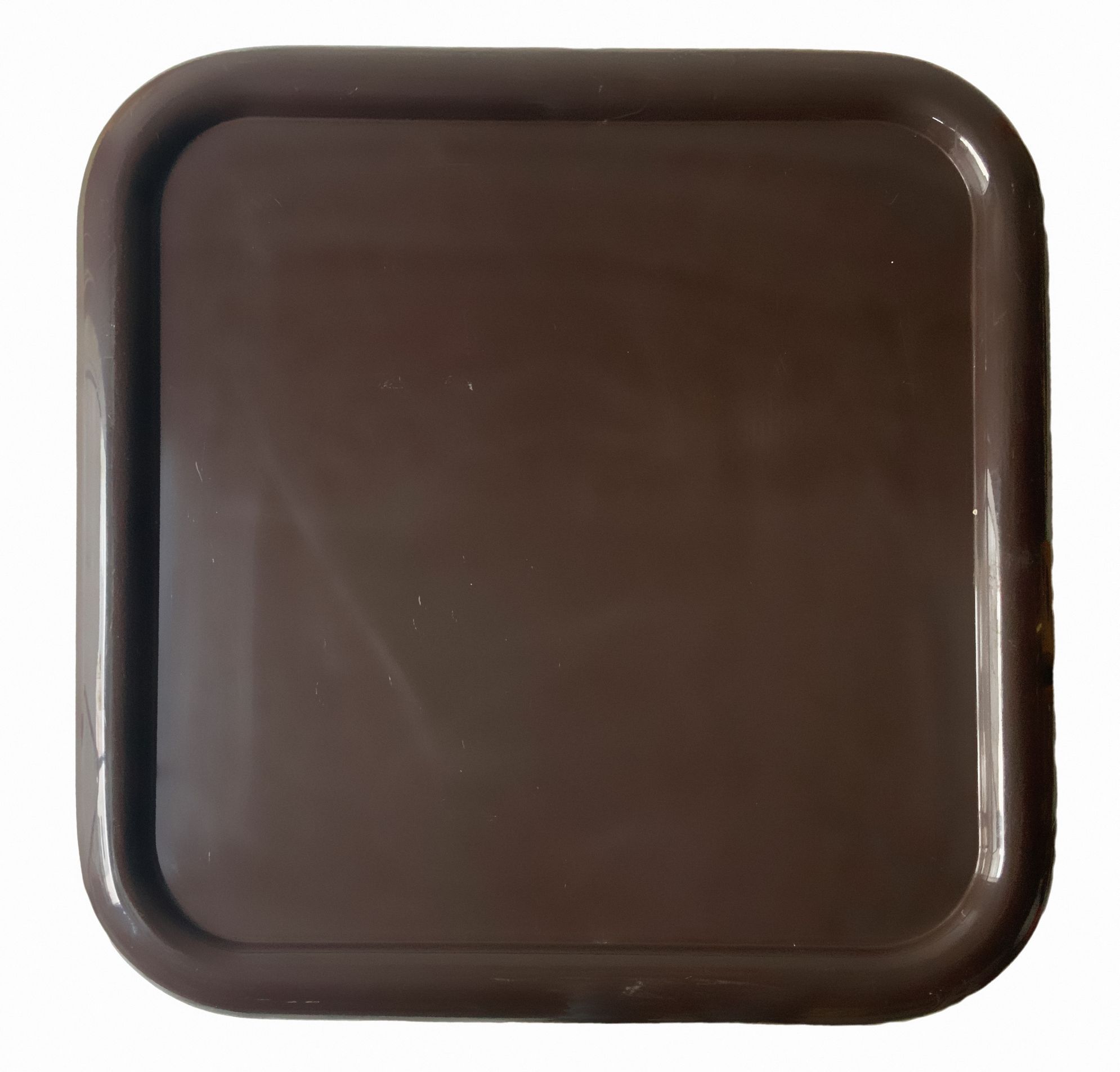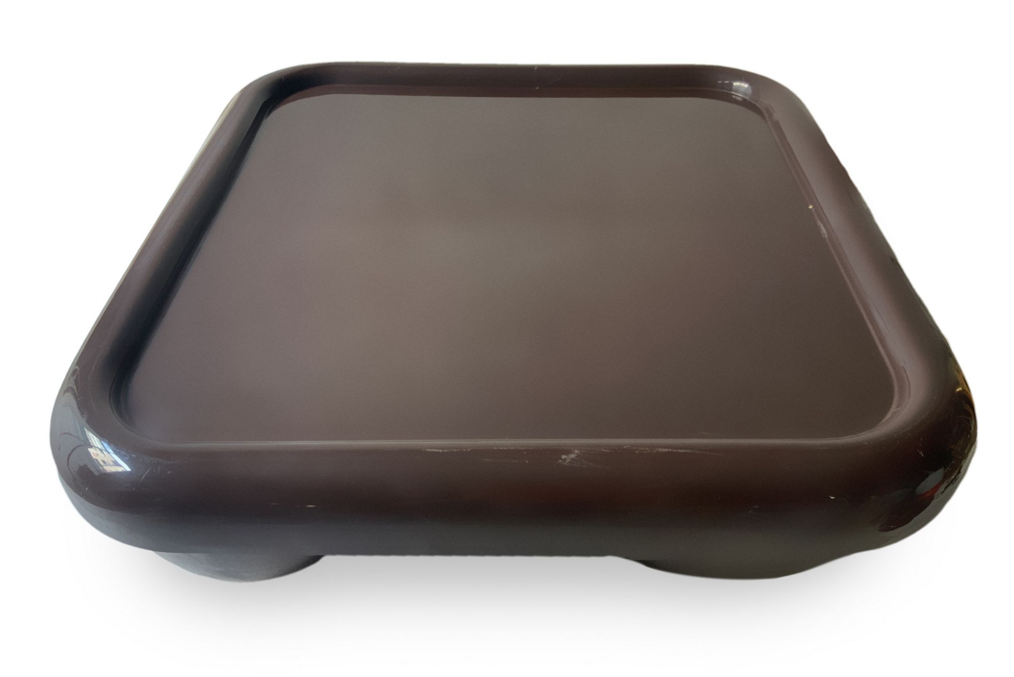 AMform tavolino da salotto gusto space age in plastica stampata ad iniezione colore marrone. Anni 60. Segni di uso lungo il piano. Cm 24 x 76 x 76