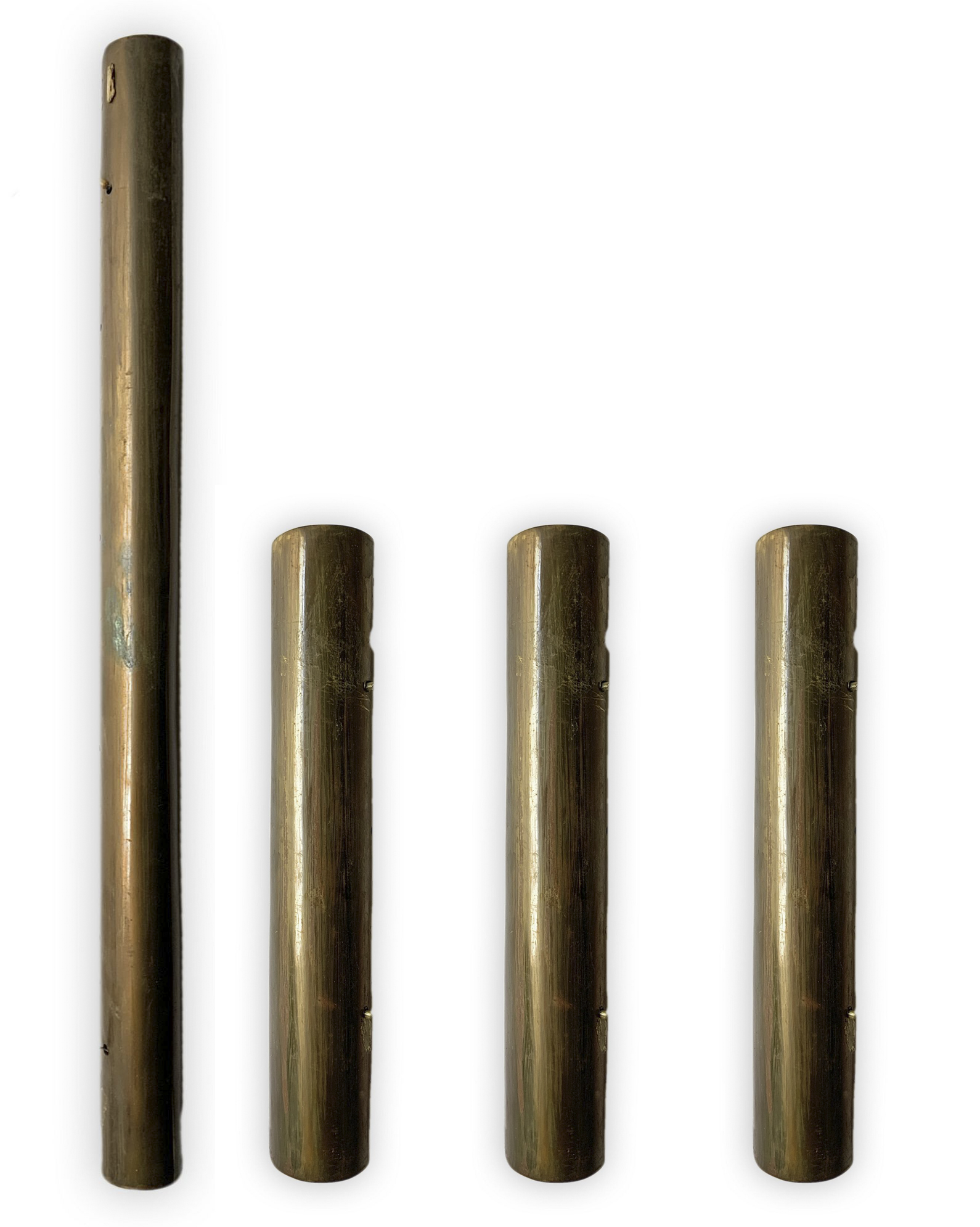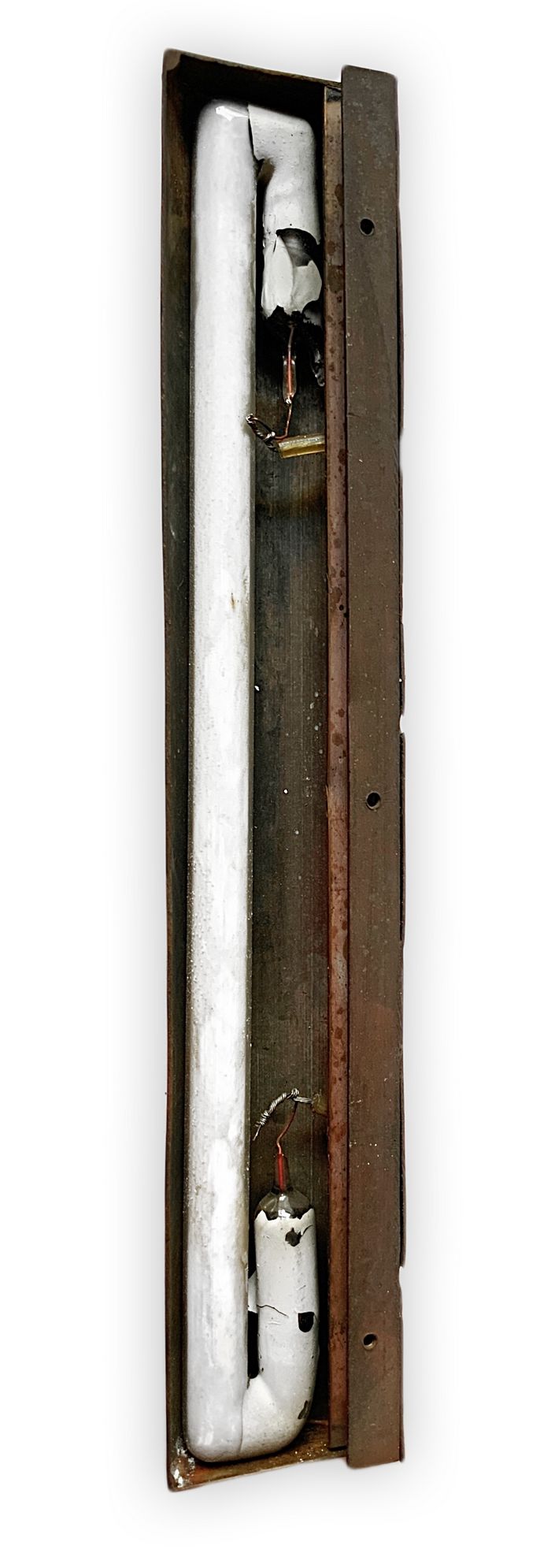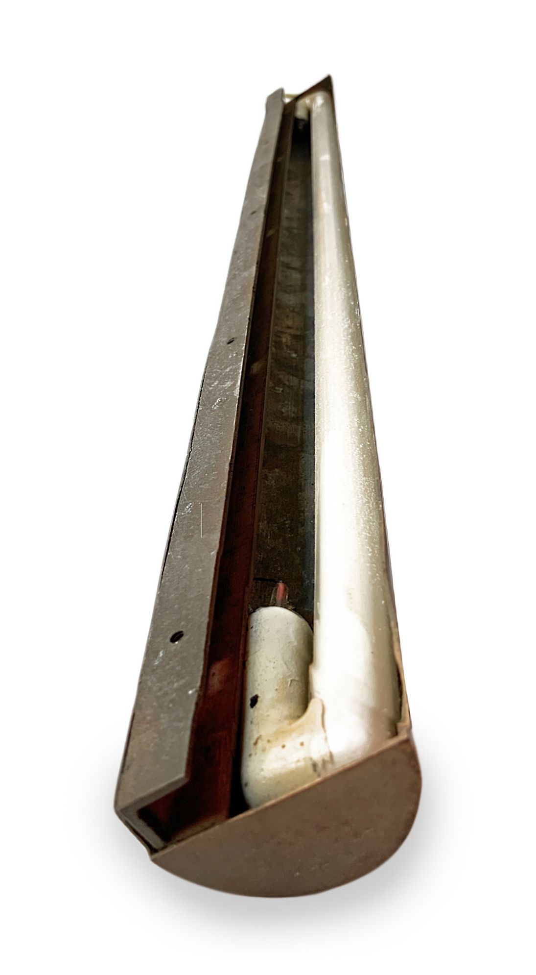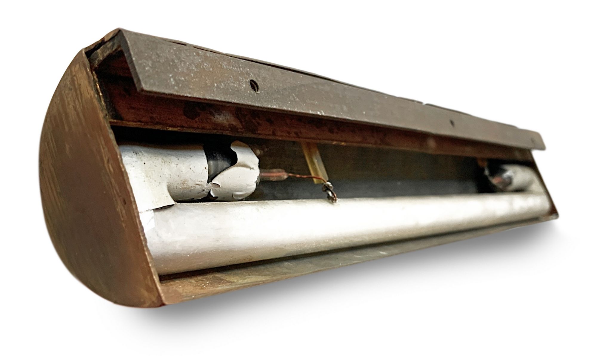 Gruppo di N.4 lampade a parete in ottone, produzione italiana. Illuminazione al neon, tracce di ossido. Anni 40.
