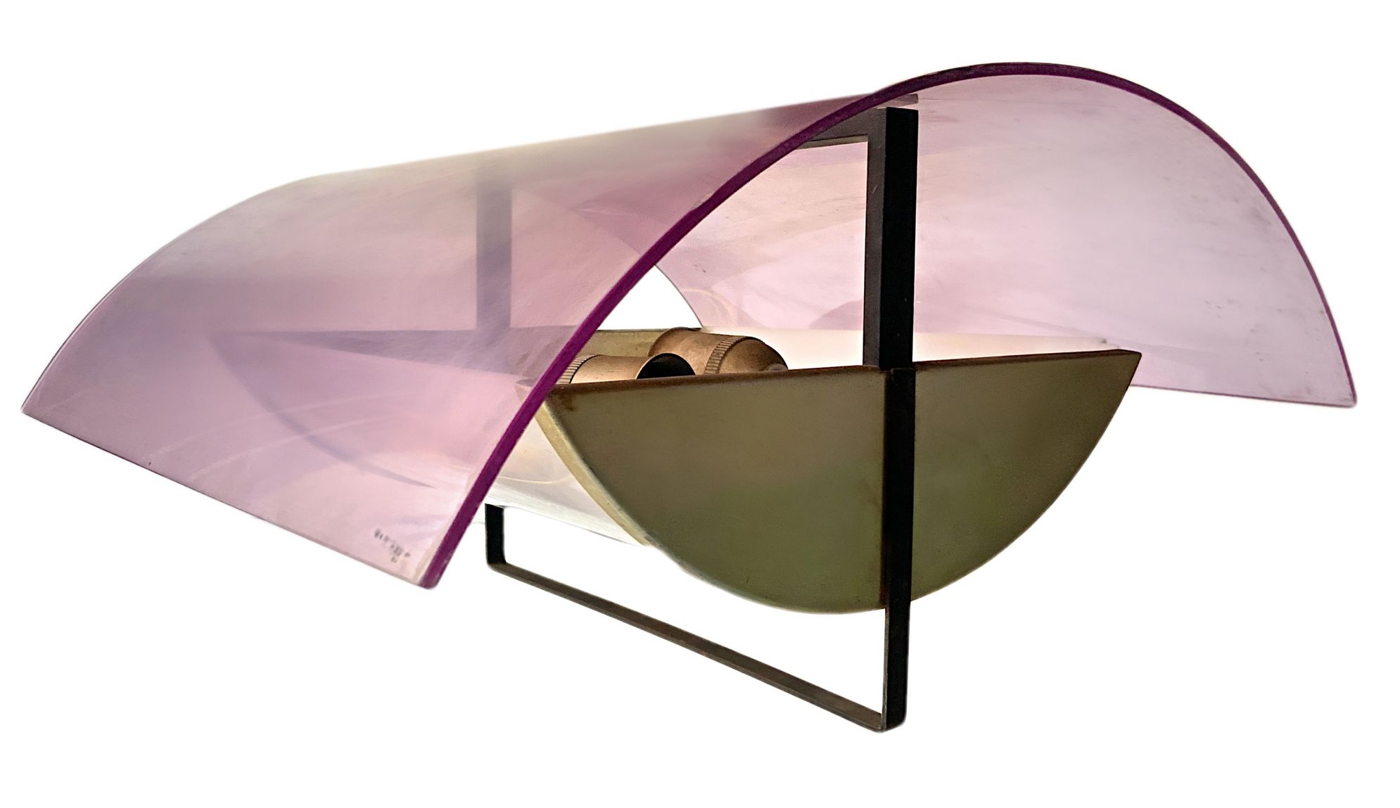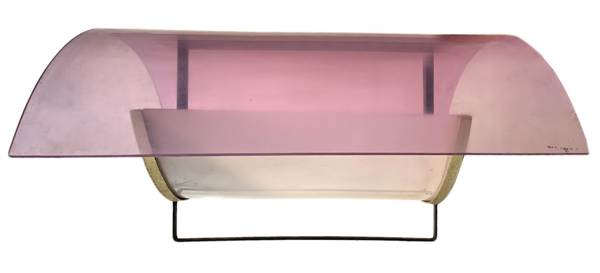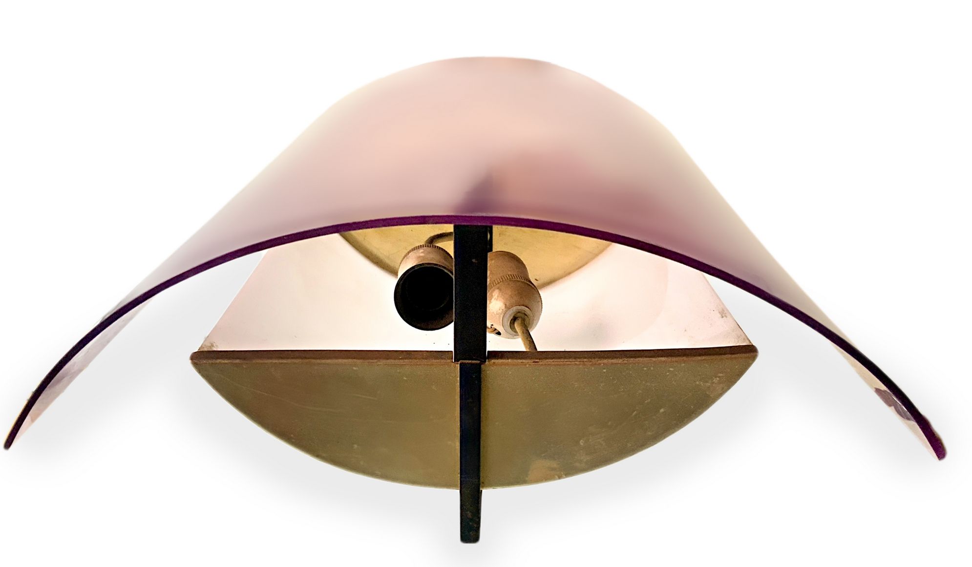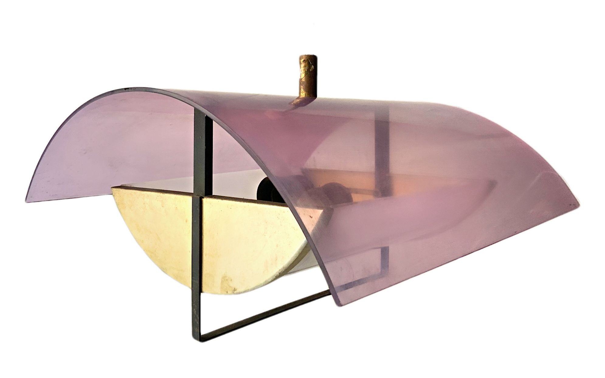 Stilux Milano, lampada a sospensione, struttura in ottone laccato nero diffusore e controdiffusore in Perspex, uno rosa trasparente l' altro opalescente bianco. Anni 60 cm 40 x 40