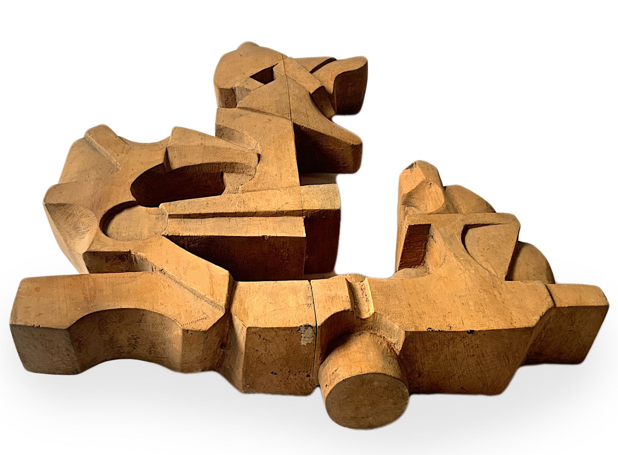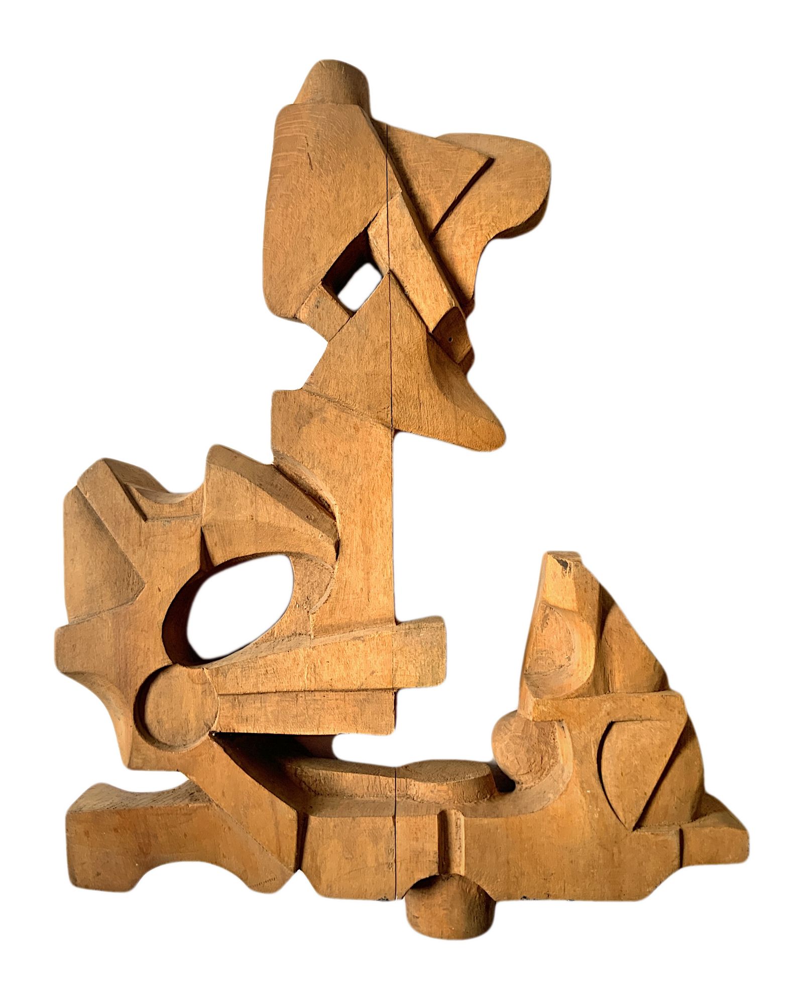Scultura di gusto informale in legno intagliato, produzione italiana, attribuibile a Nerone Patuzzi. Anni 50.