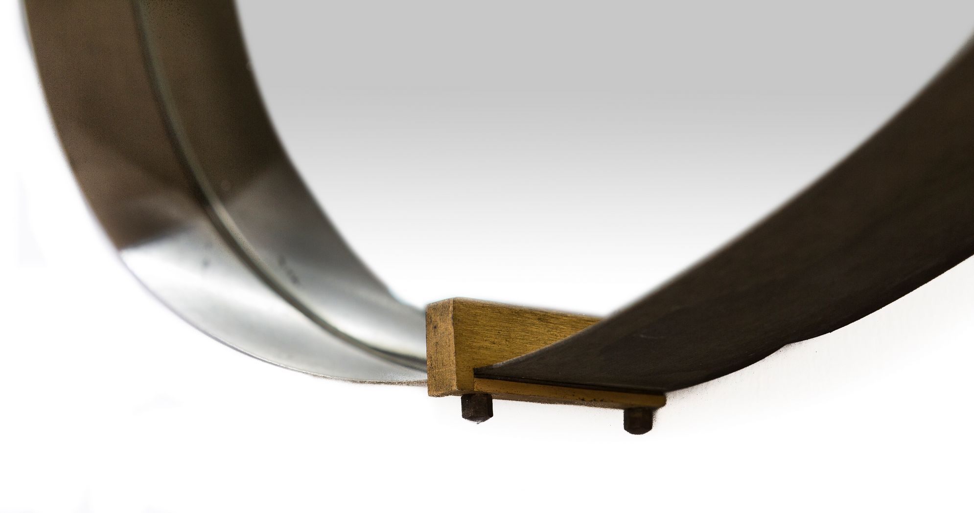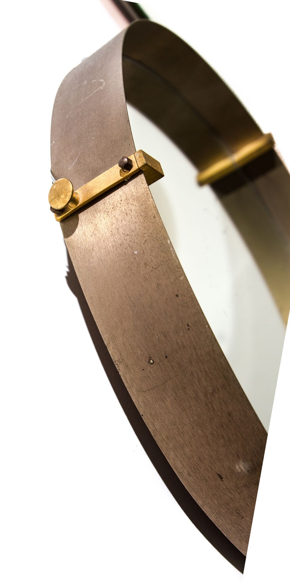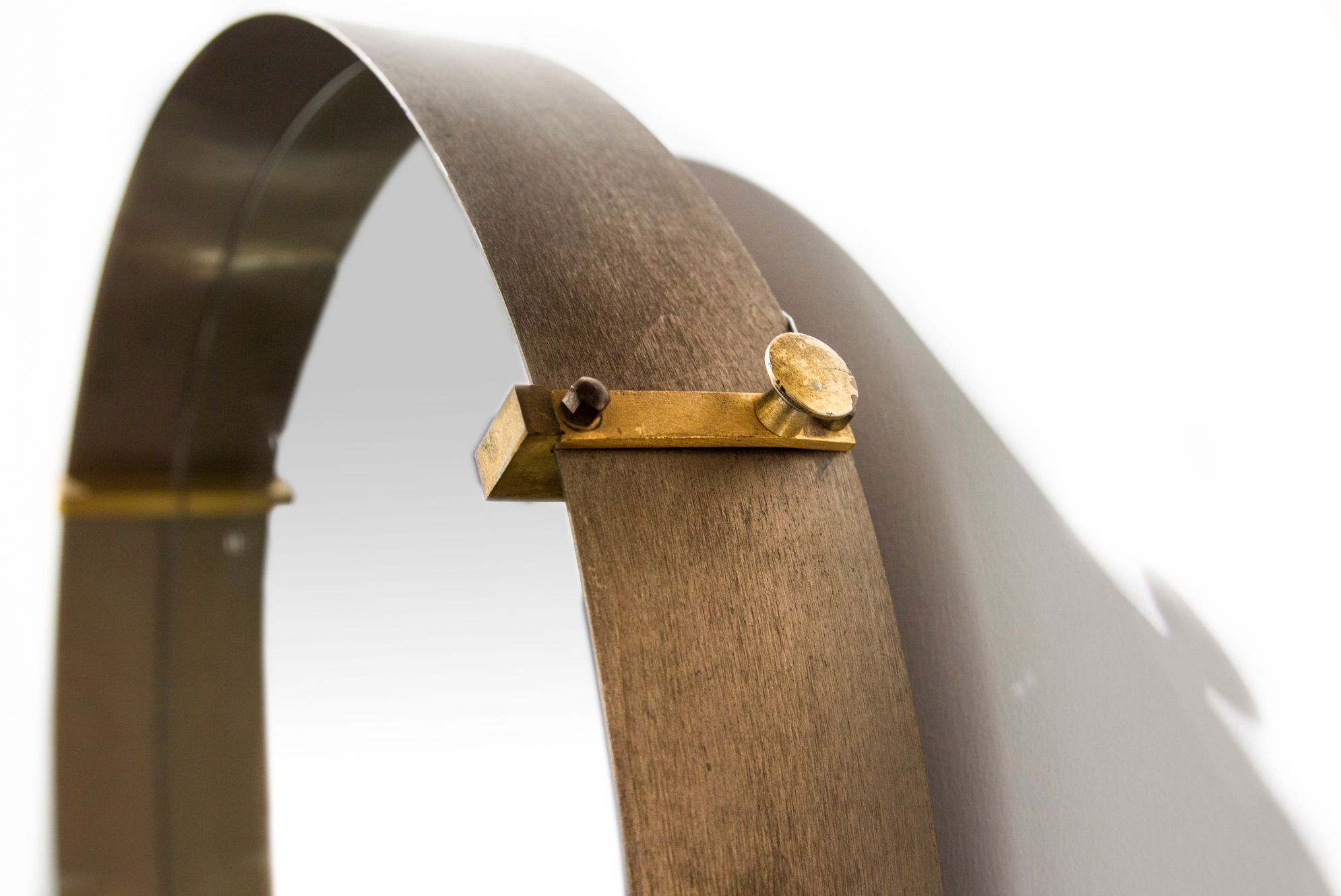 Specchiera in acciaio spazzolato ed ottone, anni '50. Diametro 45, cm271