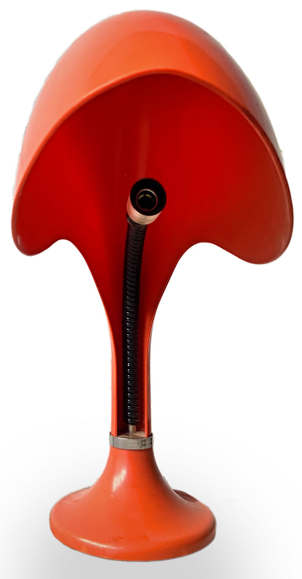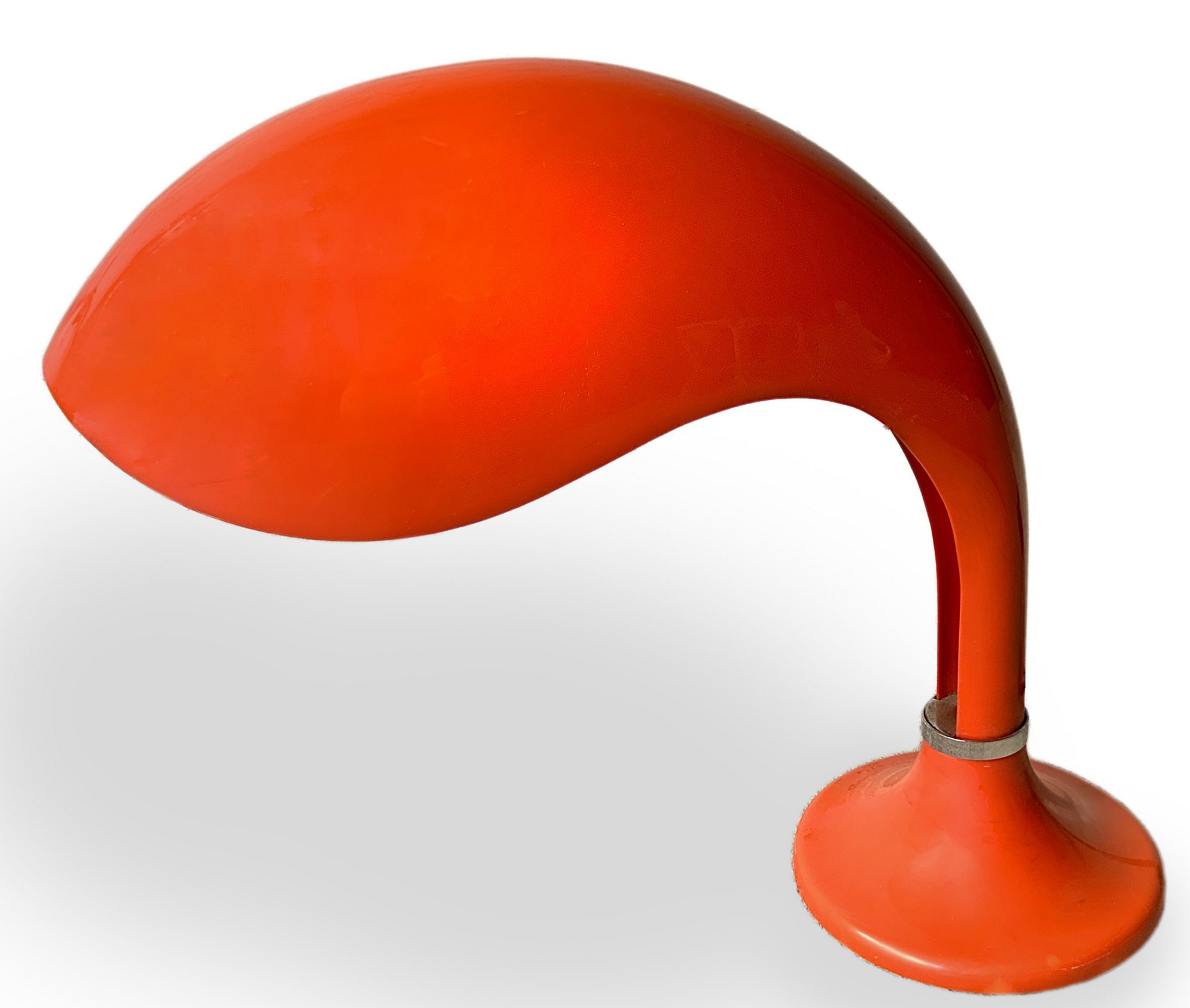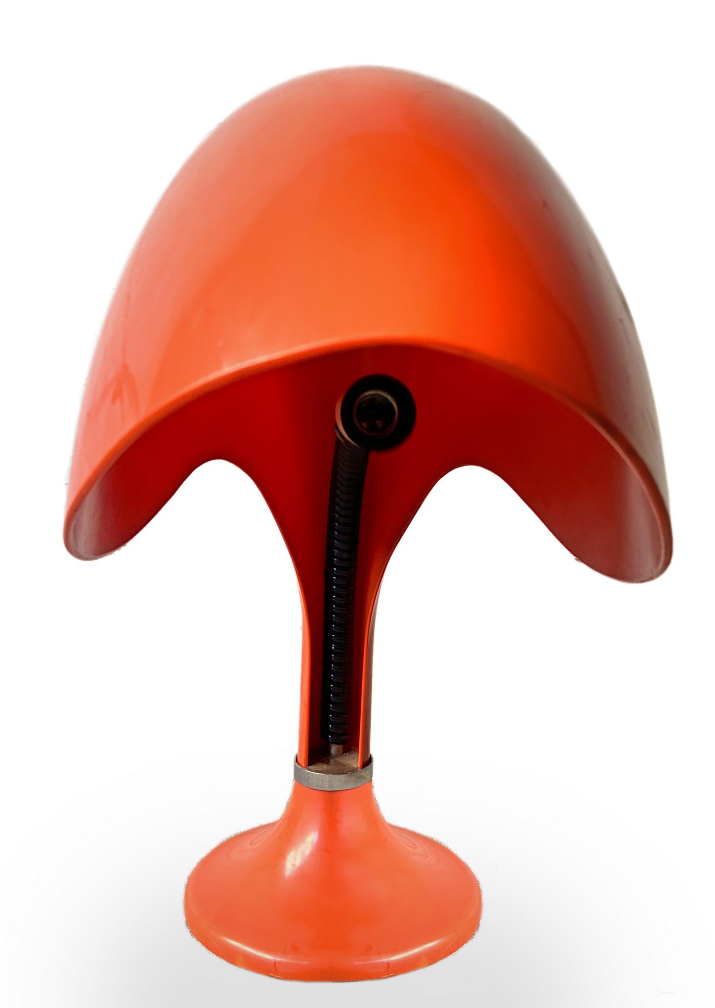 Lampada in ABS stampato colore arancione attribuibile a Claudio Salocchi, filatura alla base. Anni 60. Cm 40 x15x45