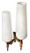 Applique, produzione italiana. Struttura in ottone, diffusore in vetro opalino bianco, dettagli in bambù, Anni 50. Cm 35x10x10. Segni di uso.
