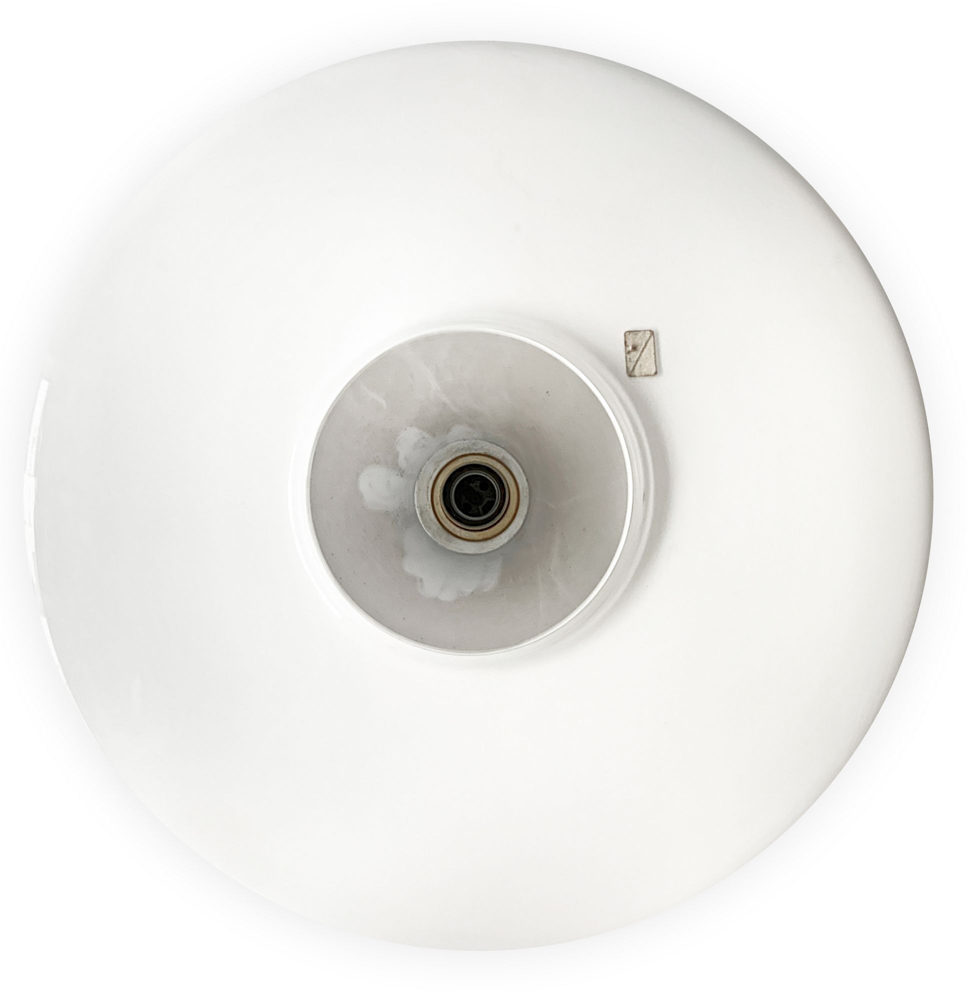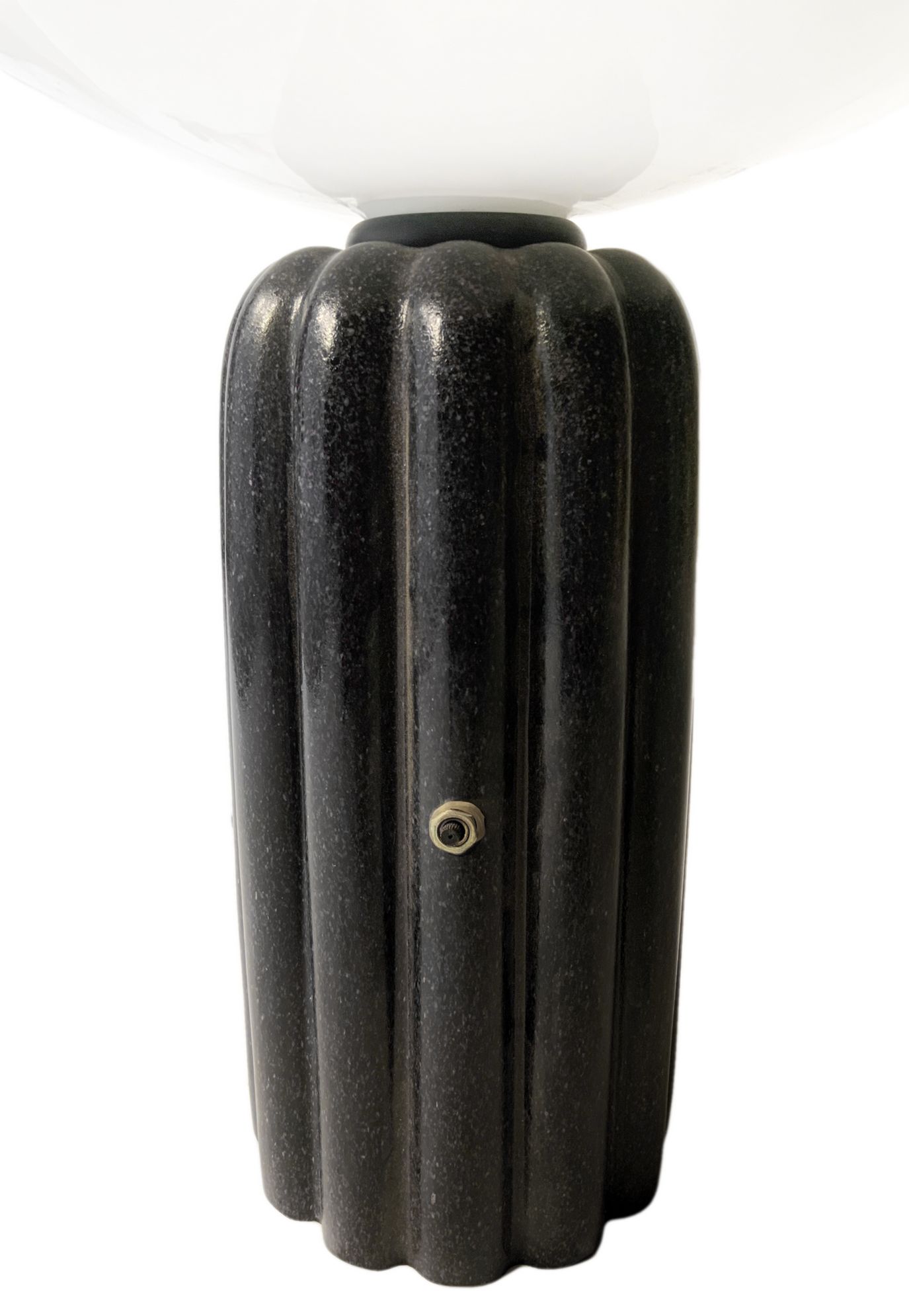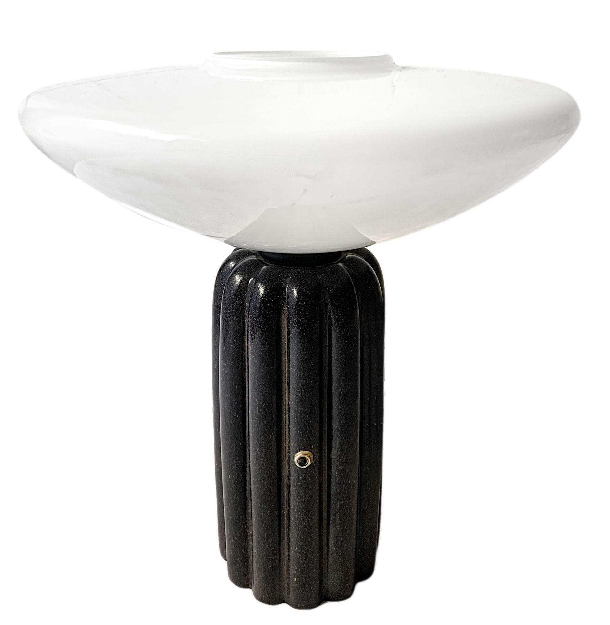 Barovier e Toso, lampada da tavolo in vetro con diffusore in vetro incamiciato di forma circolare e base in vetro effetto porfido, da to be re-electrified. Anni 70. Cm 53x48d