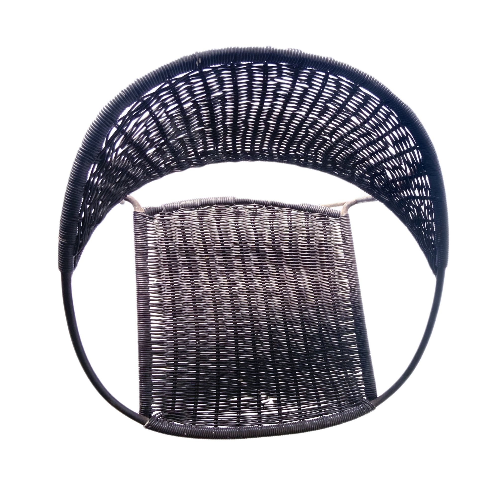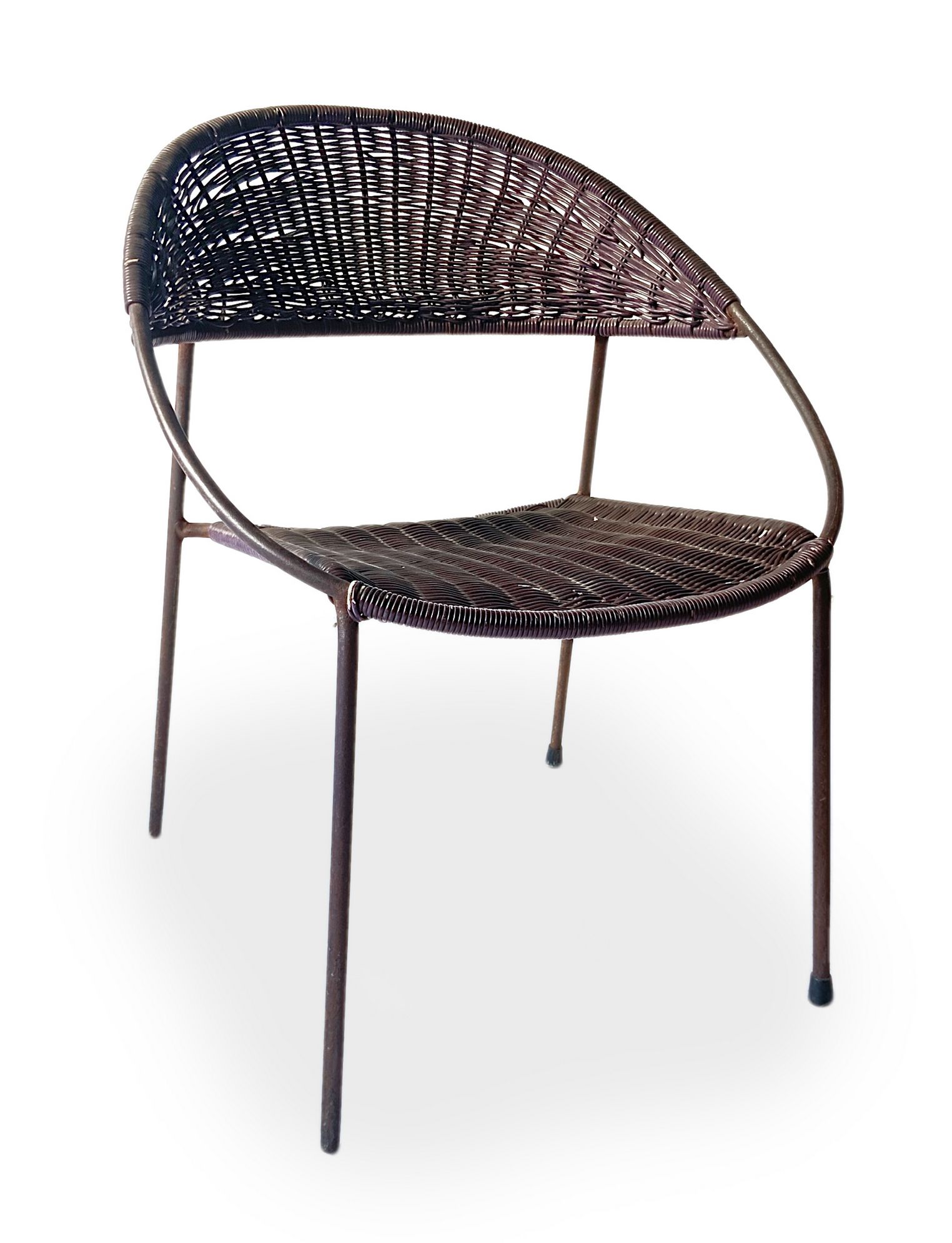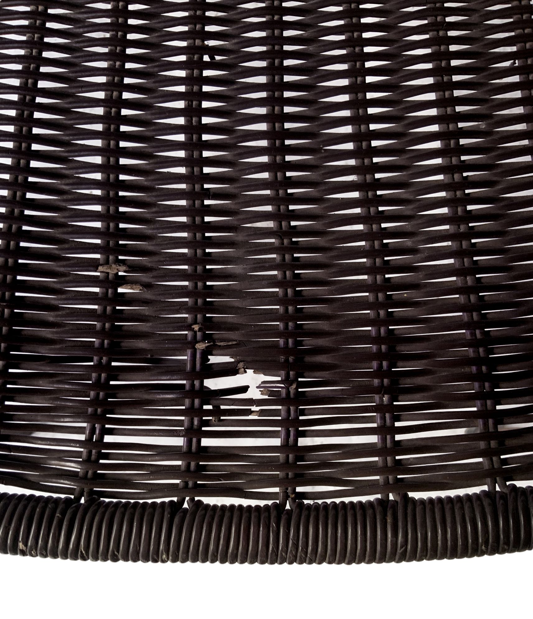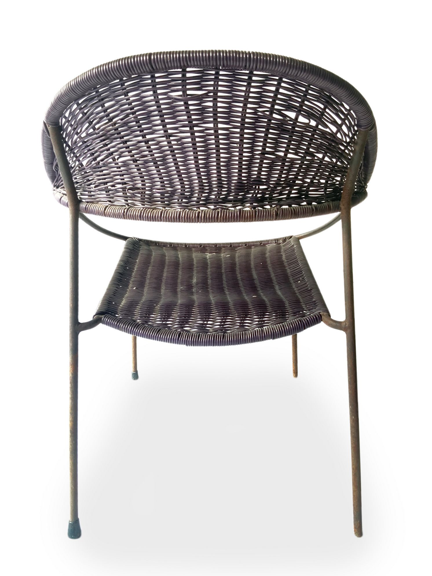 Rima, disegno Gastone Rinaldi, modello DU41 coppia di sedie struttura in tondino metallico laccato nero. Seduta ottenuta mediante intreccio di filo plastico. Anni 50. Segni di uso, ossidazioni. Cm 80 x 57x55