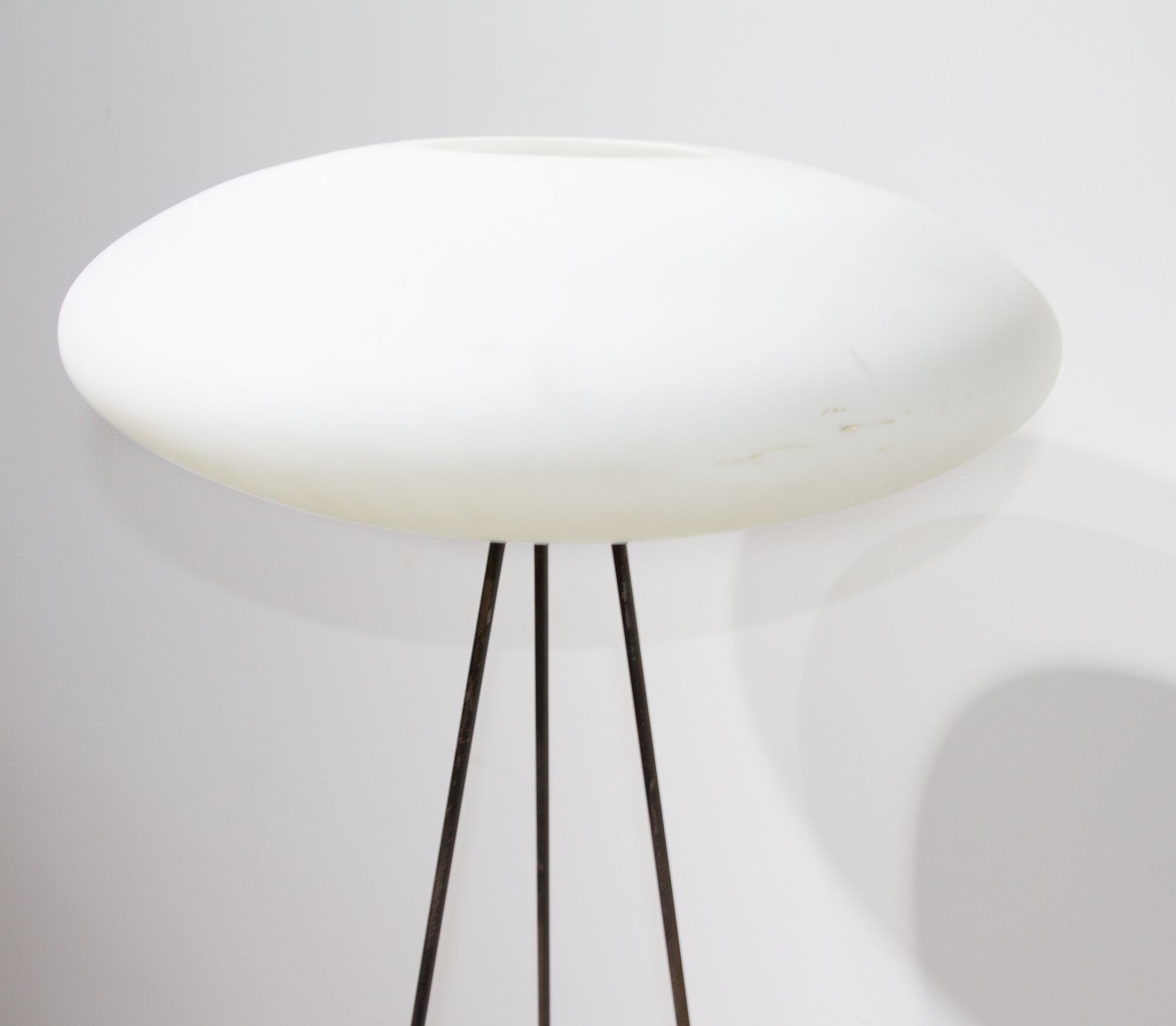 Stilnovo, lampada da terra, anni ’50. Metallo laccato ottone e vetro con lavorazione triplex opal. H cm 110x35
