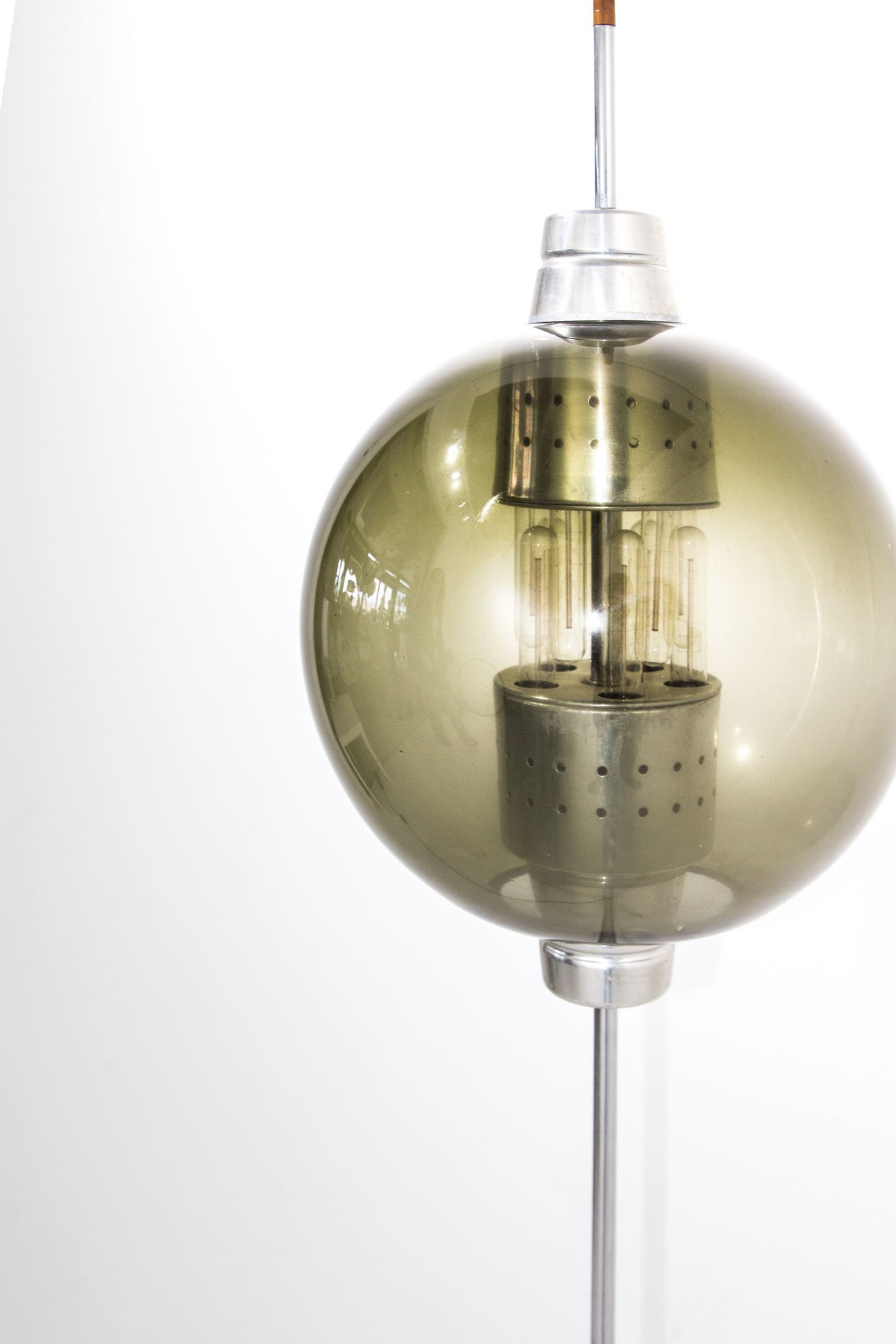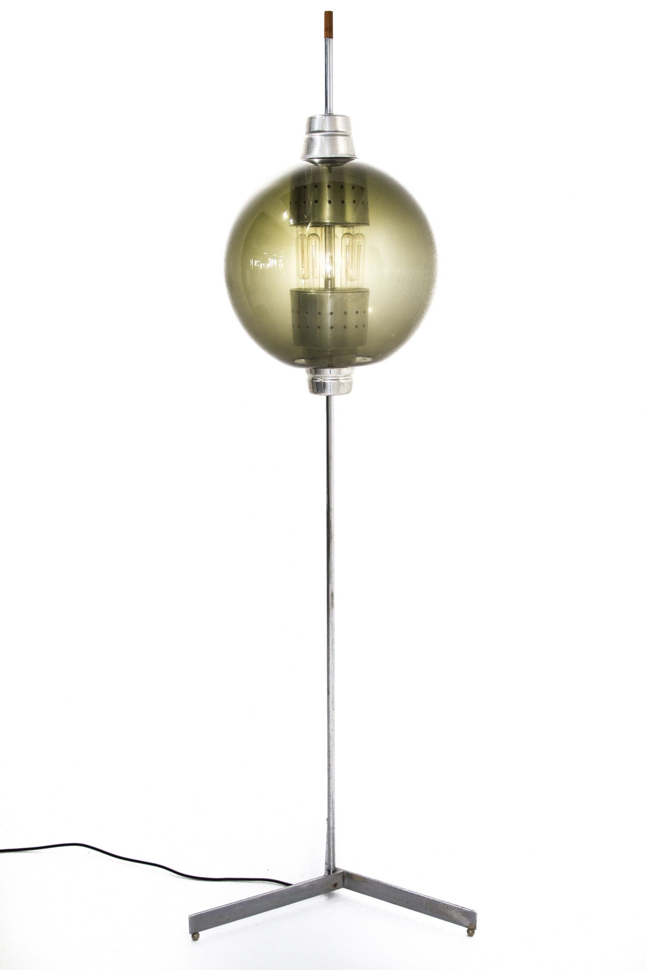 Piantana in ottone cromato, diffusore in vetro fumè, O-Luce attribuito, anni...