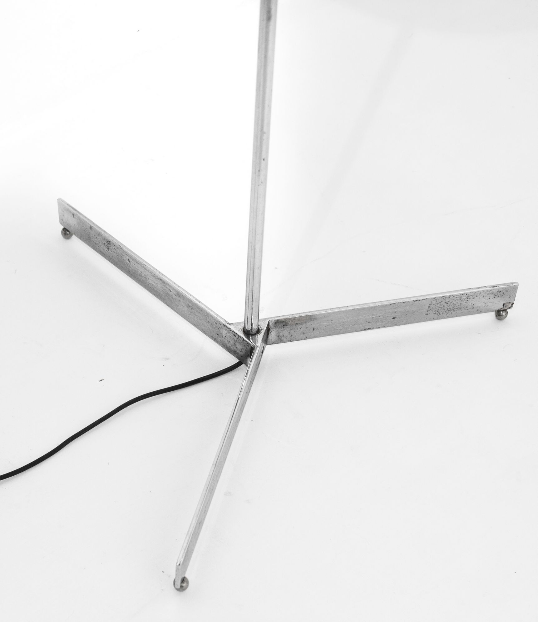 Piantana in ottone cromato, diffusore in vetro fumè, O-Luce attribuito, anni '50. H cm 130x35