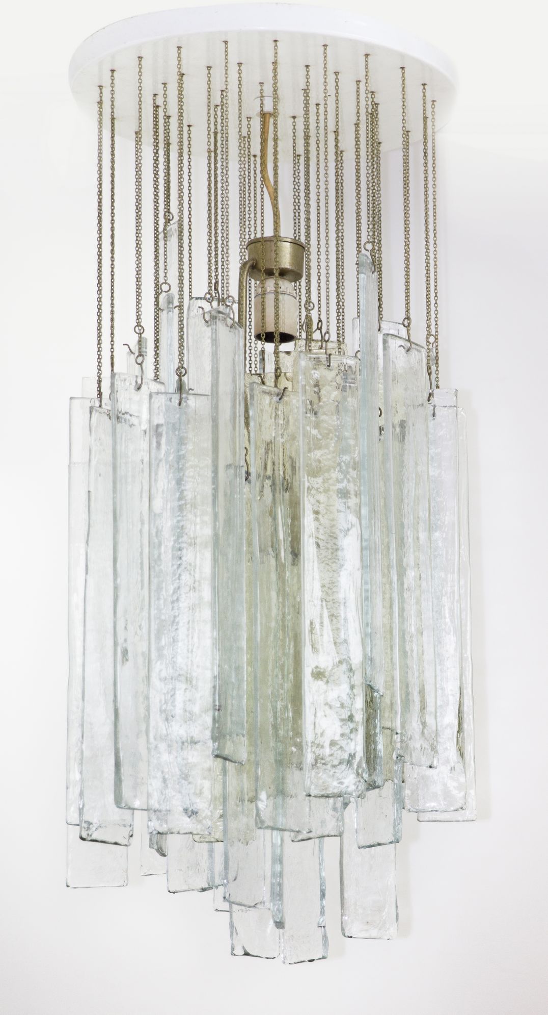 Mazzega, lampadario in vetro e catena ottone, anni '60.