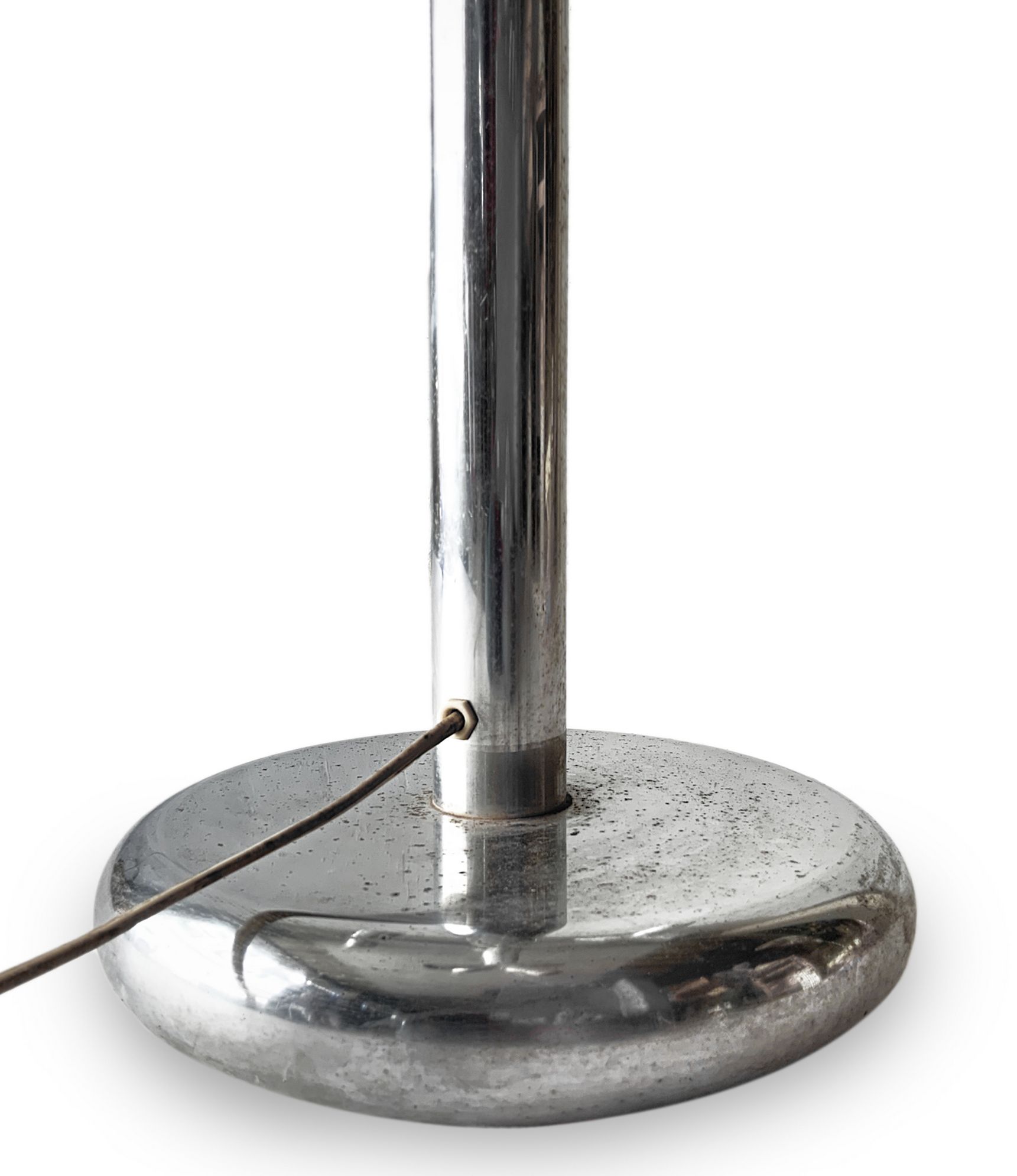 Produzione Swiss Design, disegno Trix Hausmann lampada da tavolo in alluminio cromato, base in ghisa laccata. Anni 60. Cm 60 x 50d