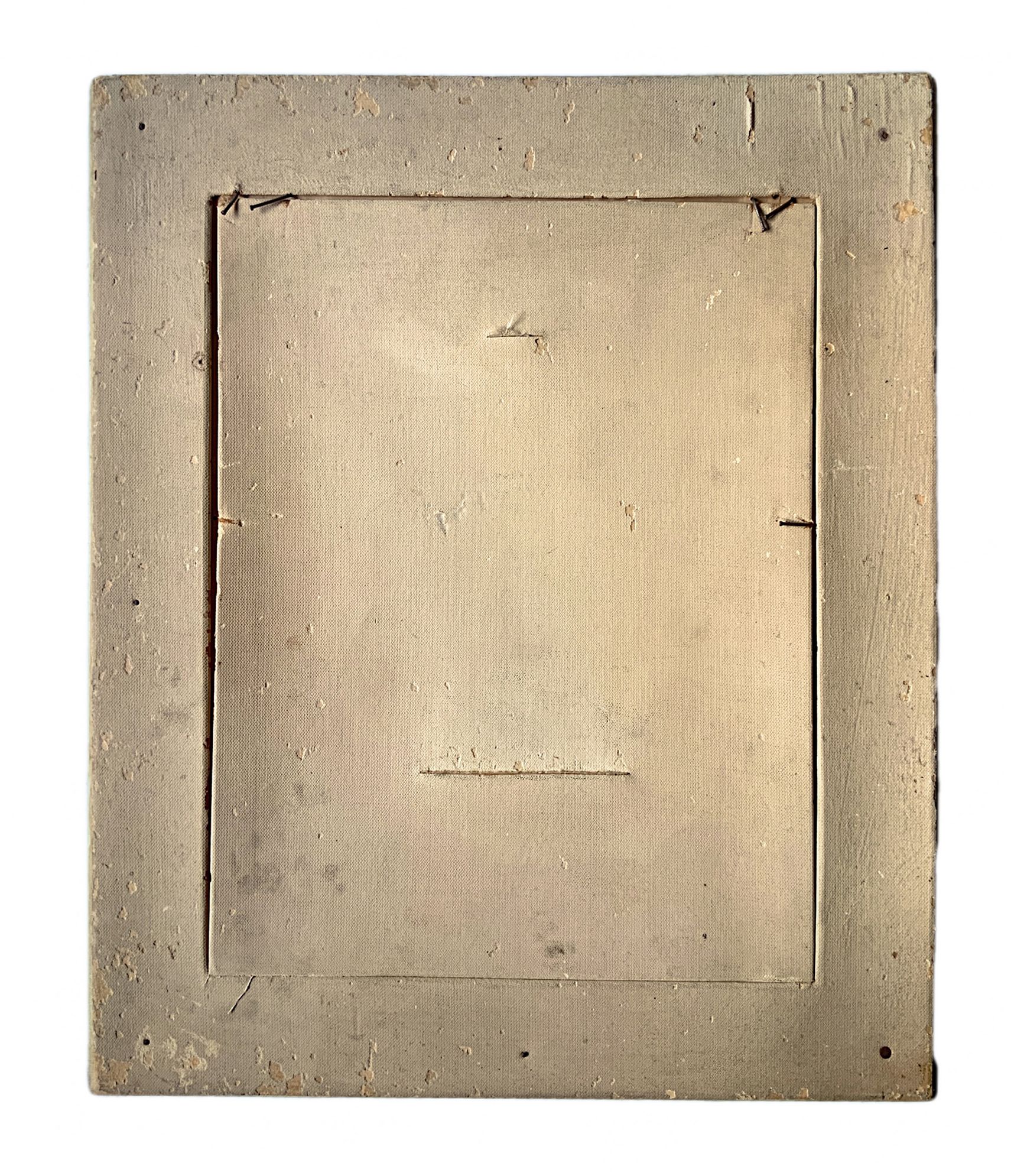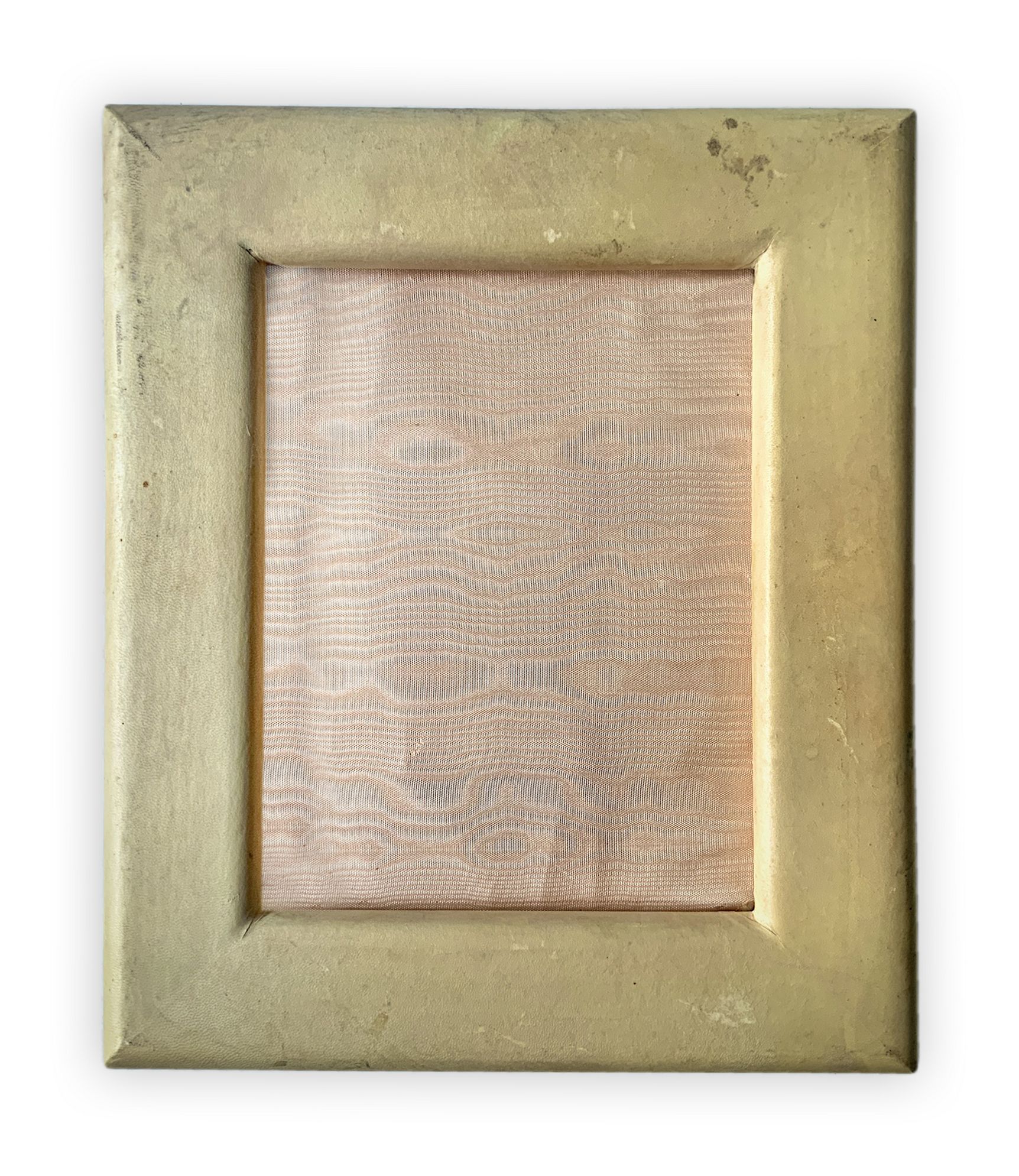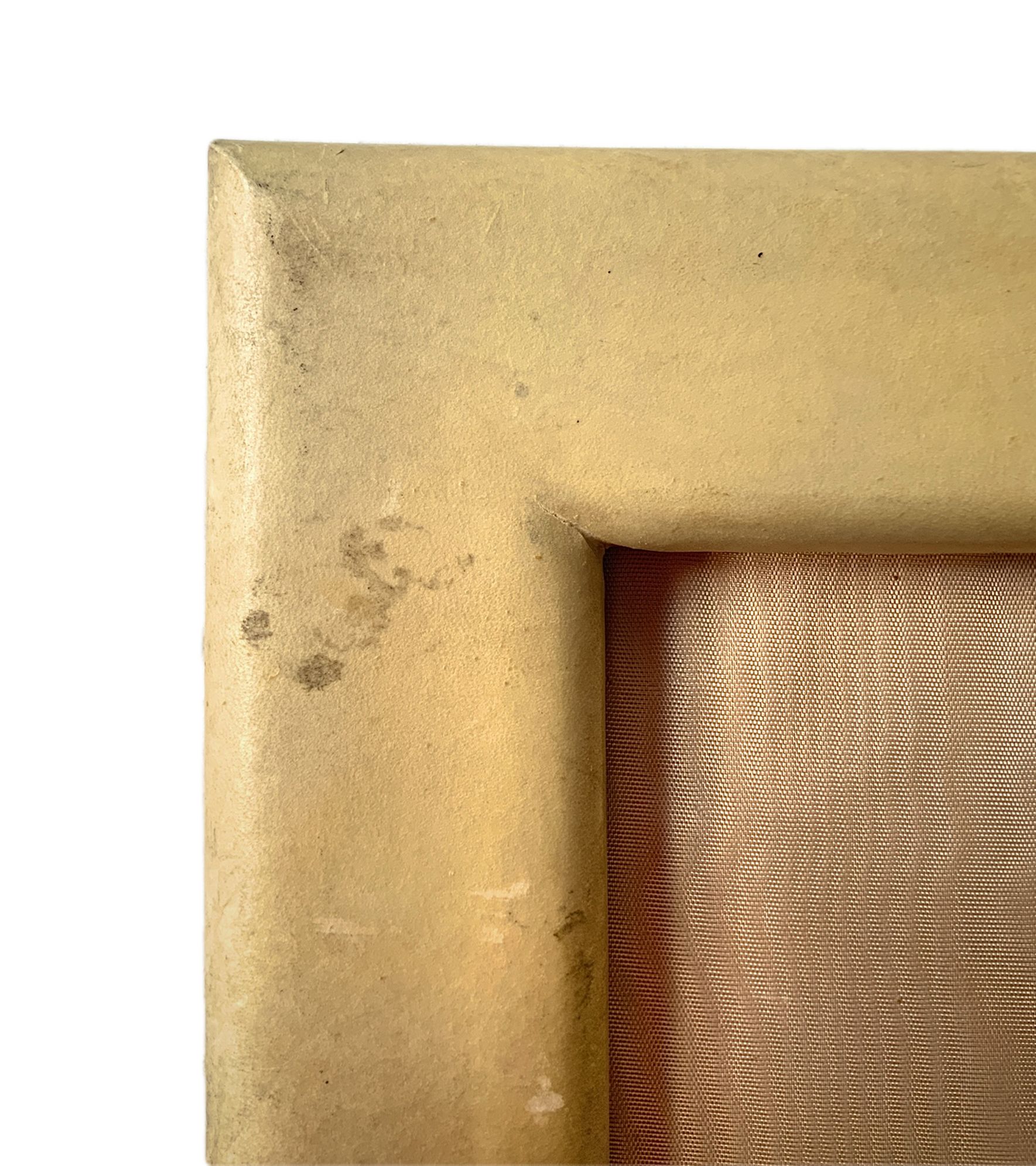 Cornice in legno rivestito di pergamena nei toni del beige, produzione italiana. Anni 30. Cm. Segni di uso, mancanze.