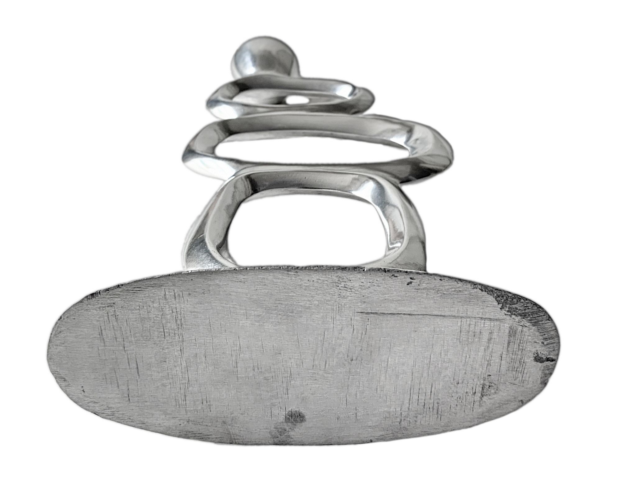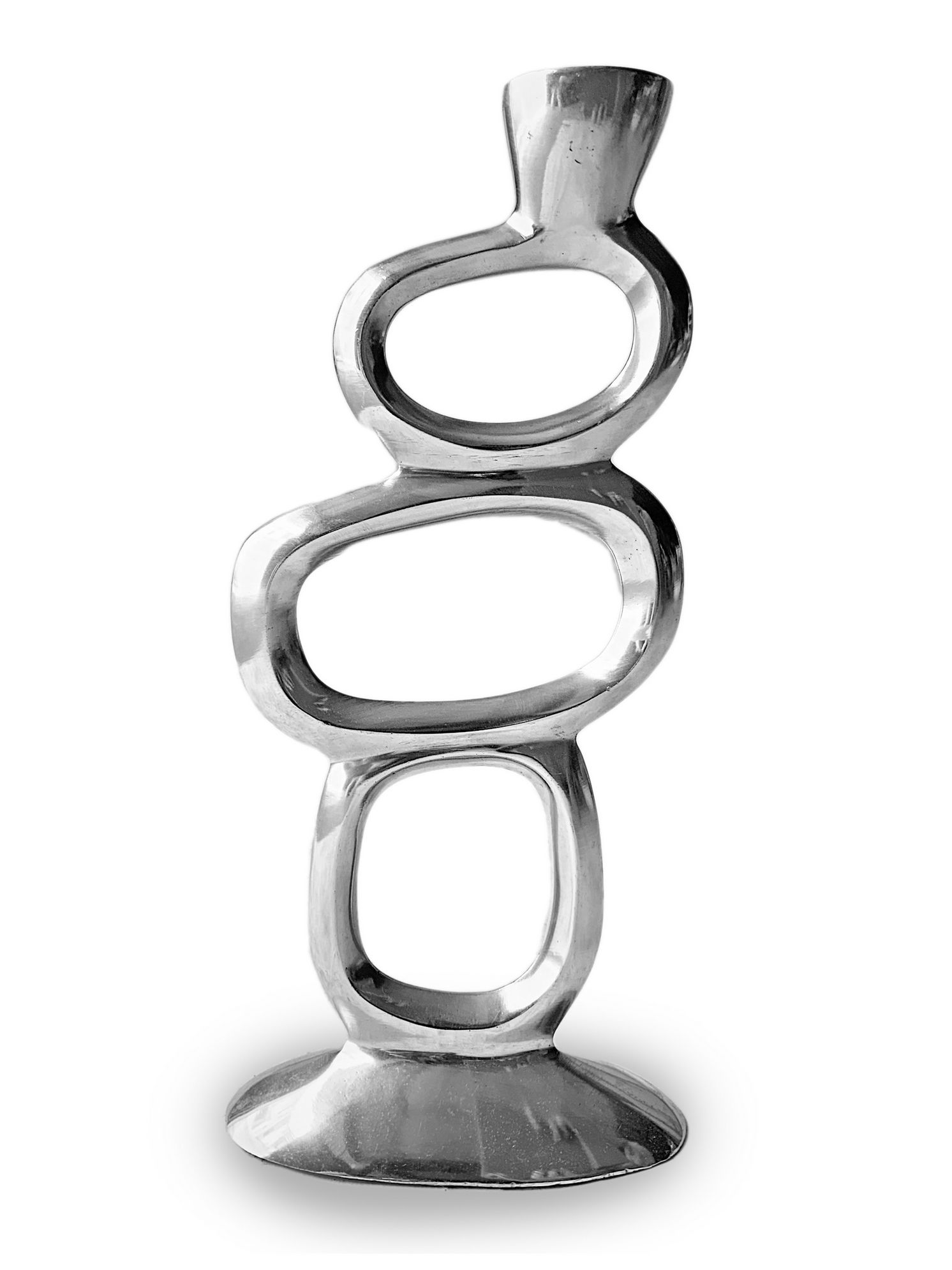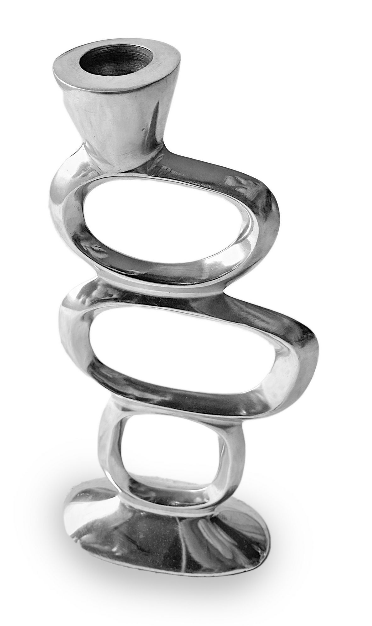 Produzione italiana, reggicandela in metallo cromato di gusto informale. Anni 70. H 25 cm. Segni di uso.