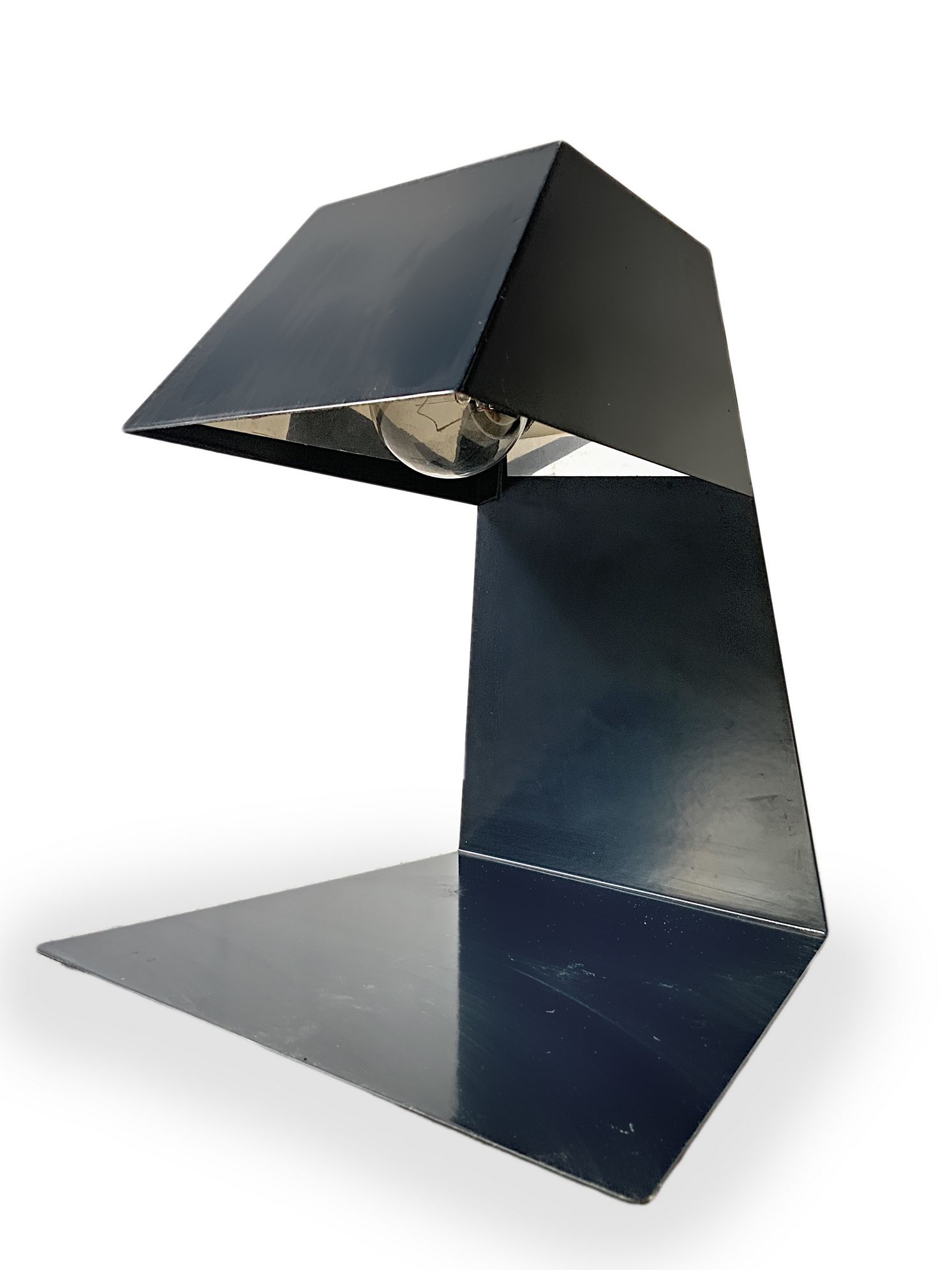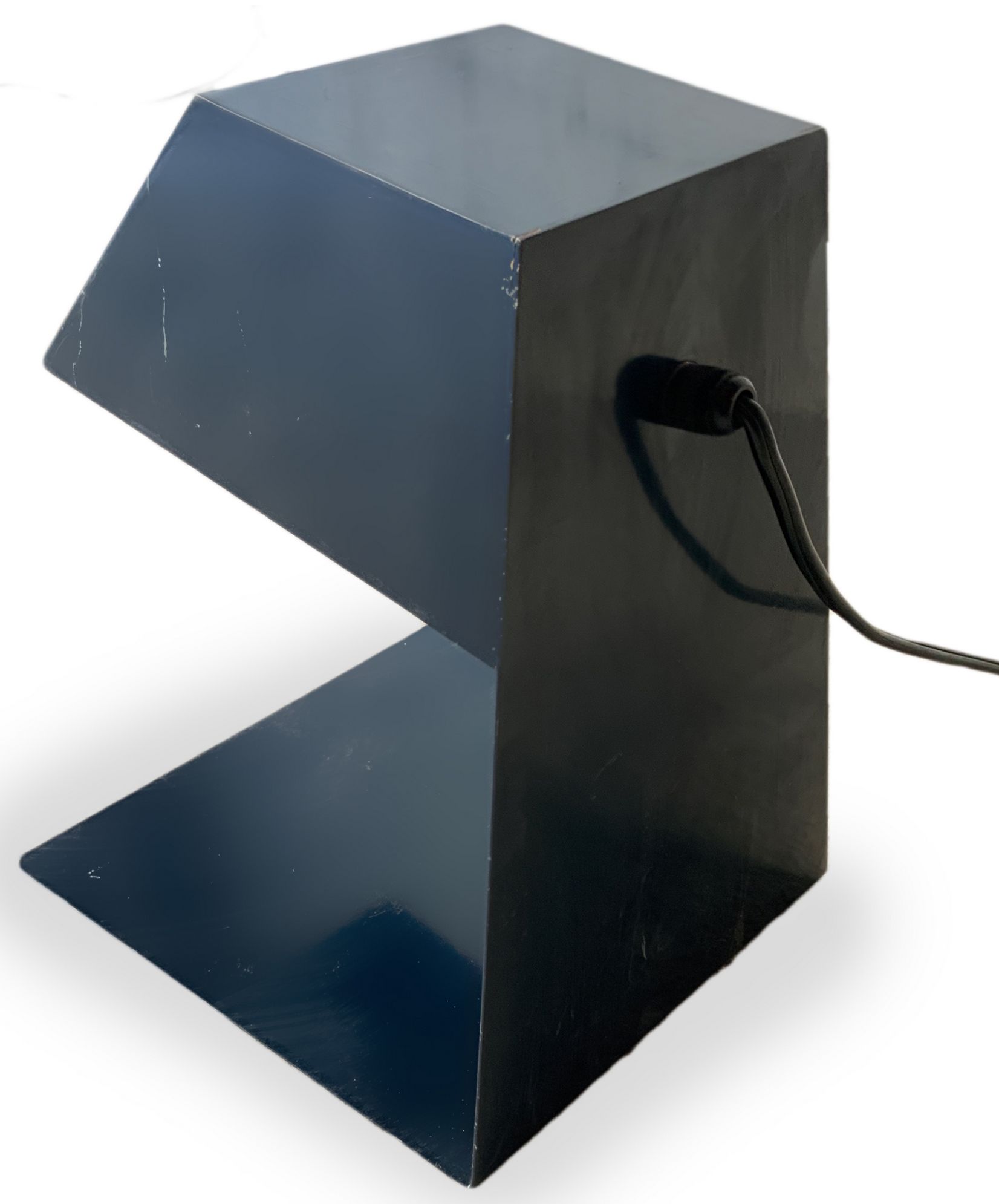 Lampada da tavolo, produzione italiana, in metallo laccato colore blu notte. Anni '70. Cm 21 x 20 x 16. Segni di uso.
