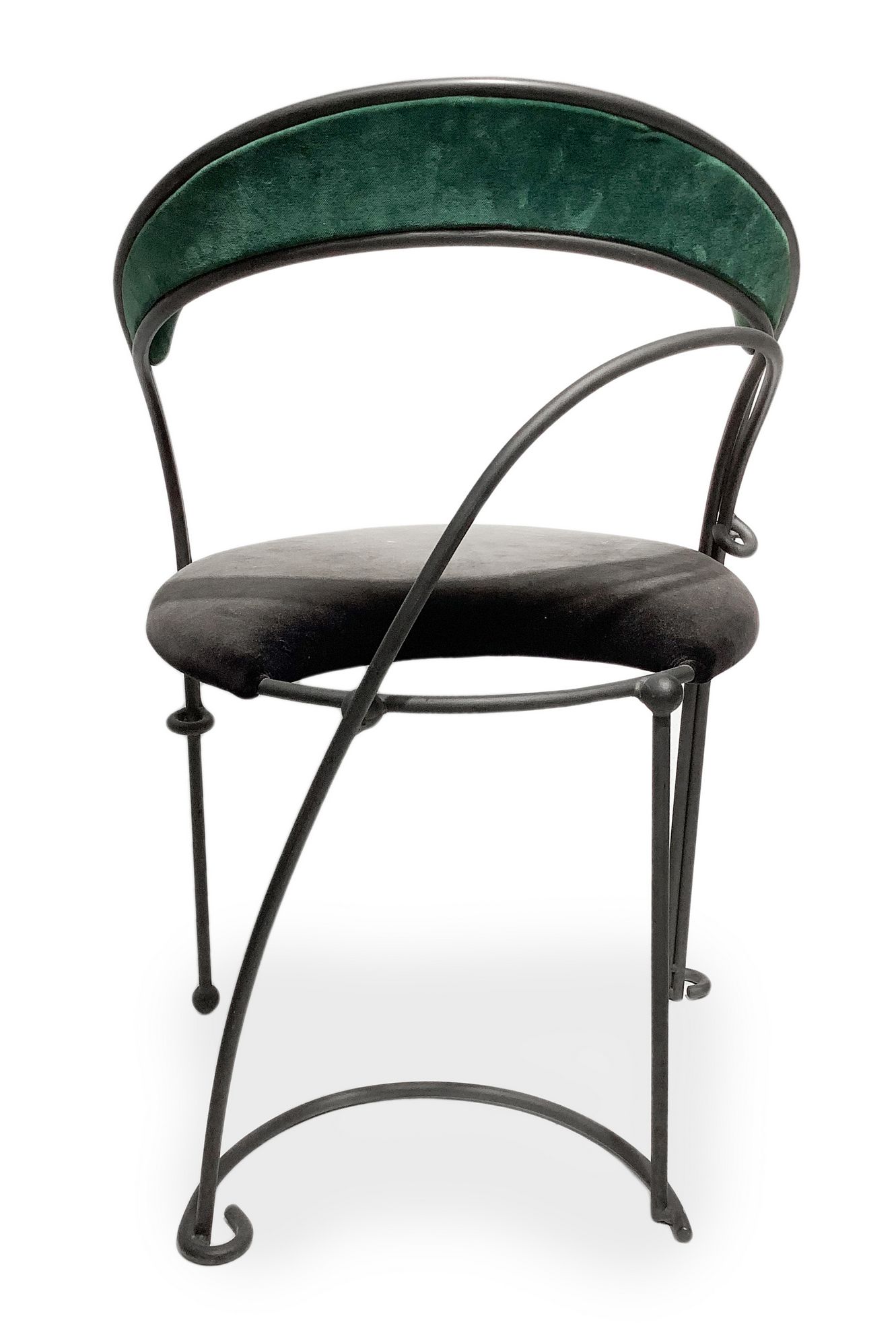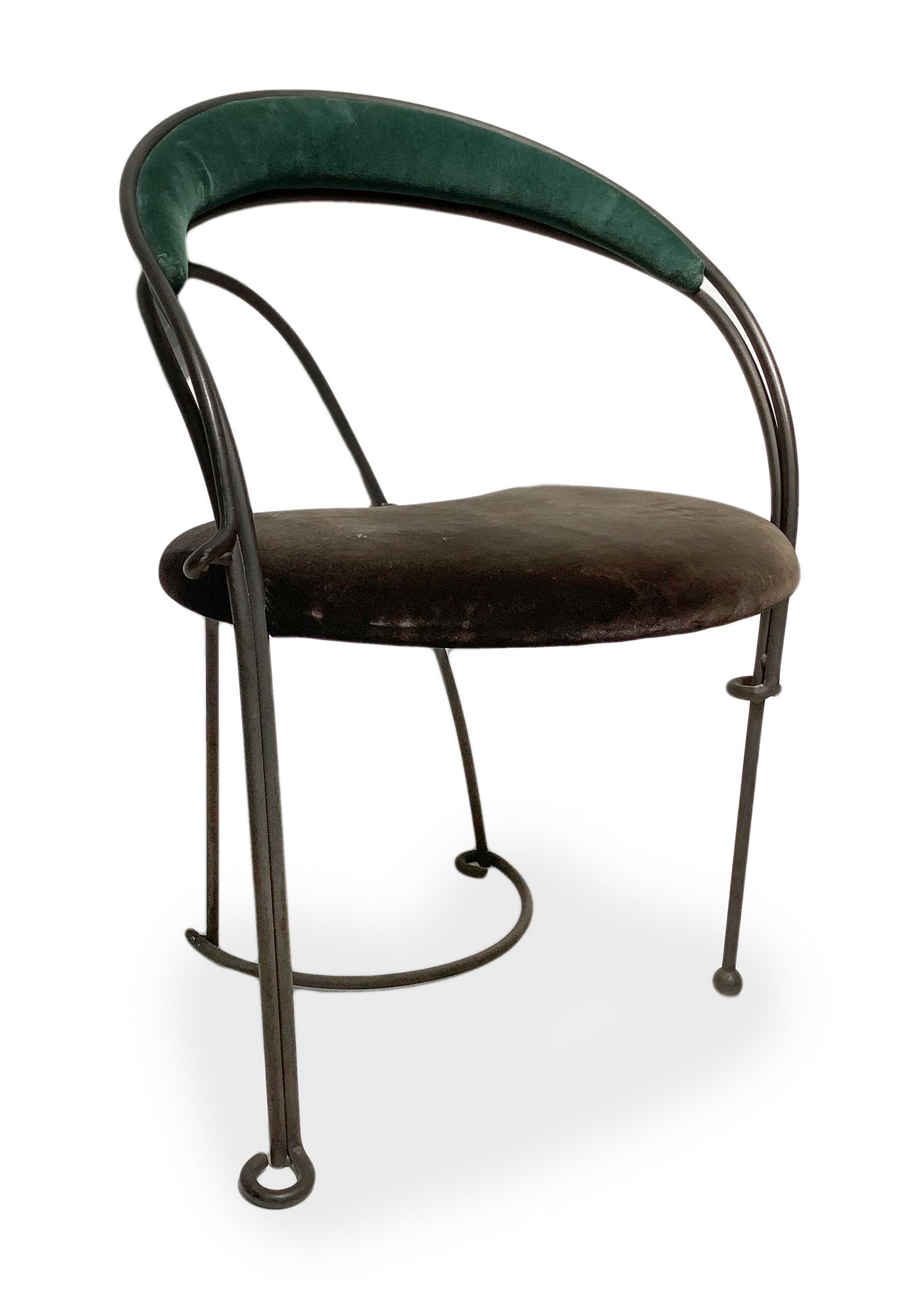 Lotto 287 | Poltrona in ferro con seduta in velluto. H cm 77. Seduta cm 44x50.